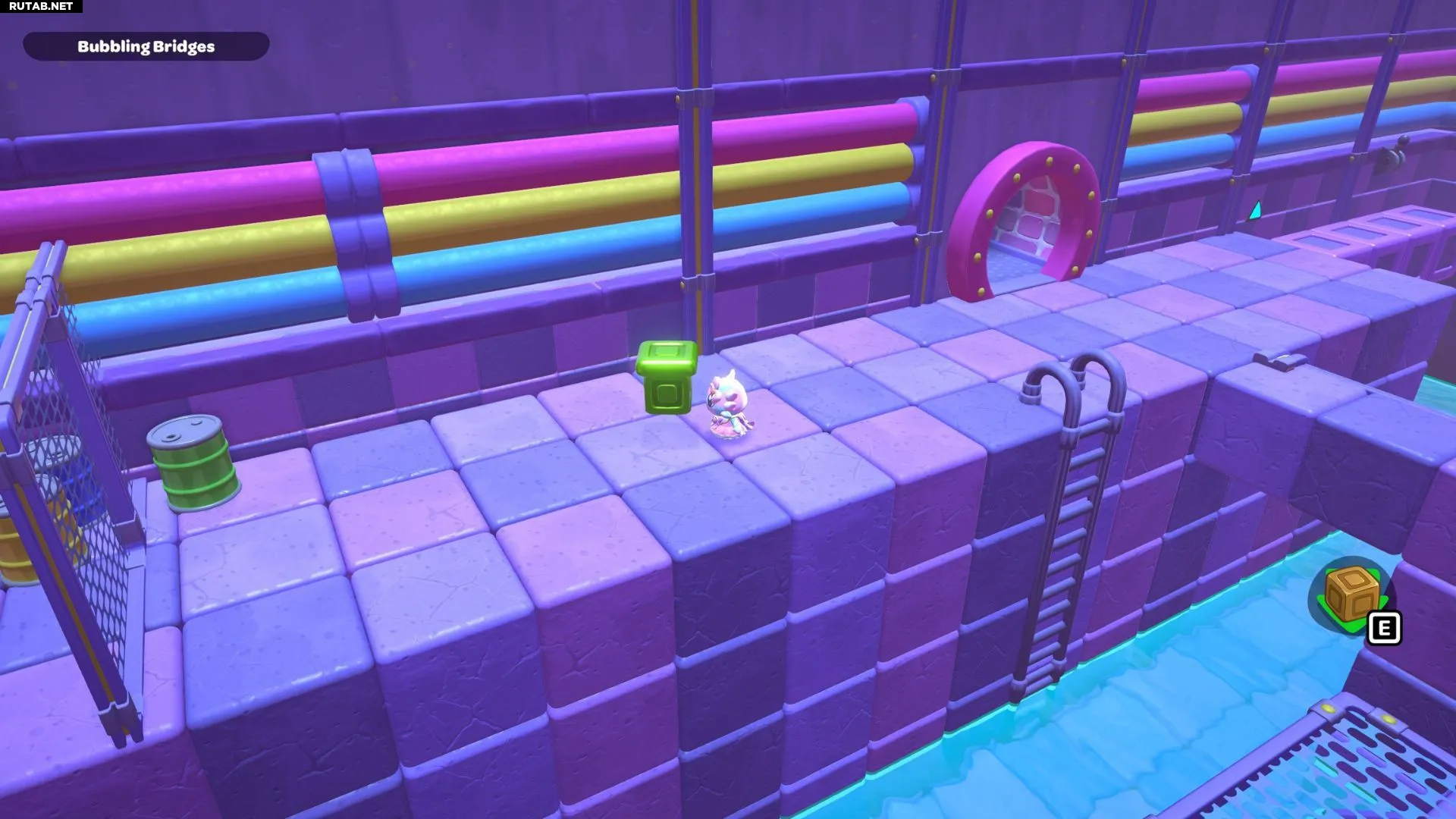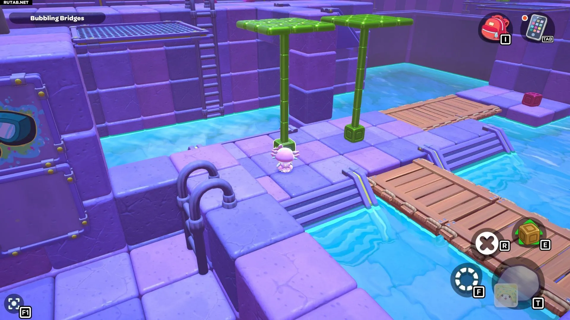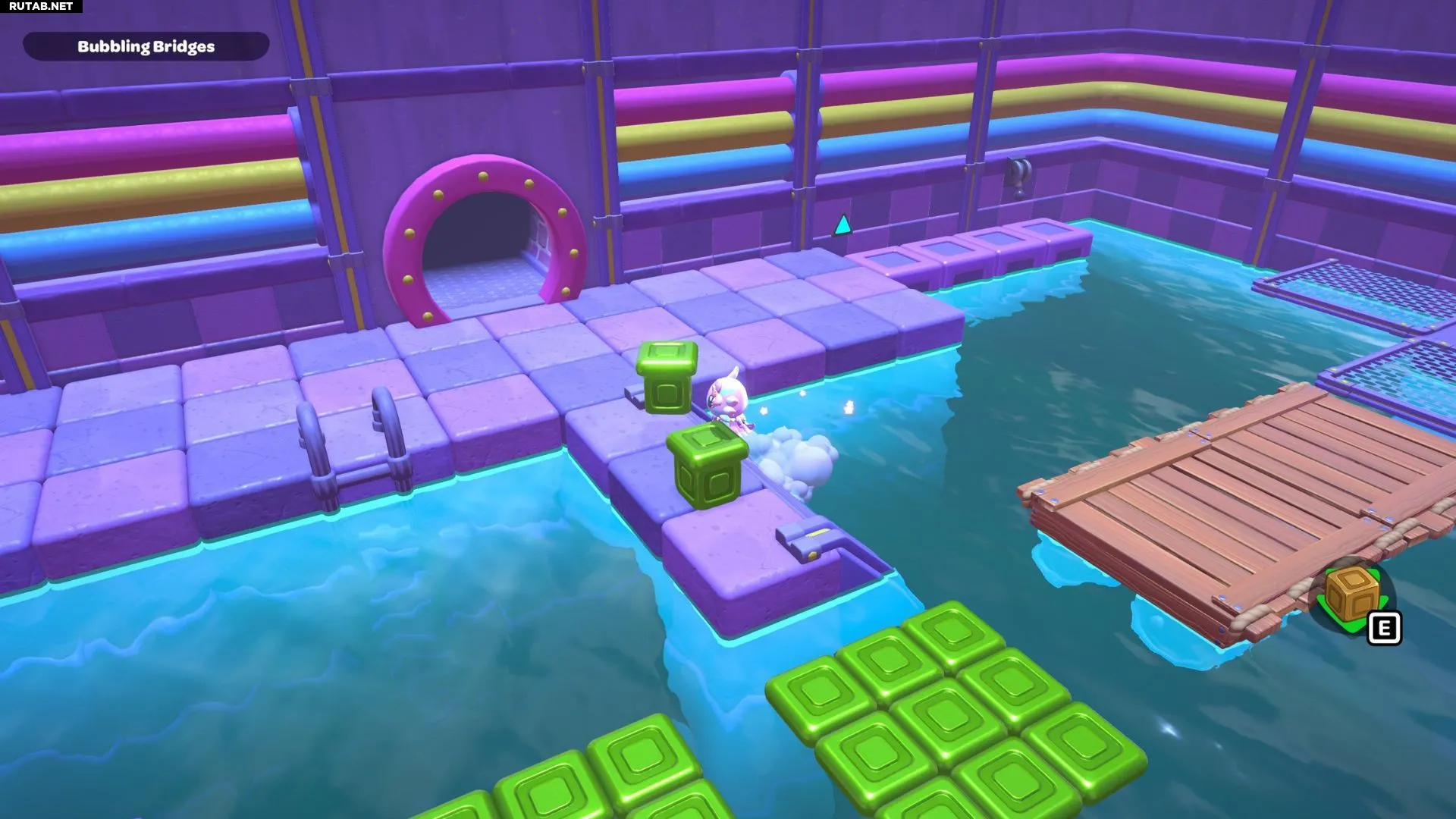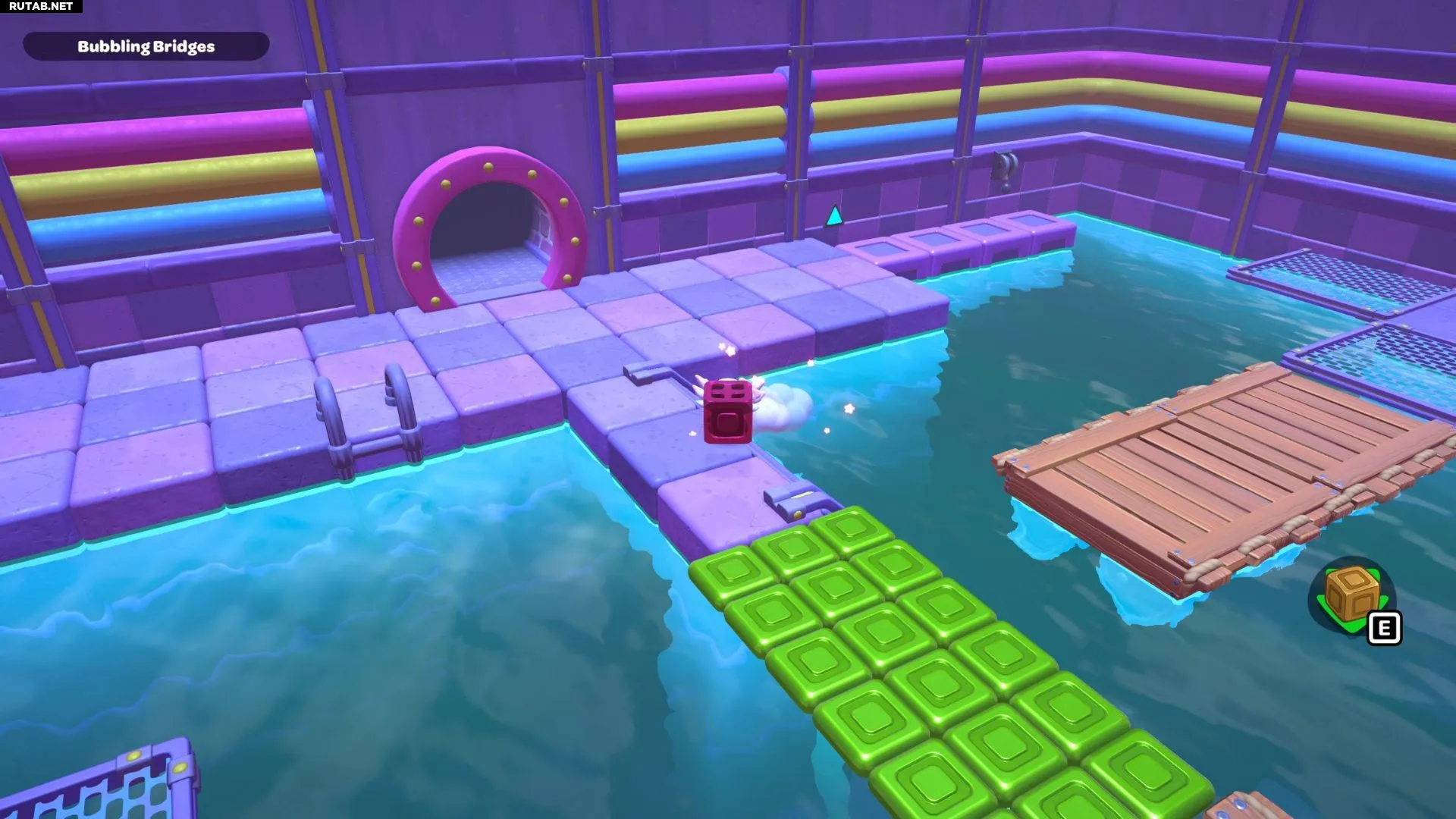 Комната-головоломка «Пузырящиеся мосты» — это дверь слева в северо-восточном углу канализации Городка. Решение этой головоломки заключается в создании серии мостов с помощью зелёных кубов в комнате. Вам нужно будет использовать эти мосты, чтобы переместить красный куб и подлететь к сундуку комнаты.