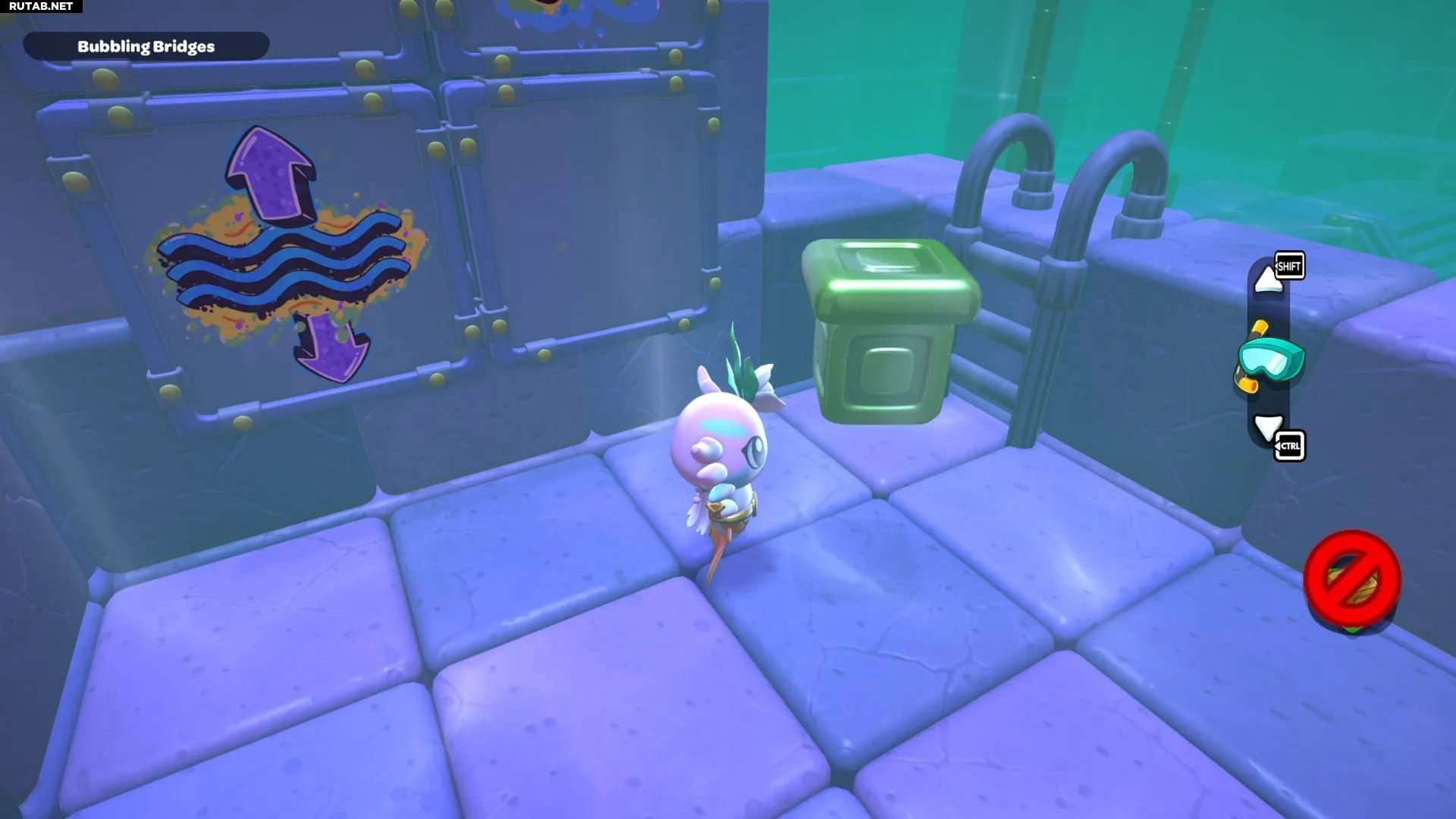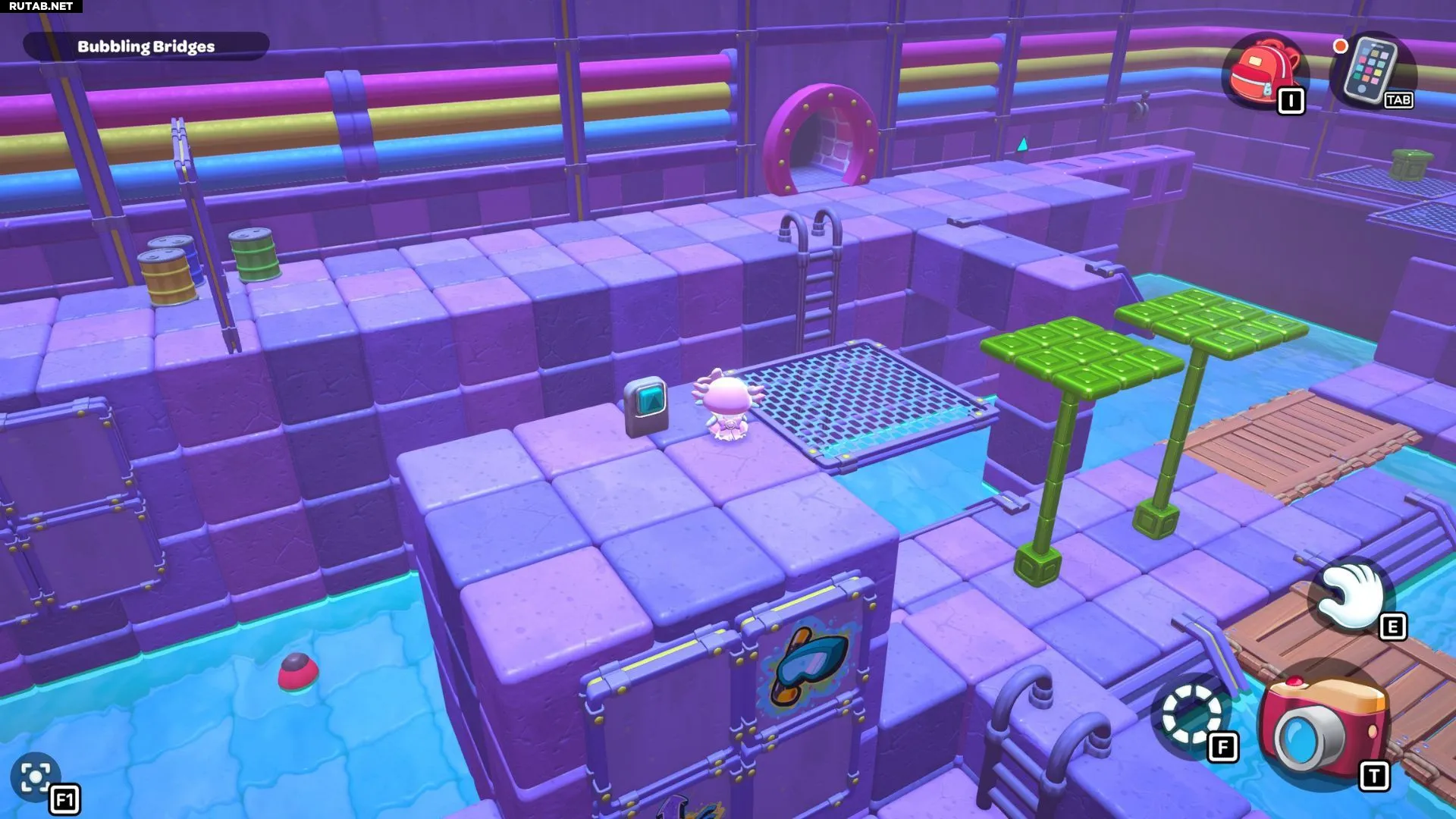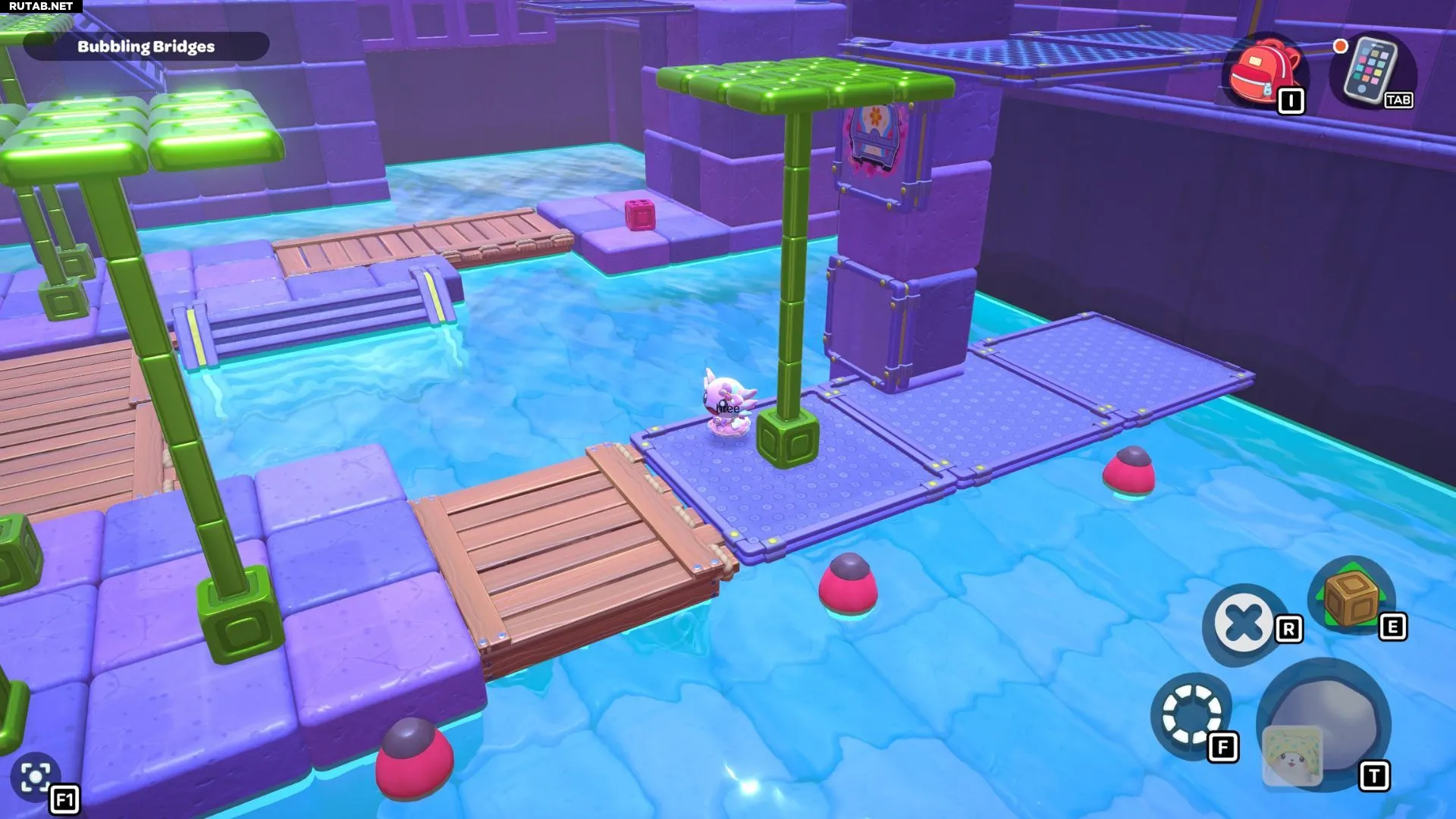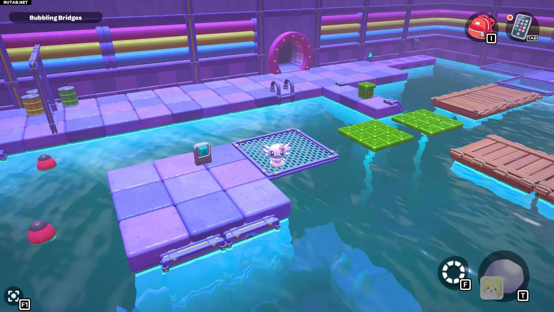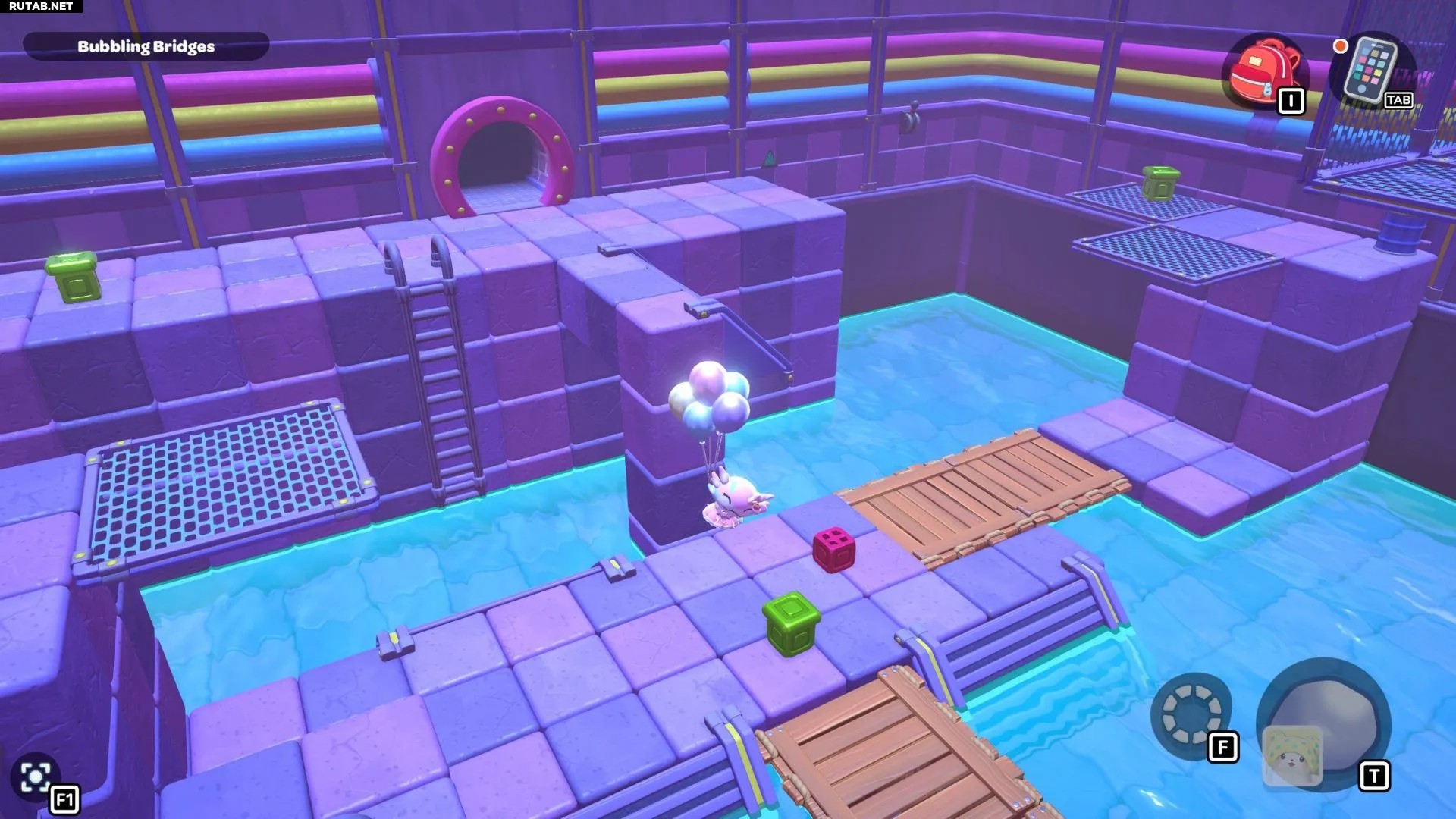 Комната-головоломка «Пузырящиеся мосты» — это дверь слева в северо-восточном углу канализации Городка. Решение этой головоломки заключается в создании серии мостов с помощью зелёных кубов в комнате. Вам нужно будет использовать эти мосты, чтобы переместить красный куб и подлететь к сундуку комнаты.