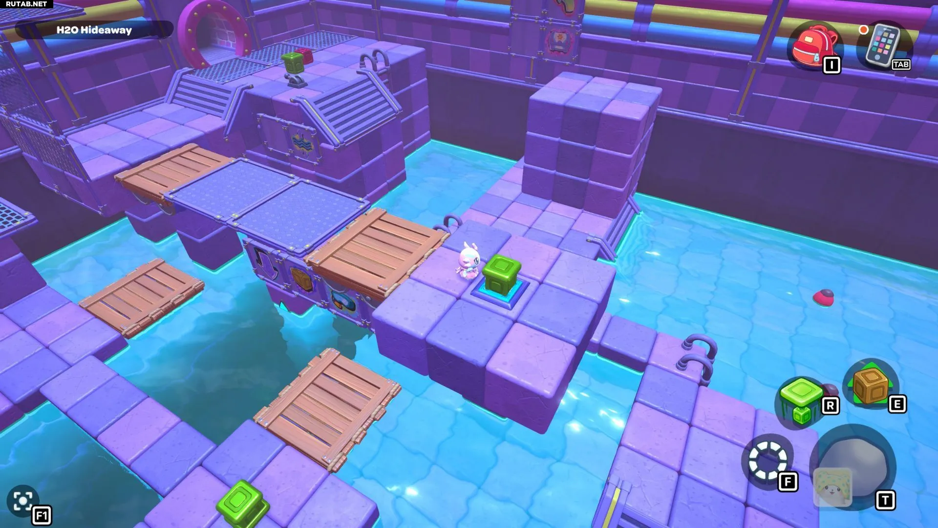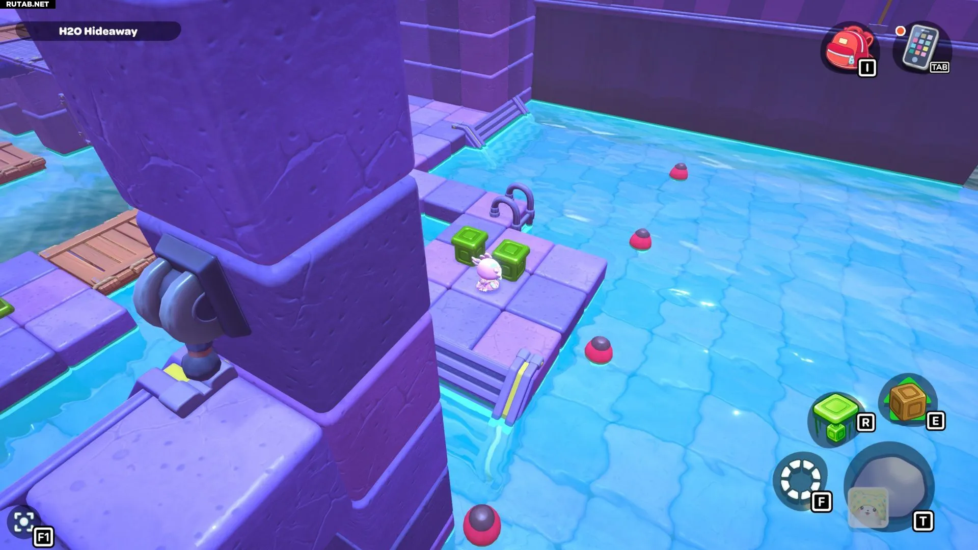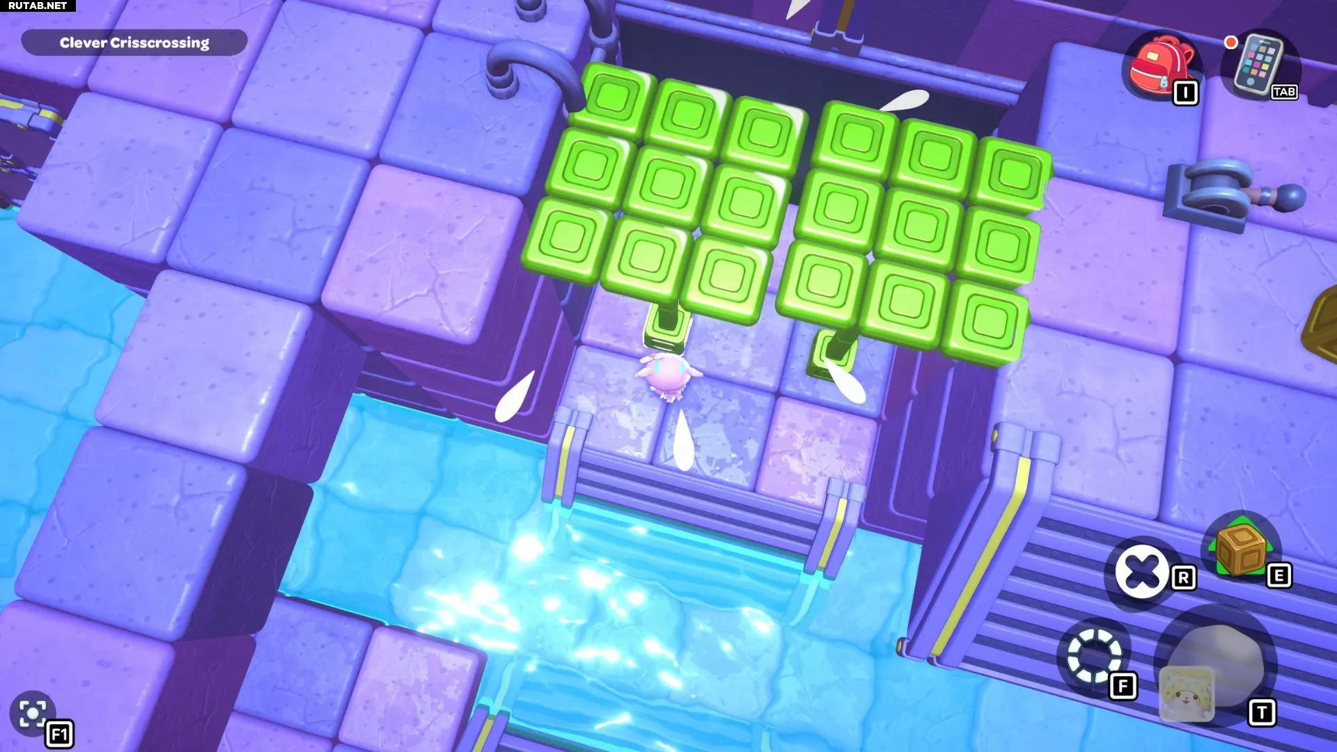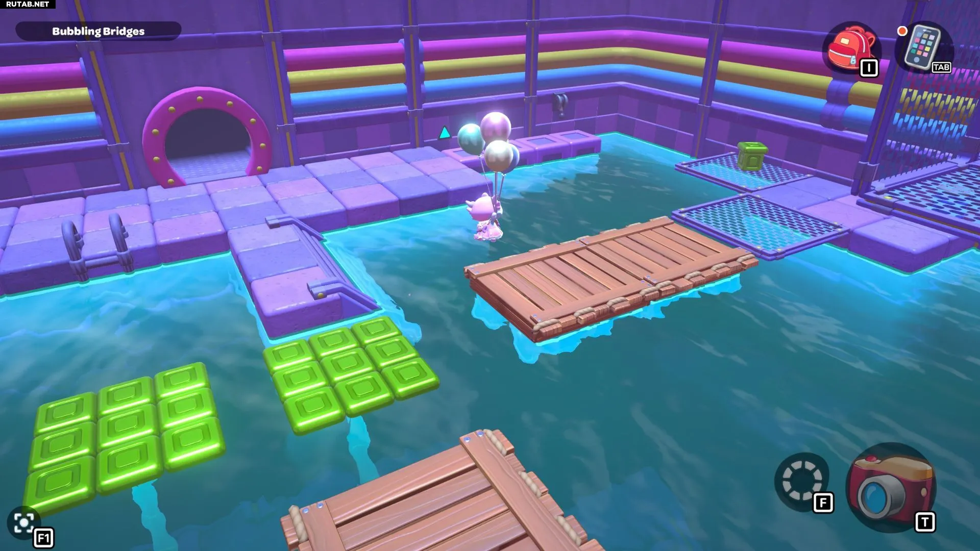 Комната-головоломка «Пузырящиеся мосты» — это дверь слева в северо-восточном углу канализации Городка. Решение этой головоломки заключается в создании серии мостов с помощью зелёных кубов в комнате. Вам нужно будет использовать эти мосты, чтобы переместить красный куб и подлететь к сундуку комнаты.
