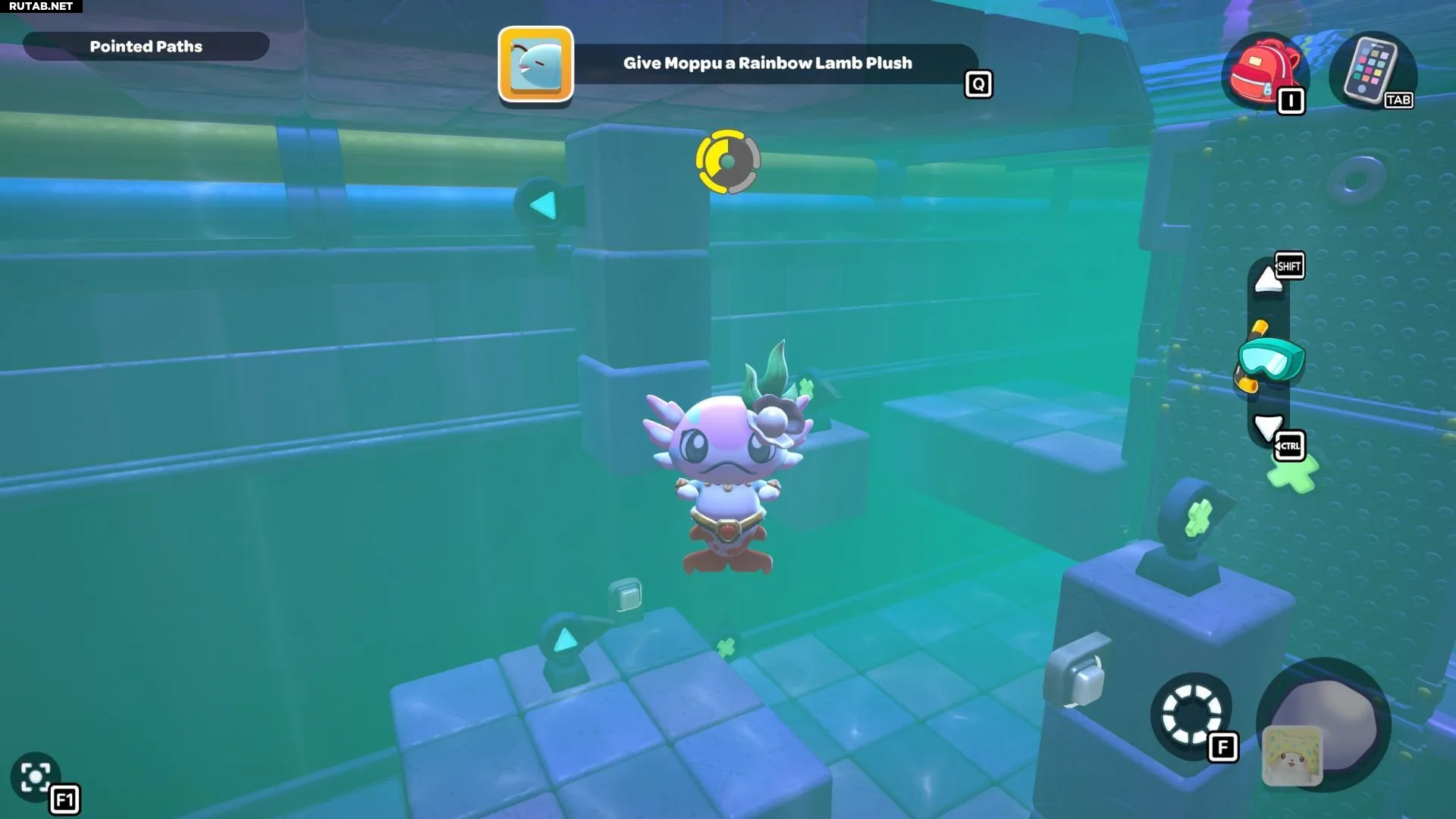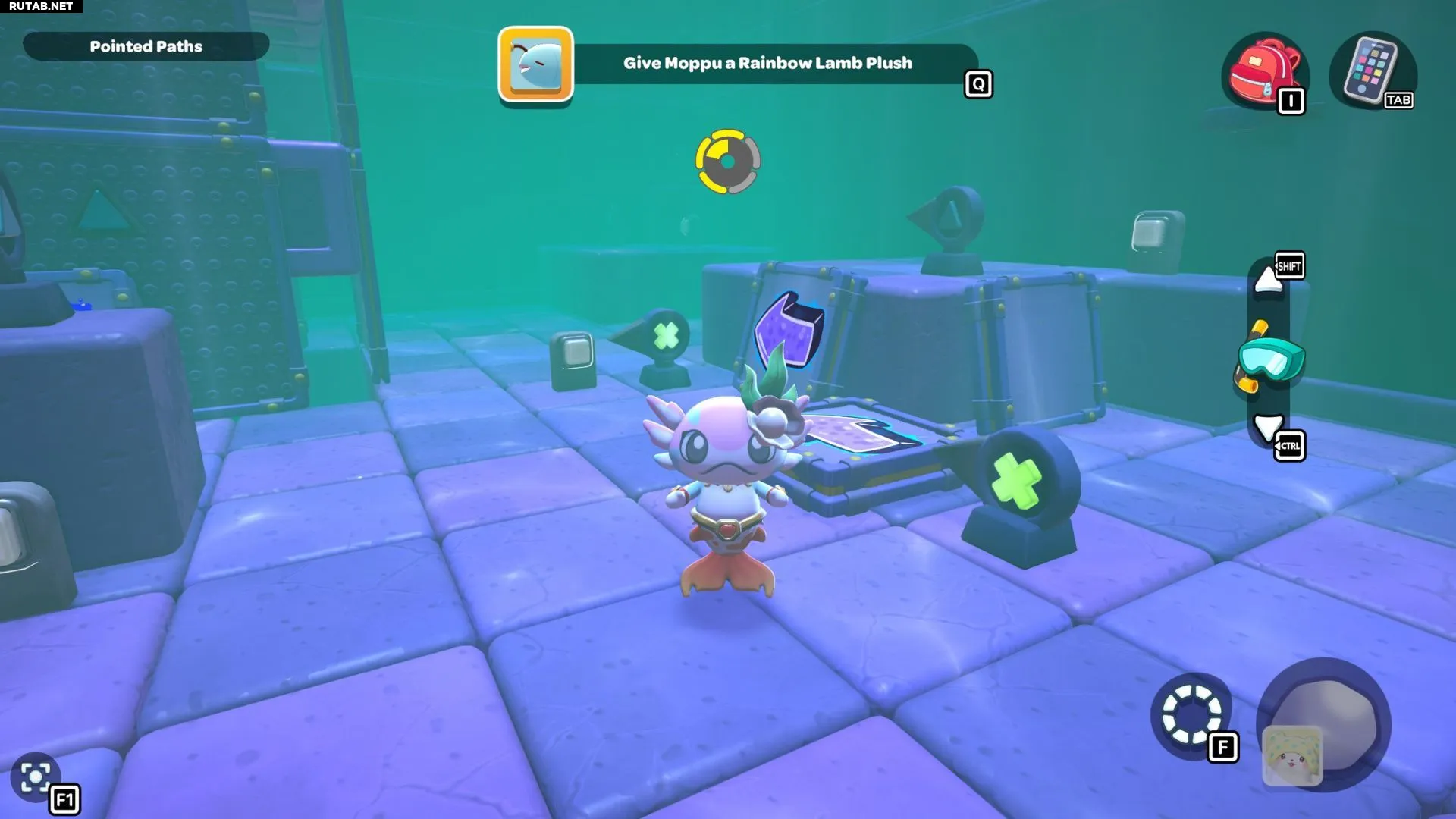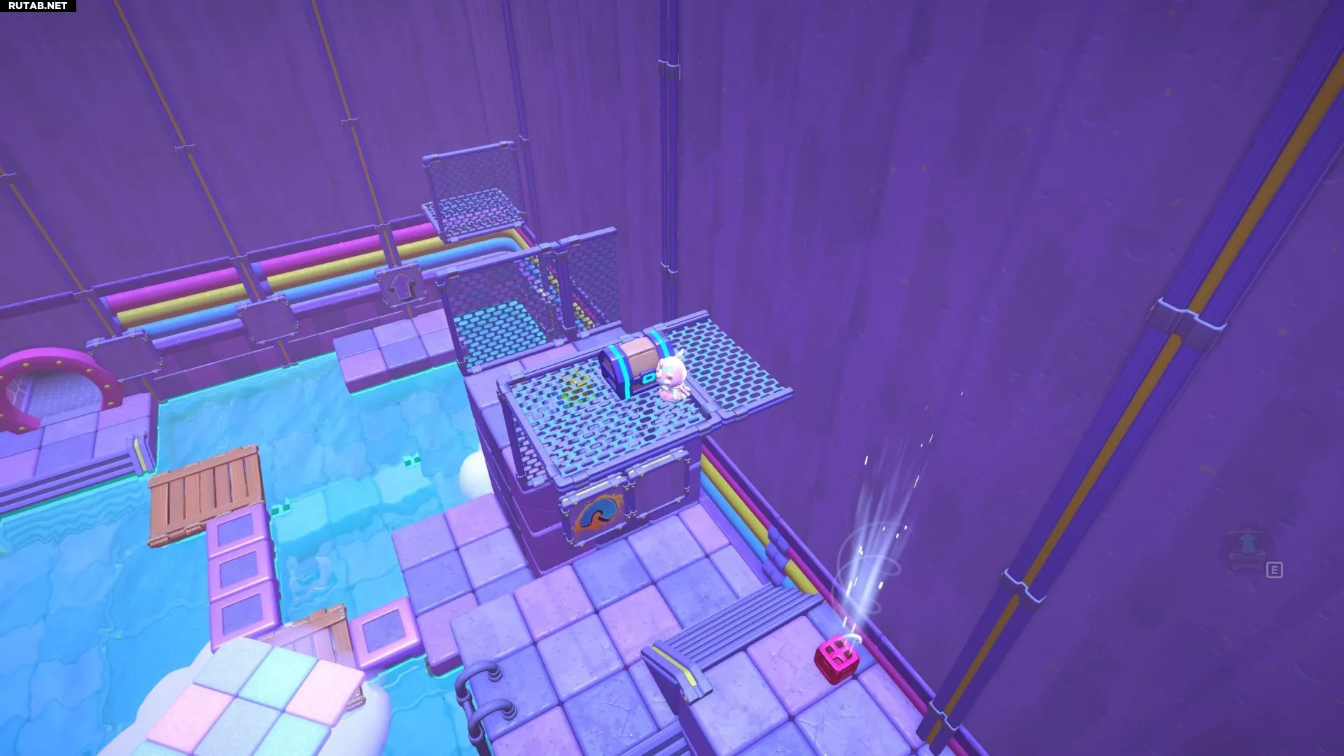 Пройдите по созданному пути с красным кубом, пока не окажетесь на платформе под сундуком. Поставьте красный куб, активируйте его и подлетите на верхнюю платформу. Открыв сундук, вы получите Шляпу «Морская водоросль».