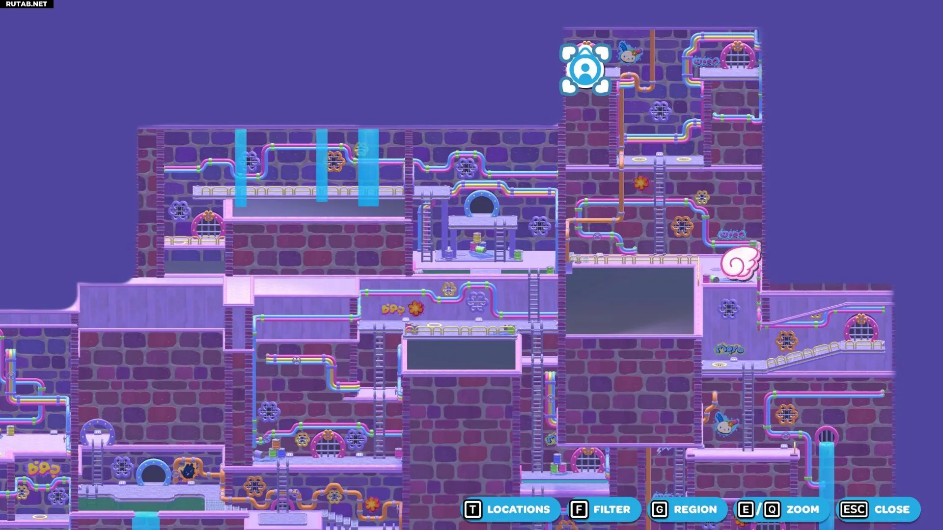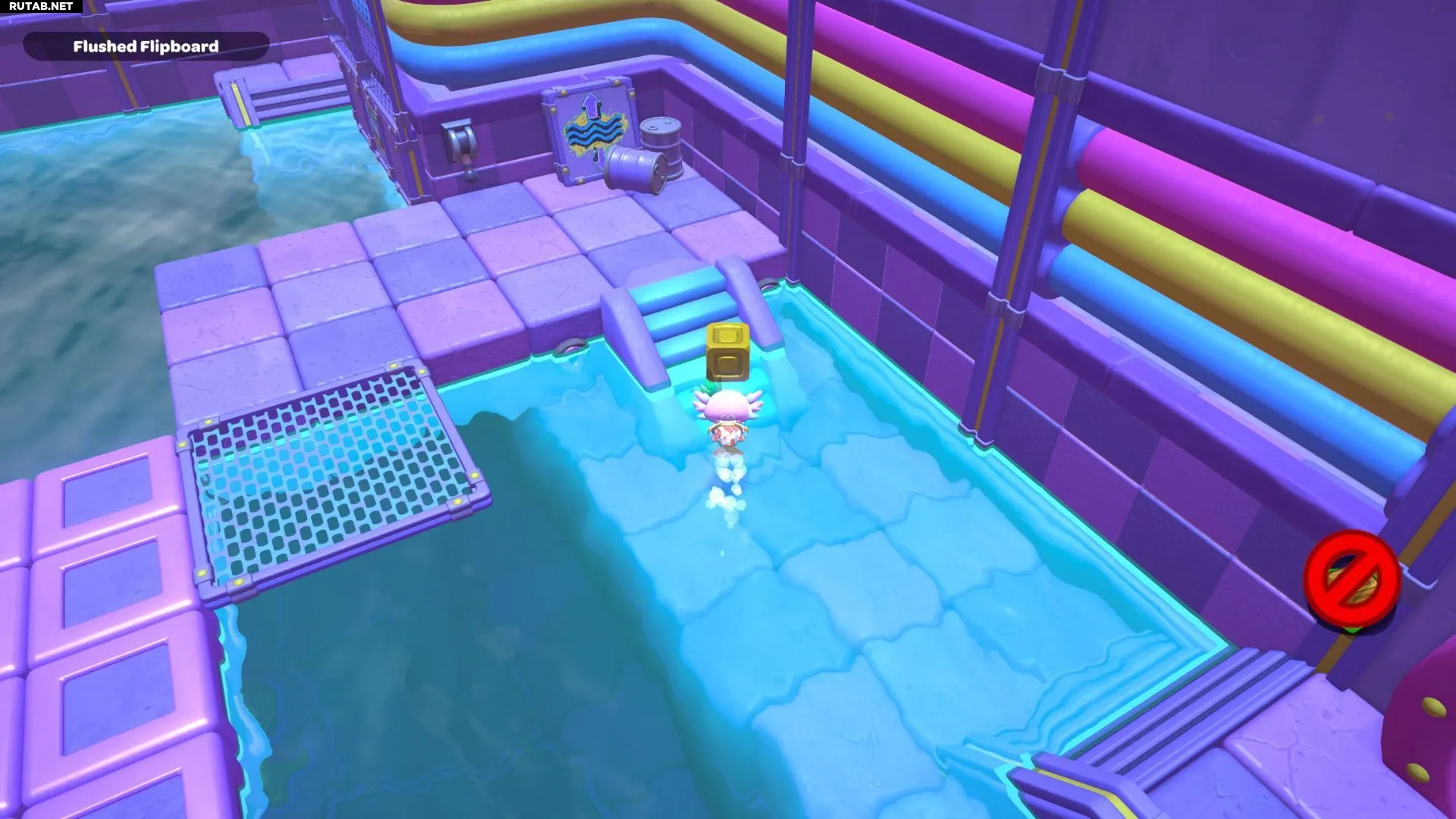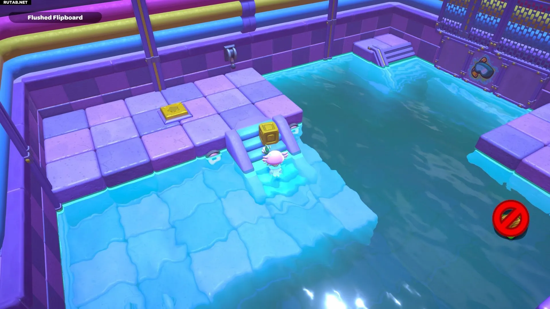 Комната-головоломка «Смытая панель» находится в юго-западной части канализации Городка. Цель здесь — активировать золотой переключатель в глубине комнаты. Это создаст лестницу, ведущую на платформу с сундуком.