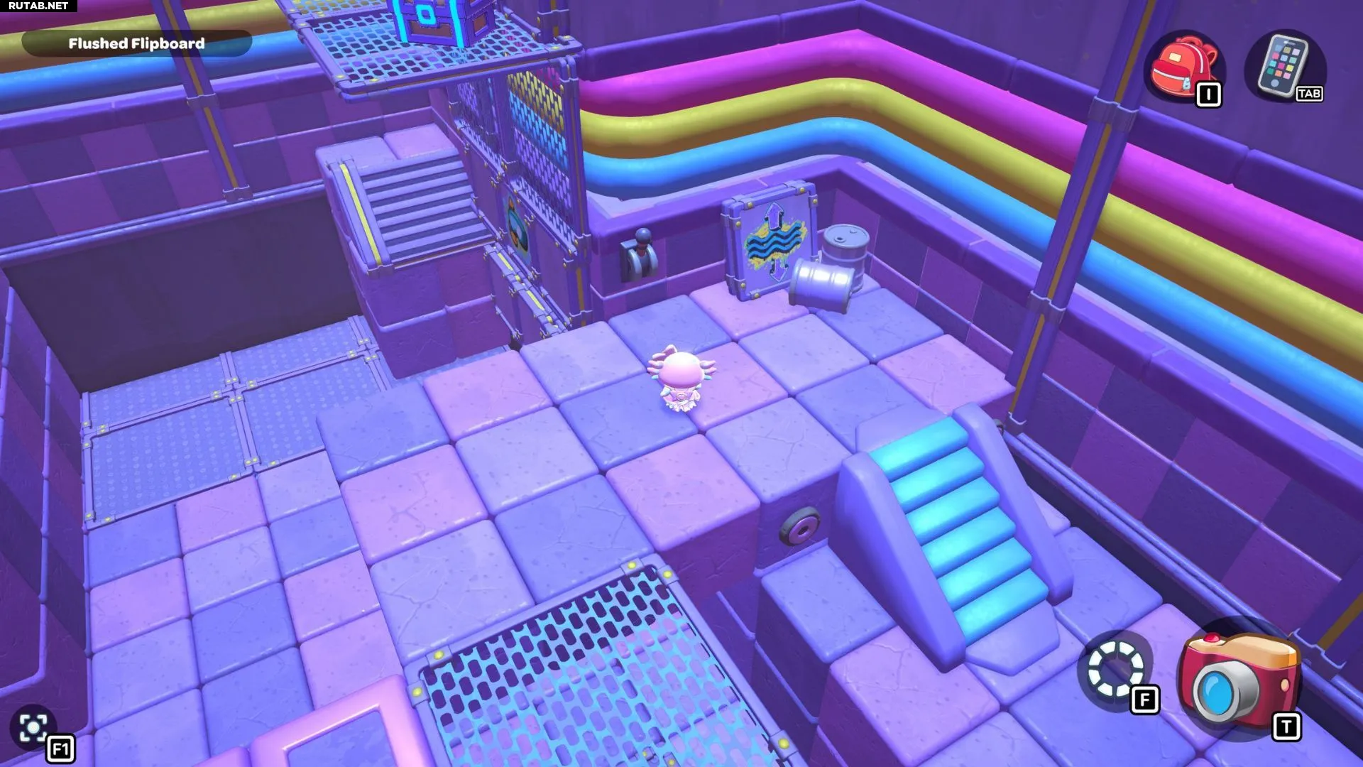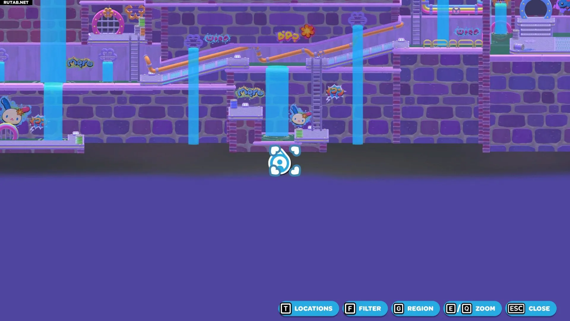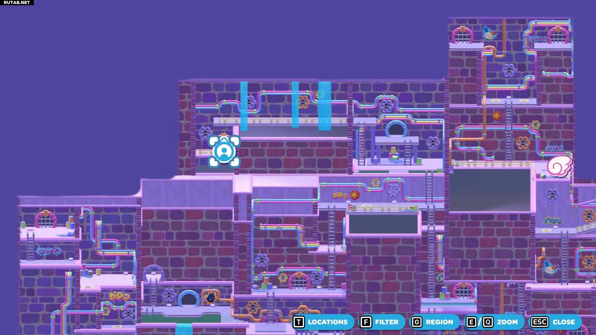Комната-головоломка «Смытая панель» находится в юго-западной части канализации Городка. Цель здесь — активировать золотой переключатель в глубине комнаты. Это создаст лестницу, ведущую на платформу с сундуком.