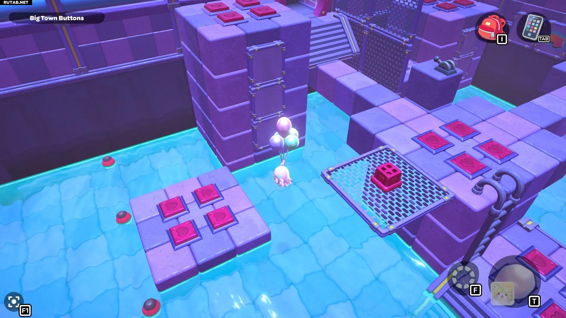 Войдя в комнату, вы окажетесь на платформе с четырьмя кнопками-сердечками и рычагом. Сначала наступите на все четыре кнопки, затем спрыгните на платформу к югу от неё. Наступите и на кнопки этой платформы, после чего поднимитесь по лестнице обратно на исходную платформу.