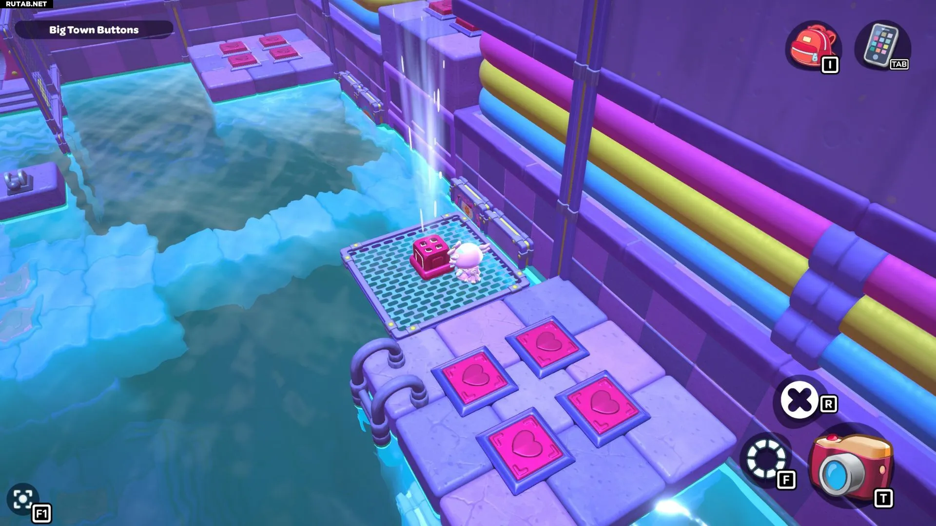 Головоломка «Большие городские кнопки» находится в северо-западном углу канализации Городка. Для её решения нужно наступить на все красные кнопки в форме сердца, пока они не будут полностью утоплены в пол.