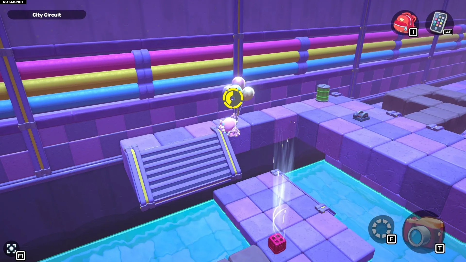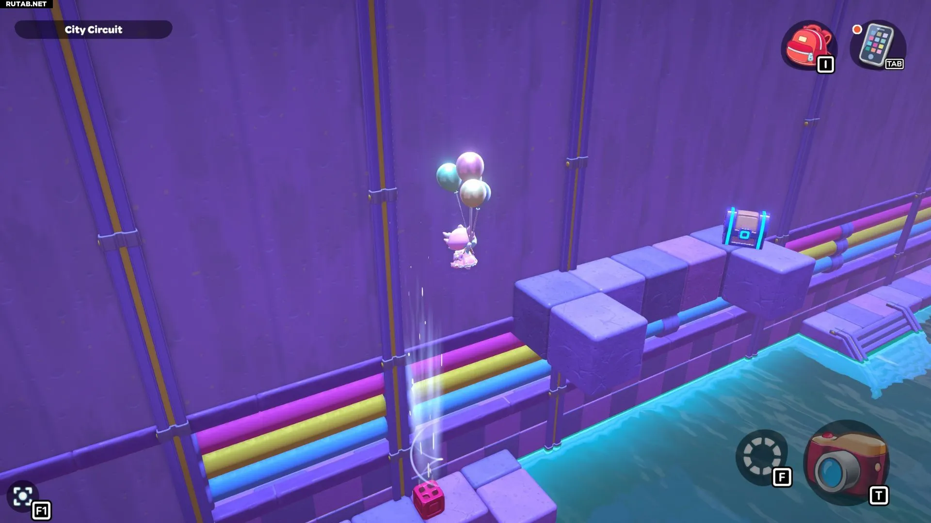 Вернитесь к красному кубу. Теперь вы можете пронести его по пути к платформе под уступом, на котором находится сундук комнаты. Поставьте красный куб и активируйте его воздушный поток. Используйте свои шарики, чтобы подлететь к сундуку и открыть его.