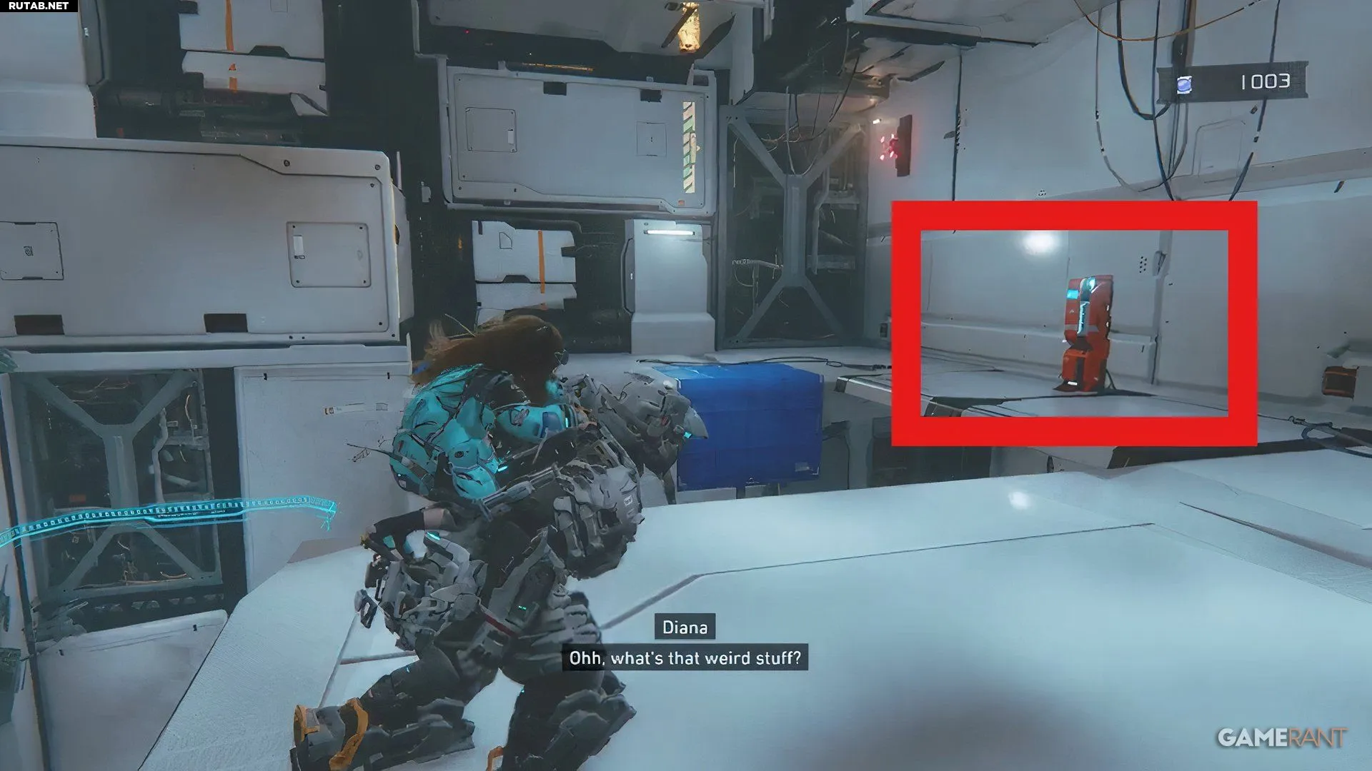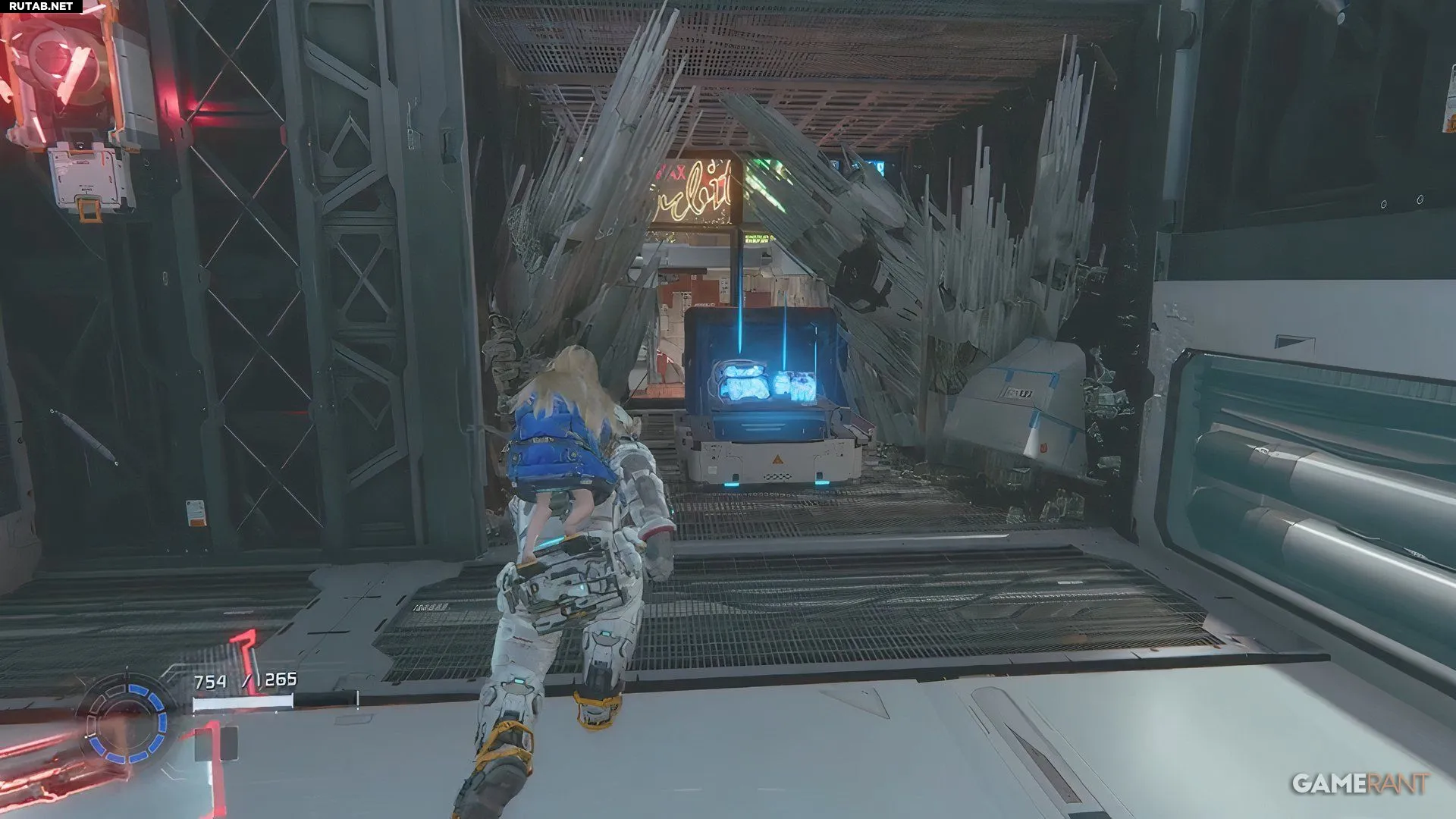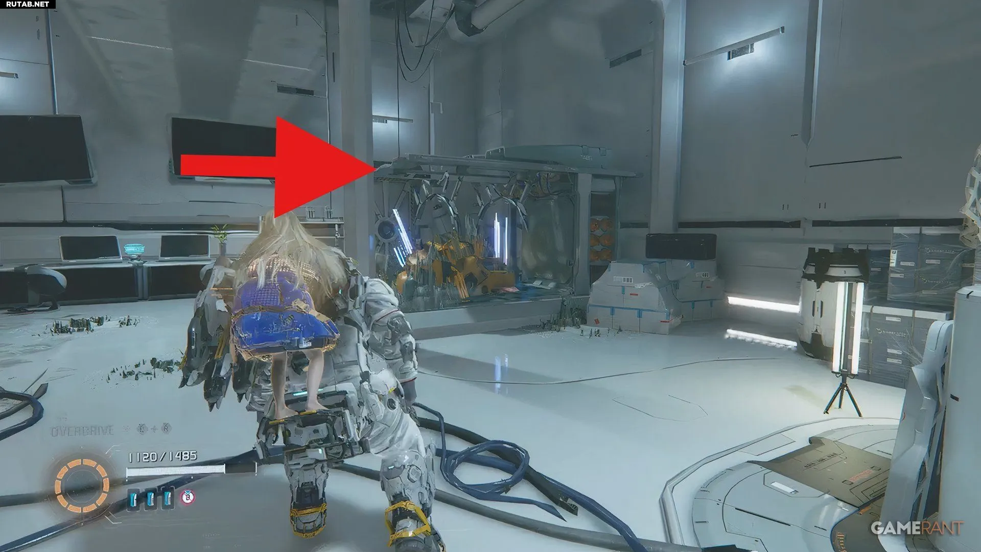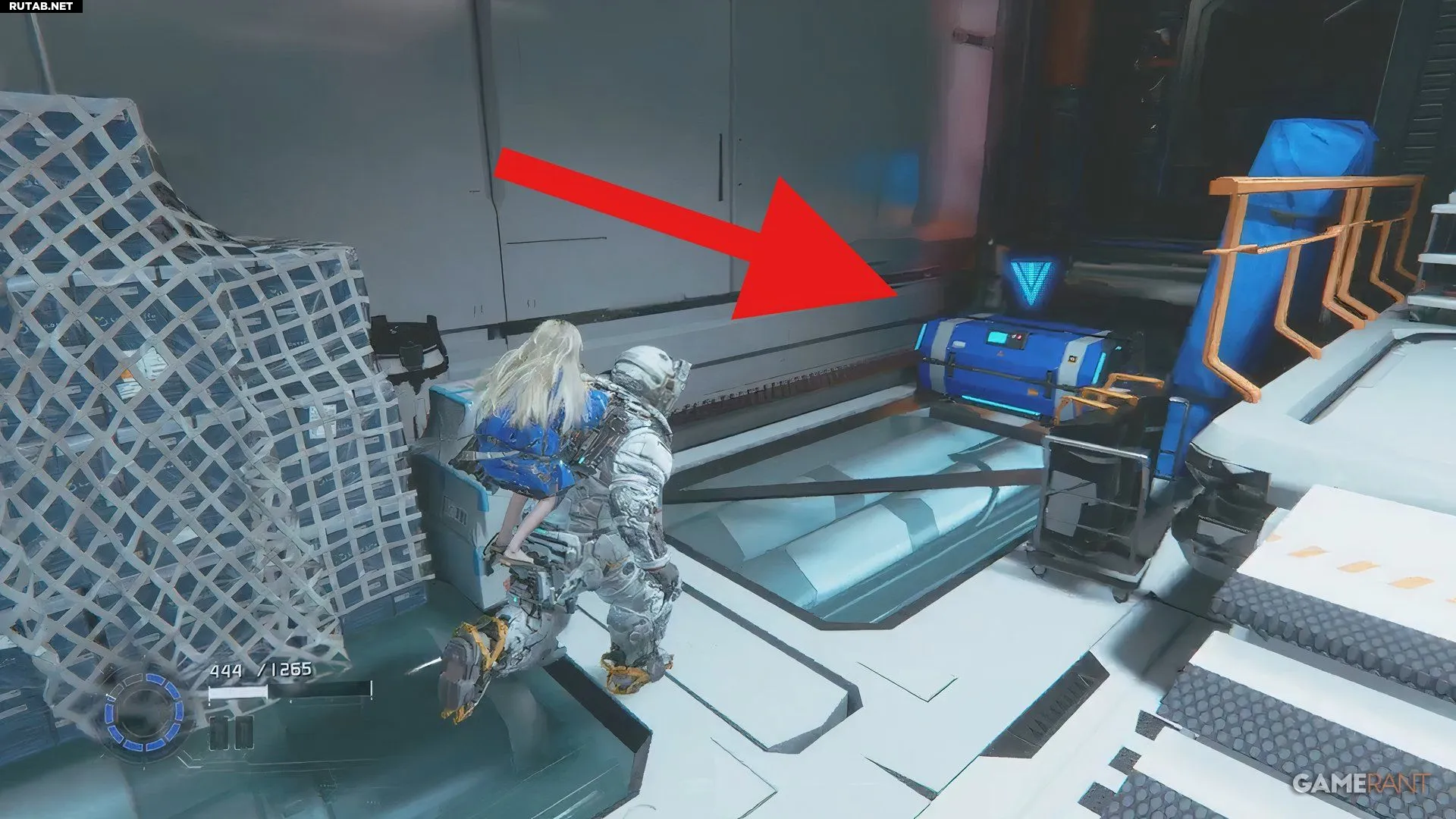 По сюжету вы попадёте в зону под названием «Orbit Our World». Следующий компонент для улучшения будет лежать прямо на виду рядом с лазерами.