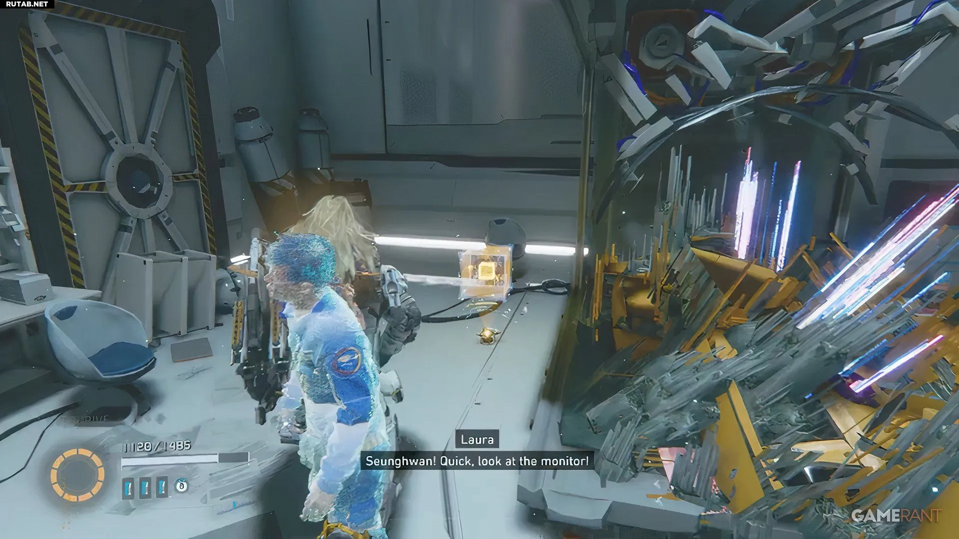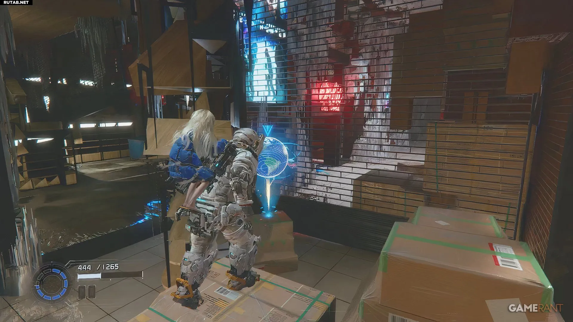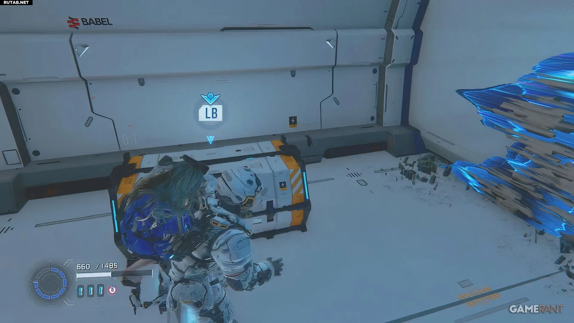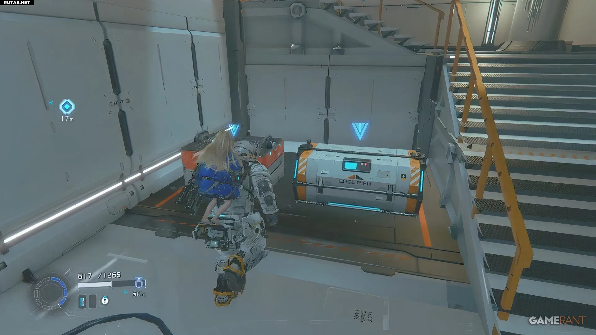 По сюжету вы попадёте в зону под названием «Orbit Our World». Следующий компонент для улучшения будет лежать прямо на виду рядом с лазерами.