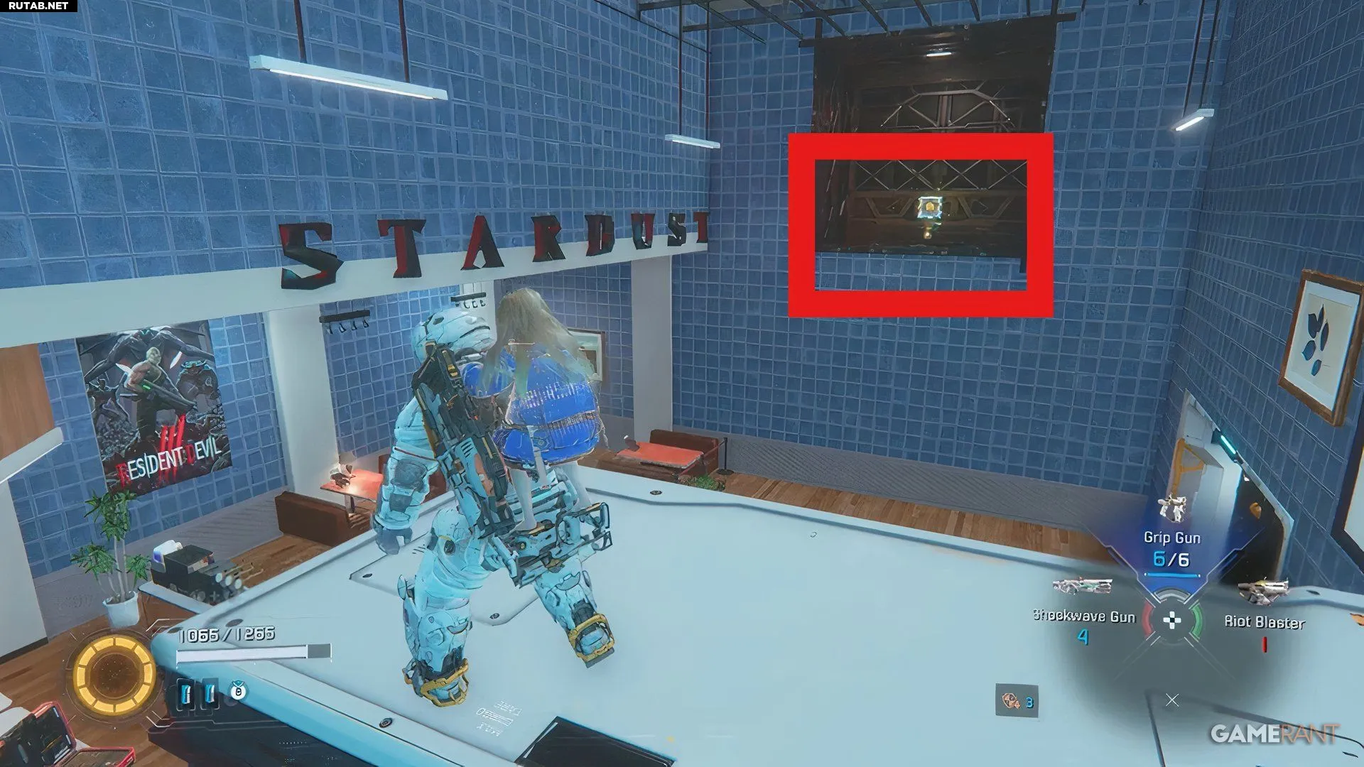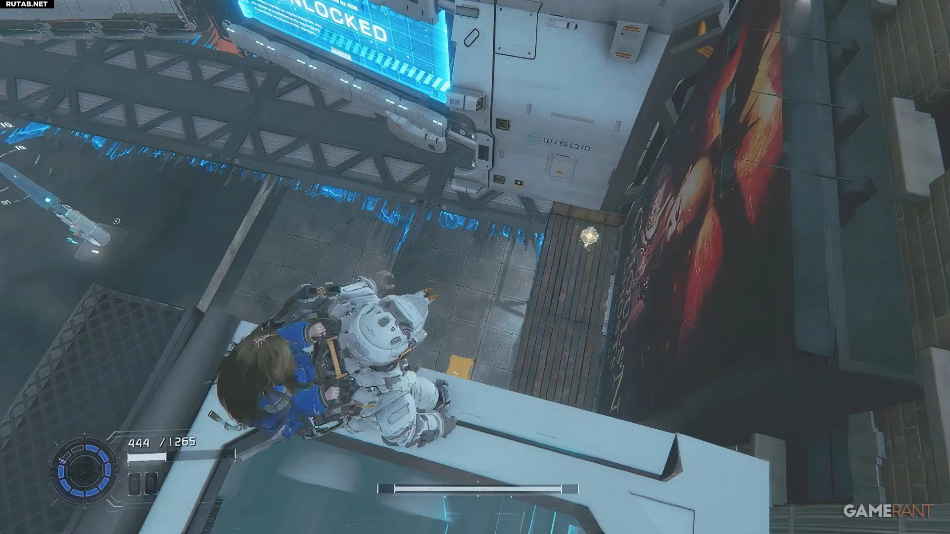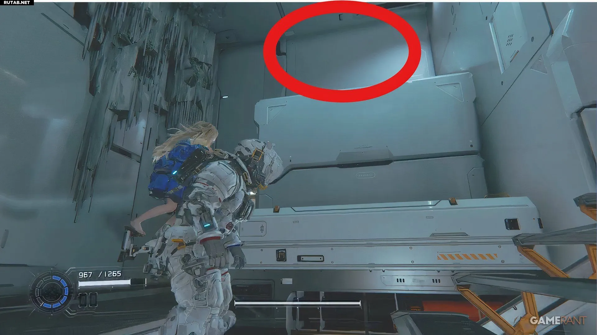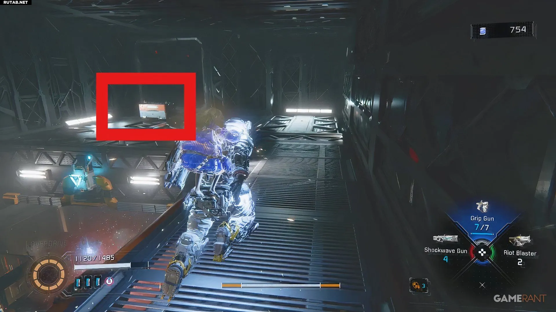 По сюжету вы попадёте в зону под названием «Orbit Our World». Следующий компонент для улучшения будет лежать прямо на виду рядом с лазерами.