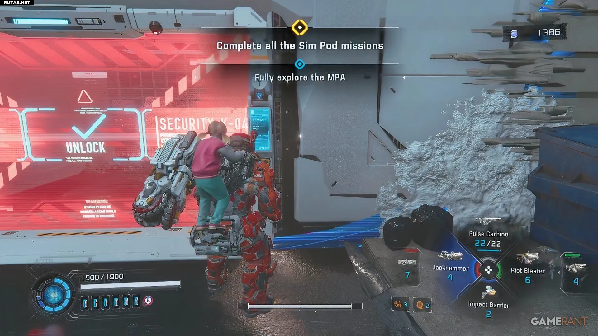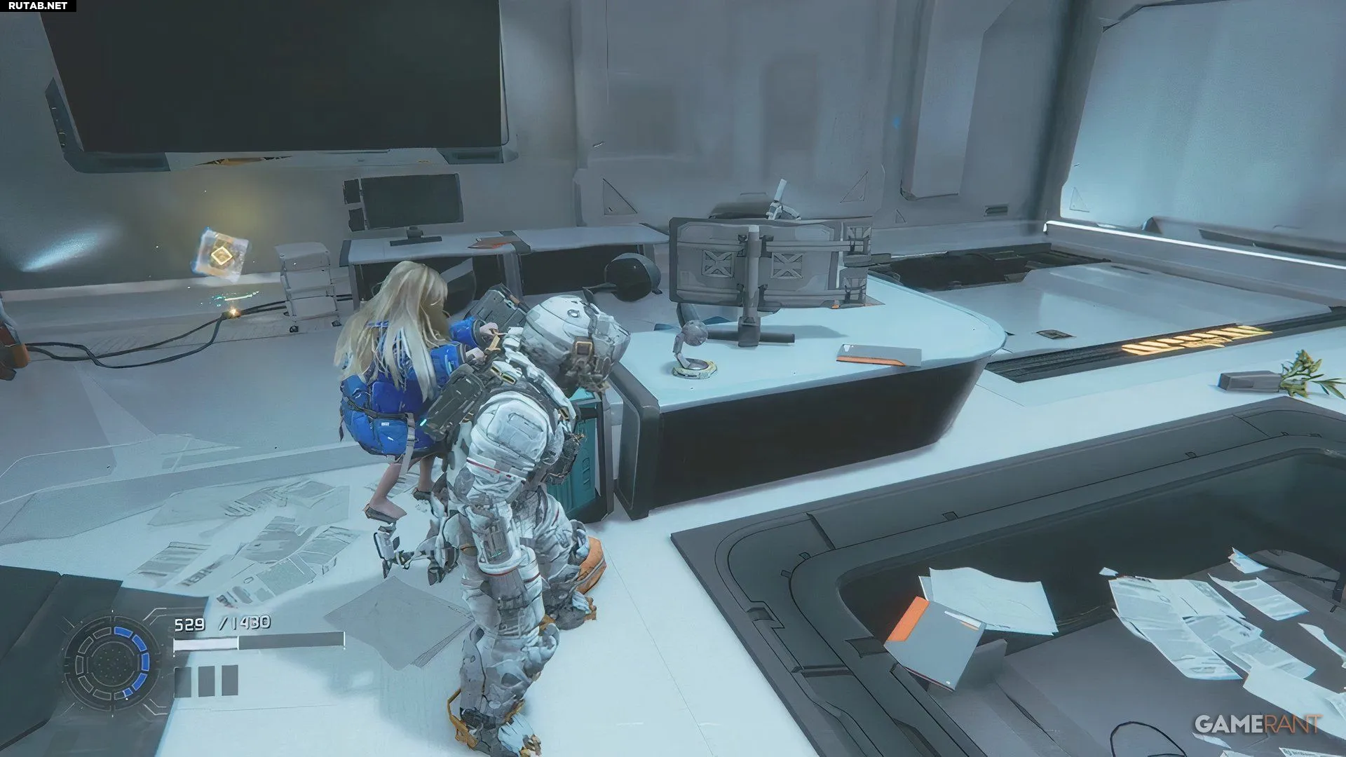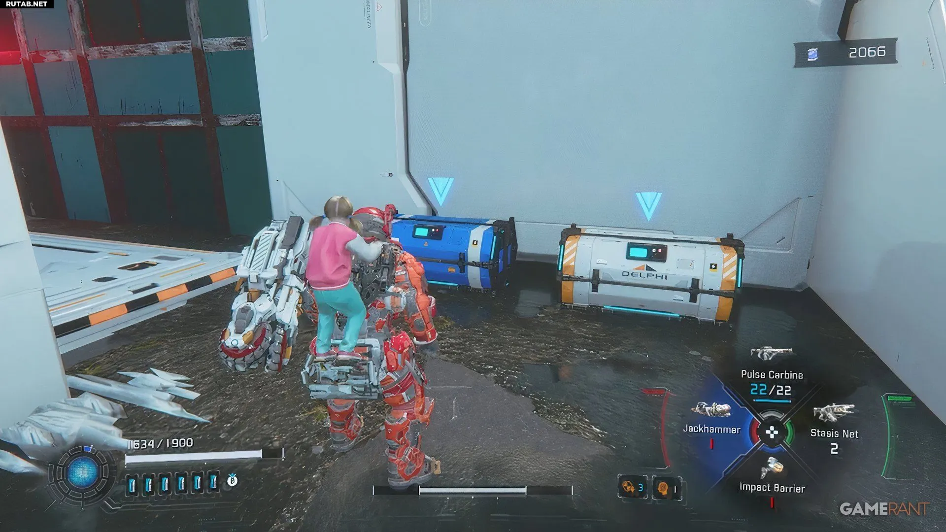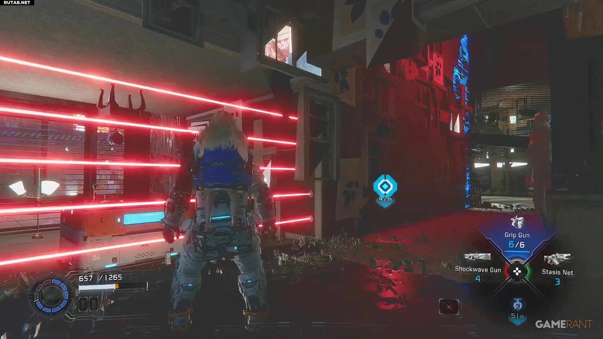 По сюжету вы попадёте в зону под названием «Orbit Our World». Следующий компонент для улучшения будет лежать прямо на виду рядом с лазерами.