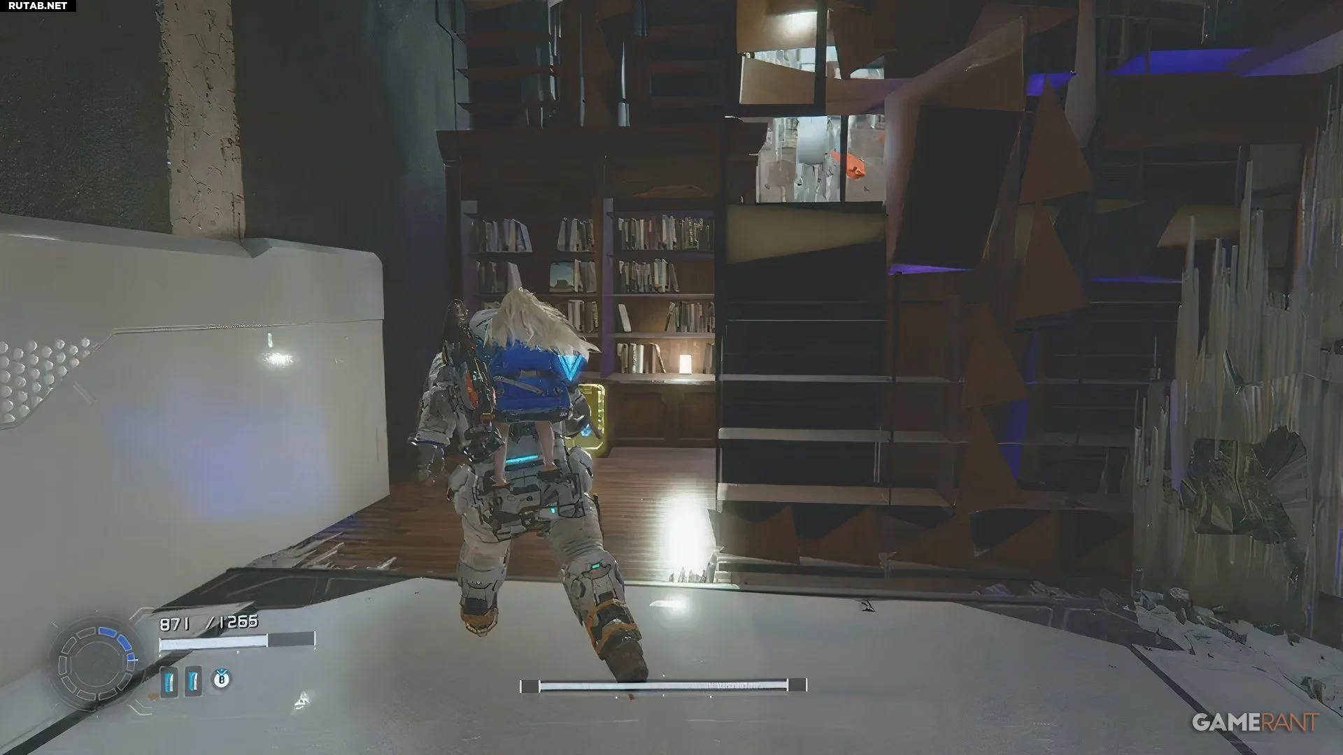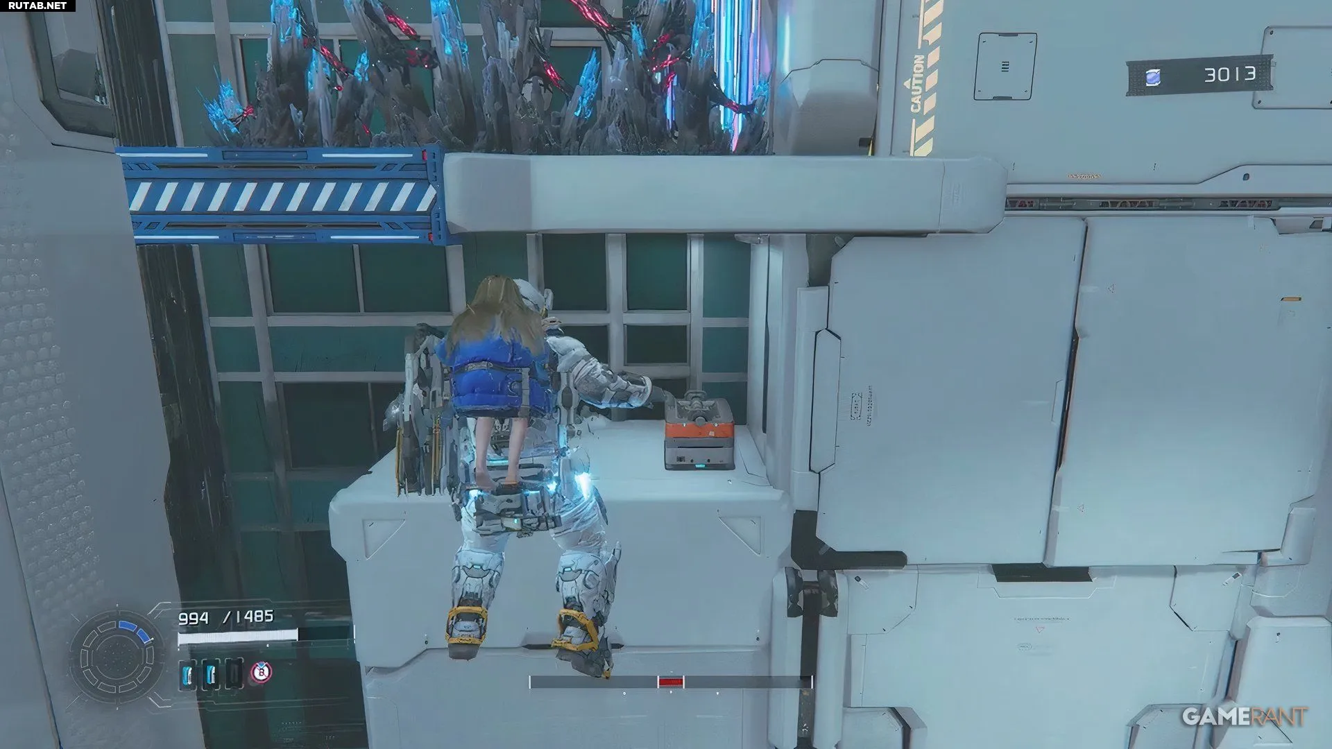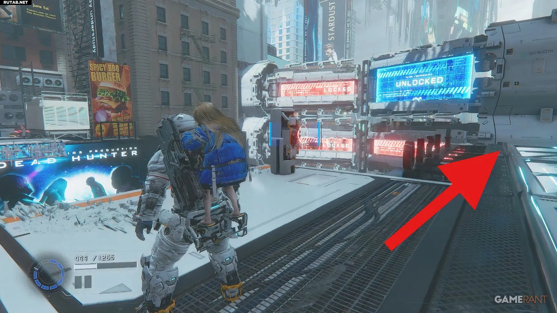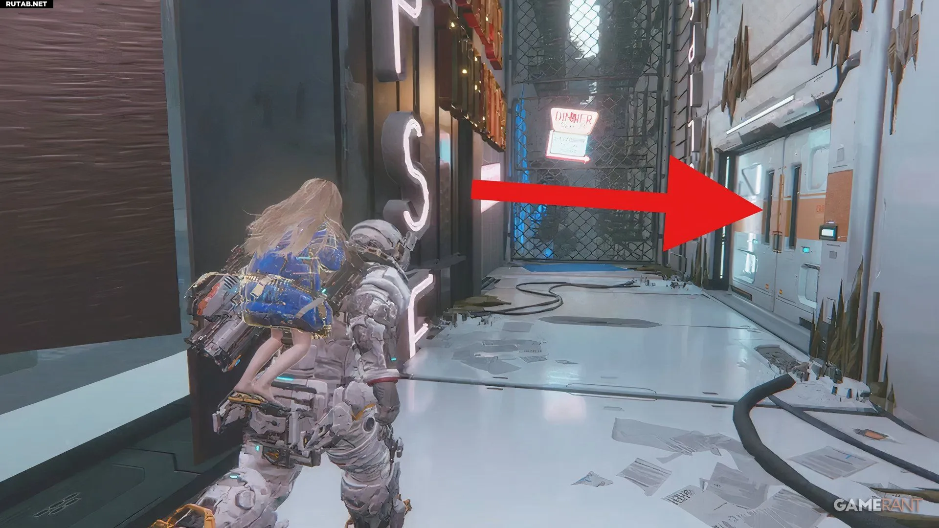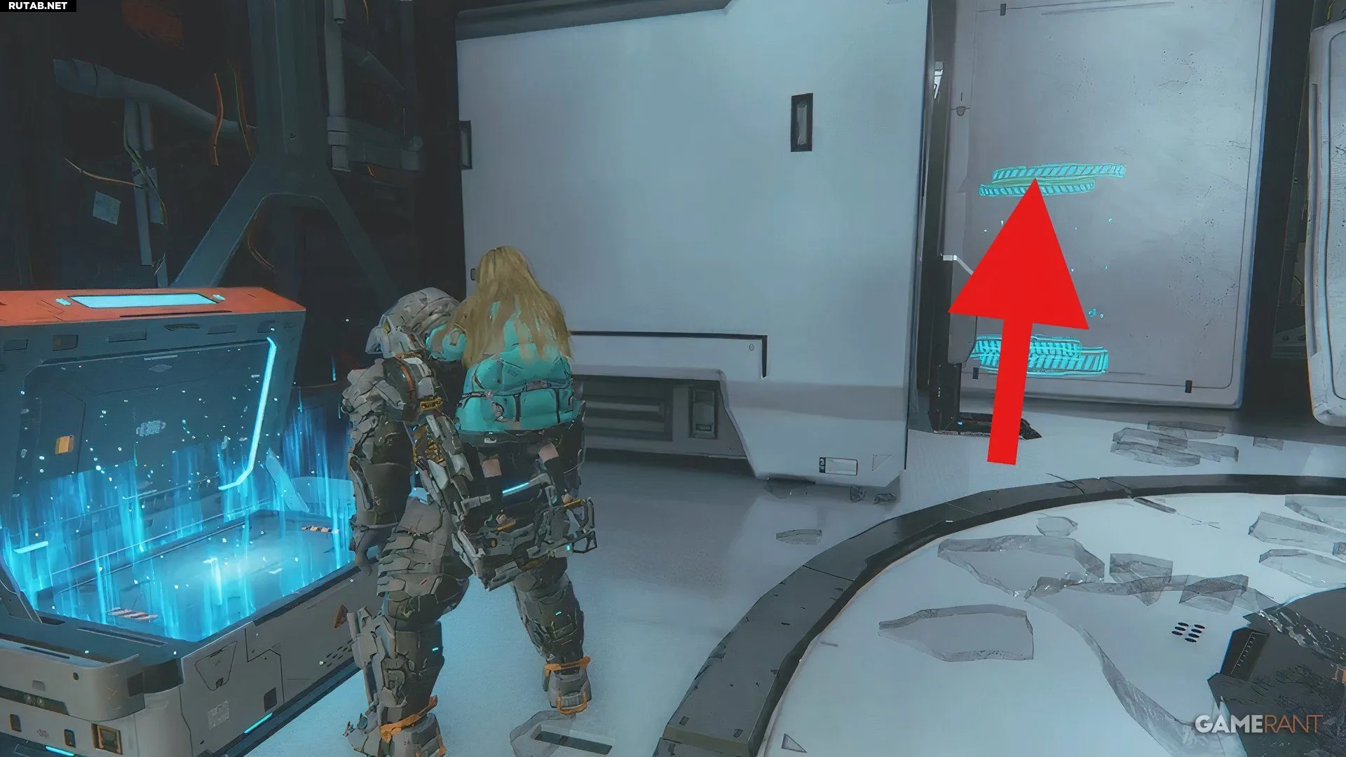 Когда вы окажетесь в ресторане «Stardust», используйте ближайший терминал, чтобы поднять платформу. Это позволит вам перепрыгнуть и зависнуть на пути к компоненту для улучшения на другой стороне комнаты.