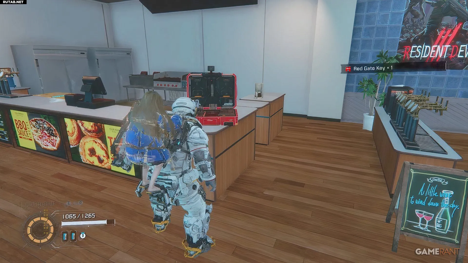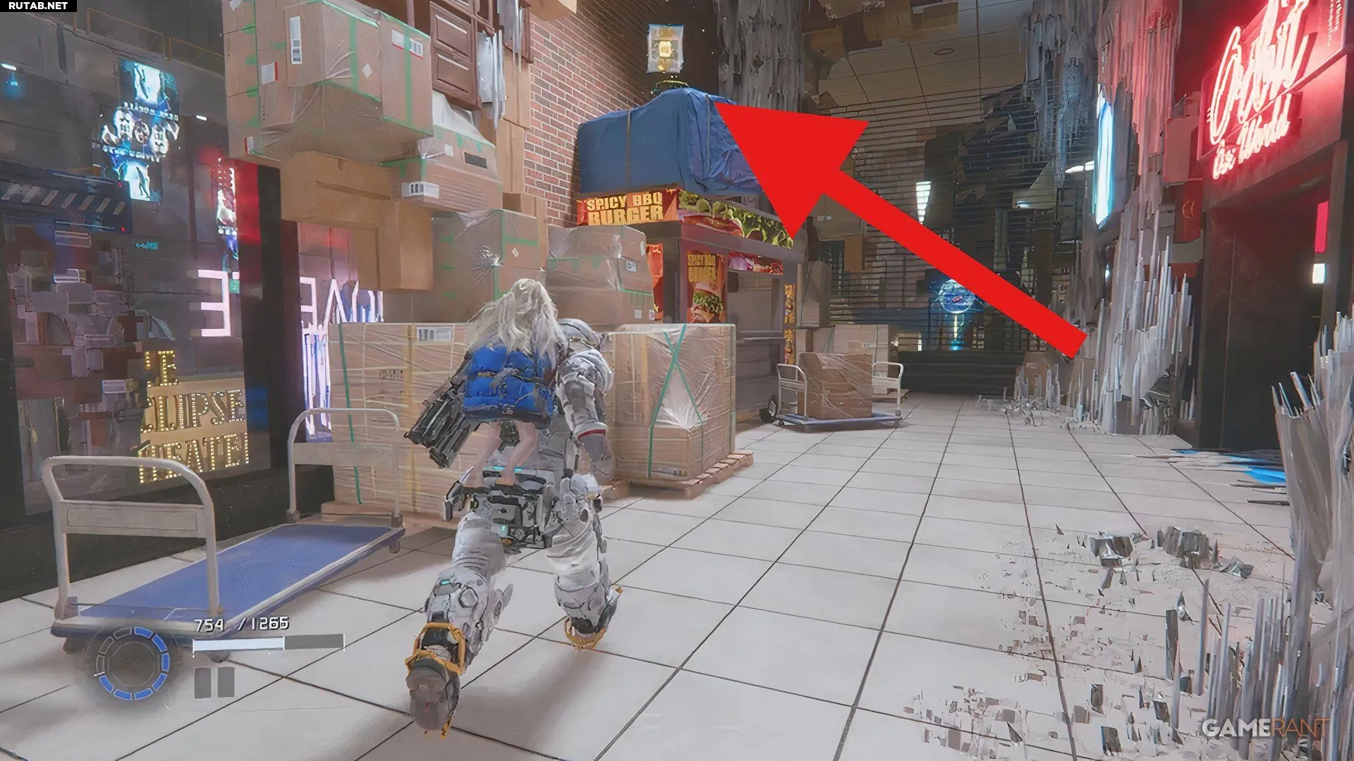 В следующей зоне, после того как вы взломаете дверь, вы увидите ещё один компонент для улучшения на тележке с бургерами.