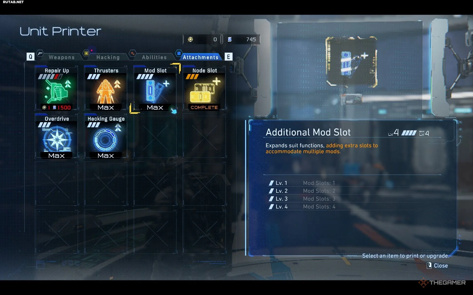Доступ к 3D-принтеру откроется, как только вы впервые попадёте в Убежище с Дианой. Однако по-настоящему он станет полезен только после выхода в сектор «Солнечная электростанция» — первую полноценную локацию игры — и начала поиска и испытания нового оружия, хаков и снаряжения, разбросанного повсюду. В каждом секторе вас ждёт несколько новых улучшений, поэтому внимательно исследуйте локации и пробуйте всё, что найдёте.