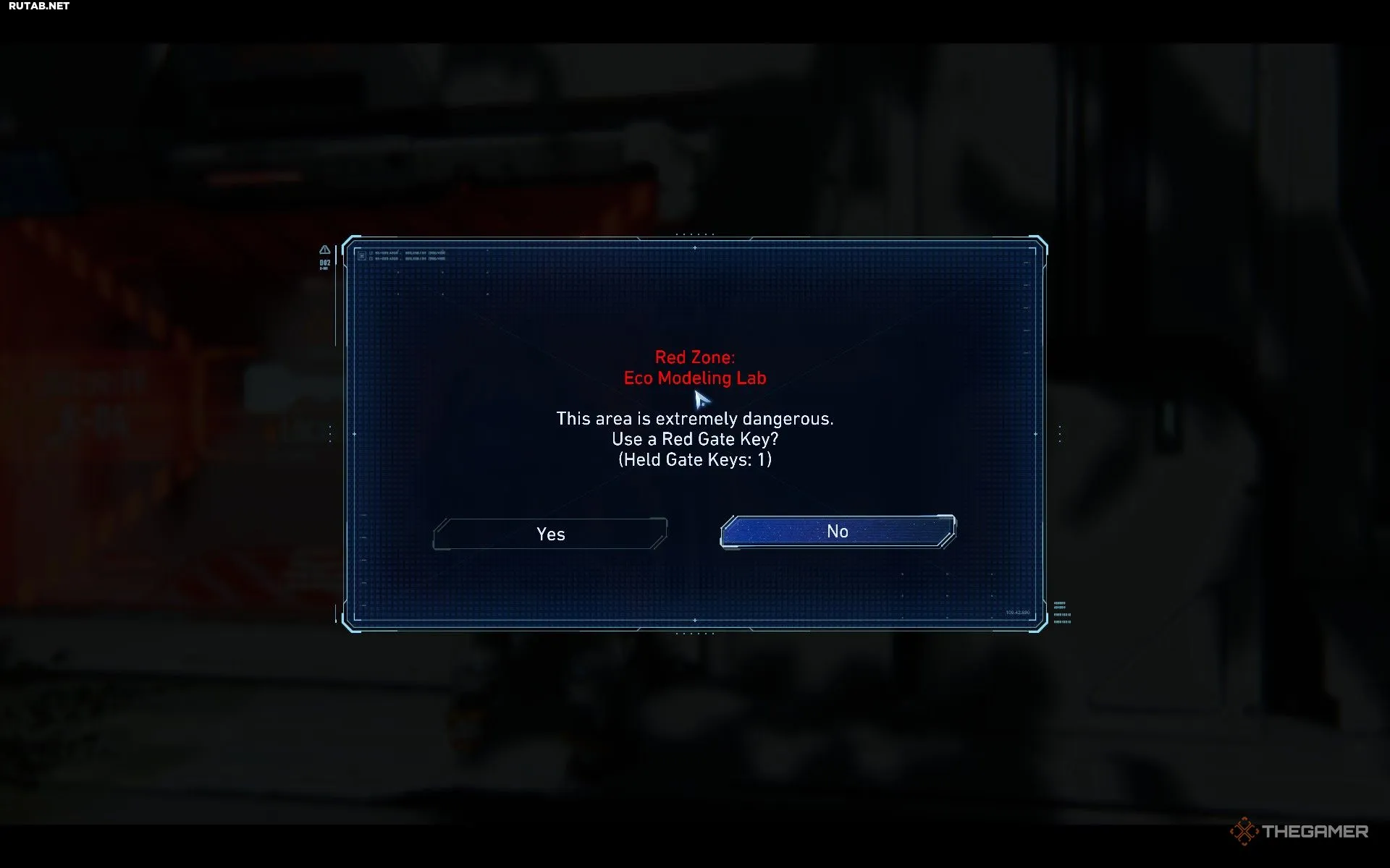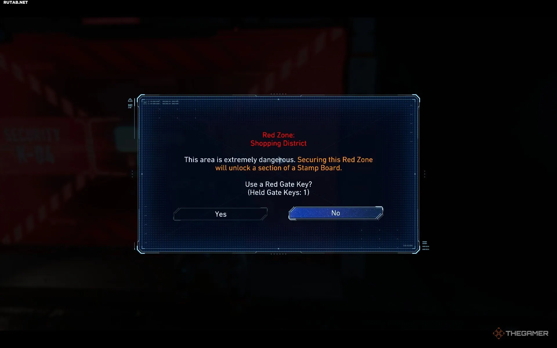 Вы можете увидеть Красные зоны на карте каждого сектора. Опасная область будет очерчена и соответствующим образом помечена, предупреждая об испытании, которое ждёт вас, если вы решите отправиться в этом направлении. Когда вы найдёте Красную зону и попытаетесь взаимодействовать с замком на правой стороне красного барьера, игра покажет вам информацию о предстоящем испытании, проверит возможность входа и предупредит, что вас ждёт сложное испытание.