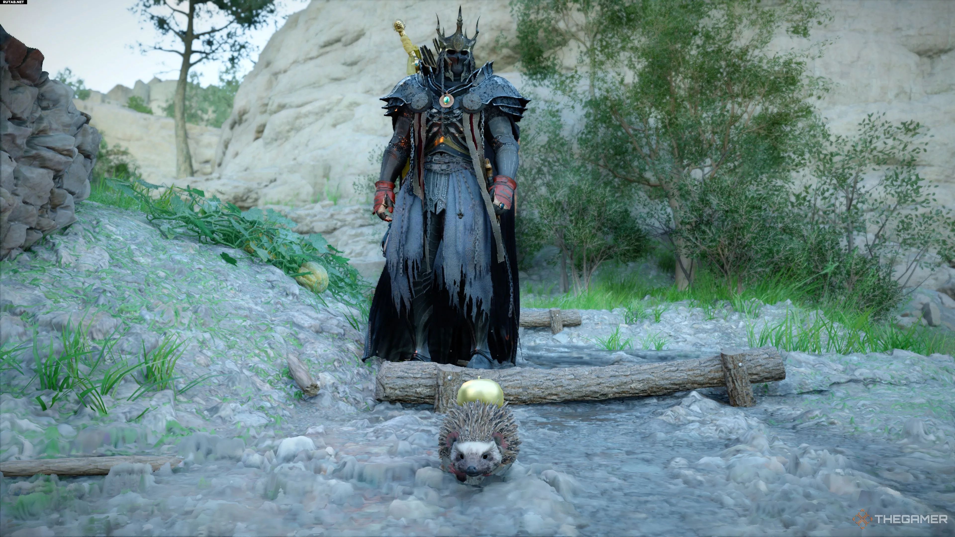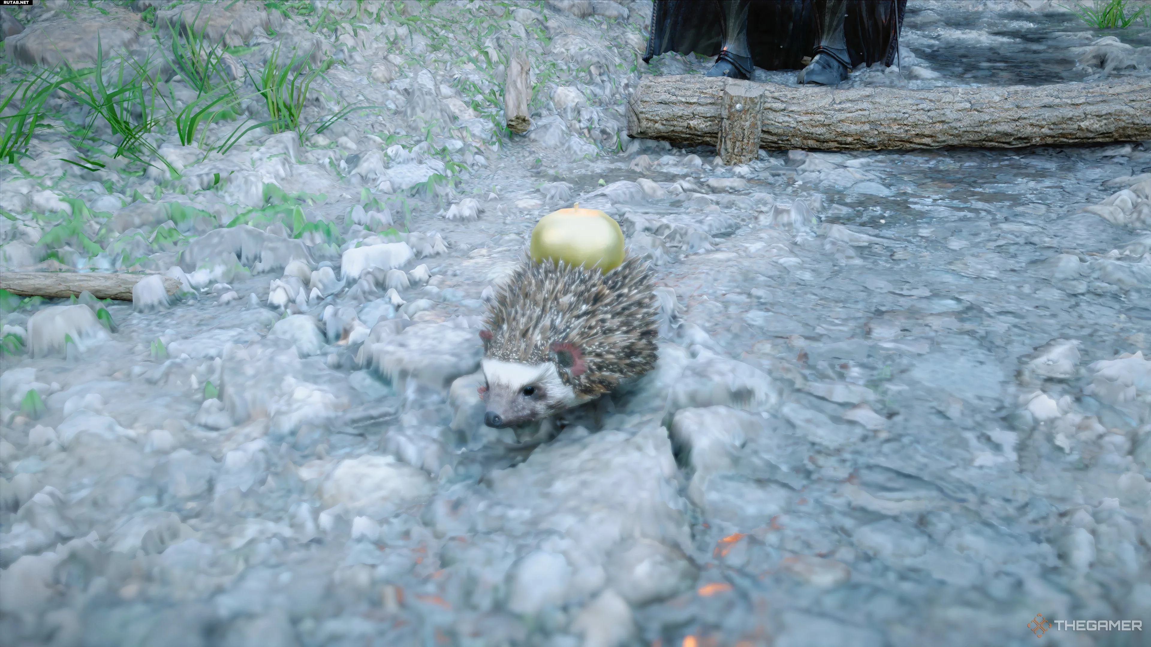 Посветите своим огнём на золотого яблочного ежа и аккуратно наведитесь на яблоко, чтобы появилась опция украсть. Вы также можете убить ёжика снарядом, чтобы проще забрать яблоко, но вам всё равно придётся его украсть.