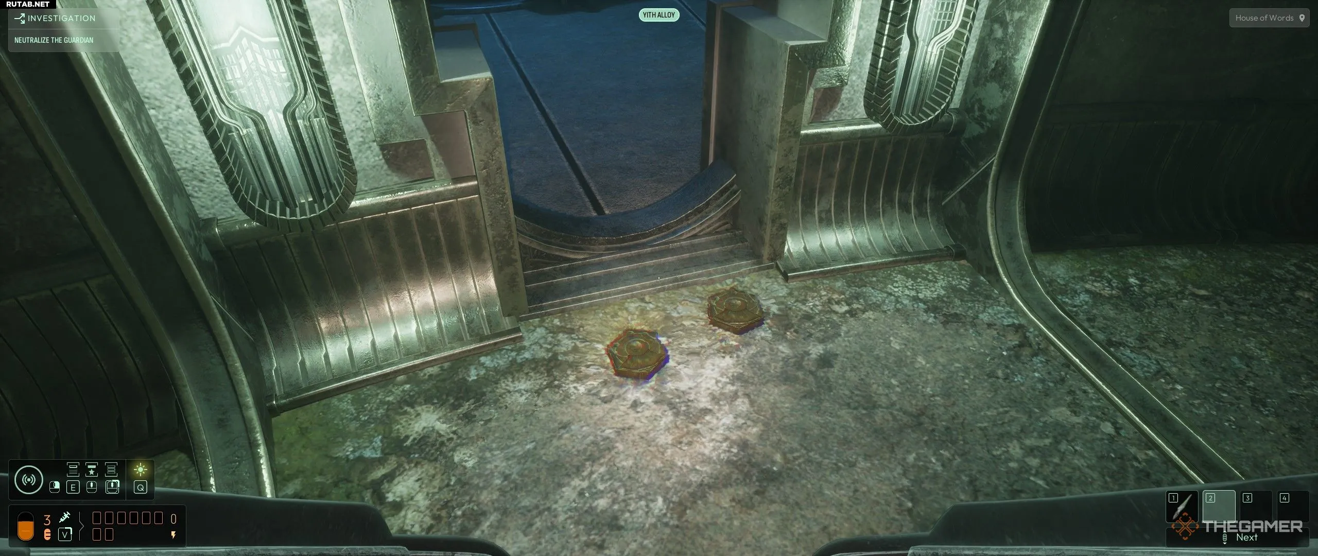 - Используйте первое кольцо, чтобы открыть дверь, ведущую в главную зону Дома Слов — для его лёгкого обнаружения используйте частоту Йитского сплава. Затем снова используйте частоту Йитского сплава, чтобы найти дверь, ведущую наружу, откуда открывается путь к началу главы. Ещё раз примените частоту Йитского сплава, чтобы обнаружить второе металлическое кольцо рядом с самым началом, где вы поднимались по лестнице, чтобы впервые увидеть Стража.