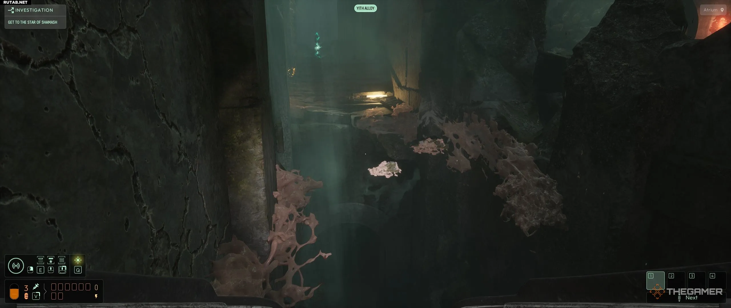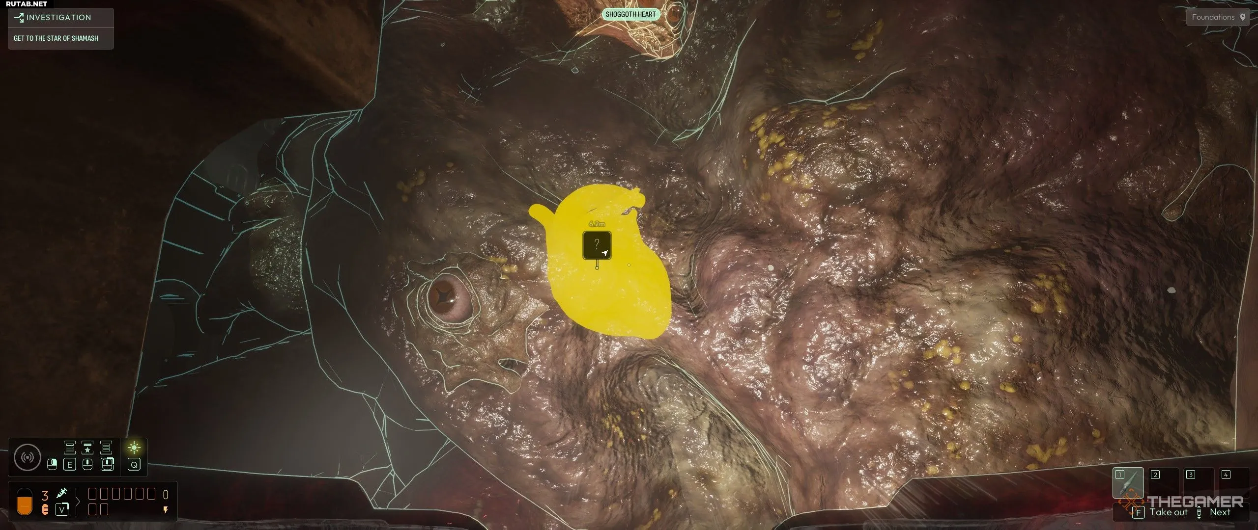 Вы знаете, из чего состоит Страж — сердце Шоггота, ставшее его оболочкой, находится здесь. Используйте Сонар, чтобы искать только Сердце Шоггота, и вы быстро его обнаружите — используйте на нём Светящийся Осколок Камня, чтобы убить Стража. Это откроет путь к концу главы и заодно навсегда сделает щупальца видимыми.