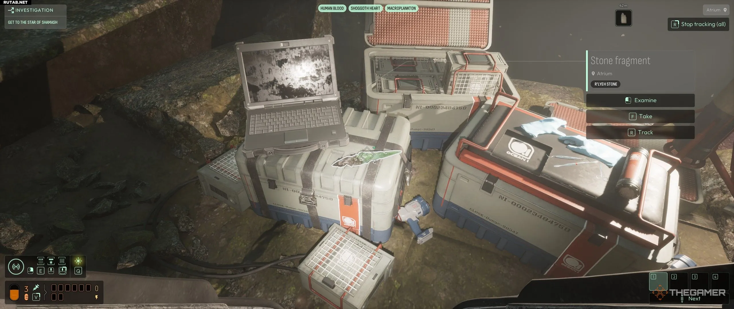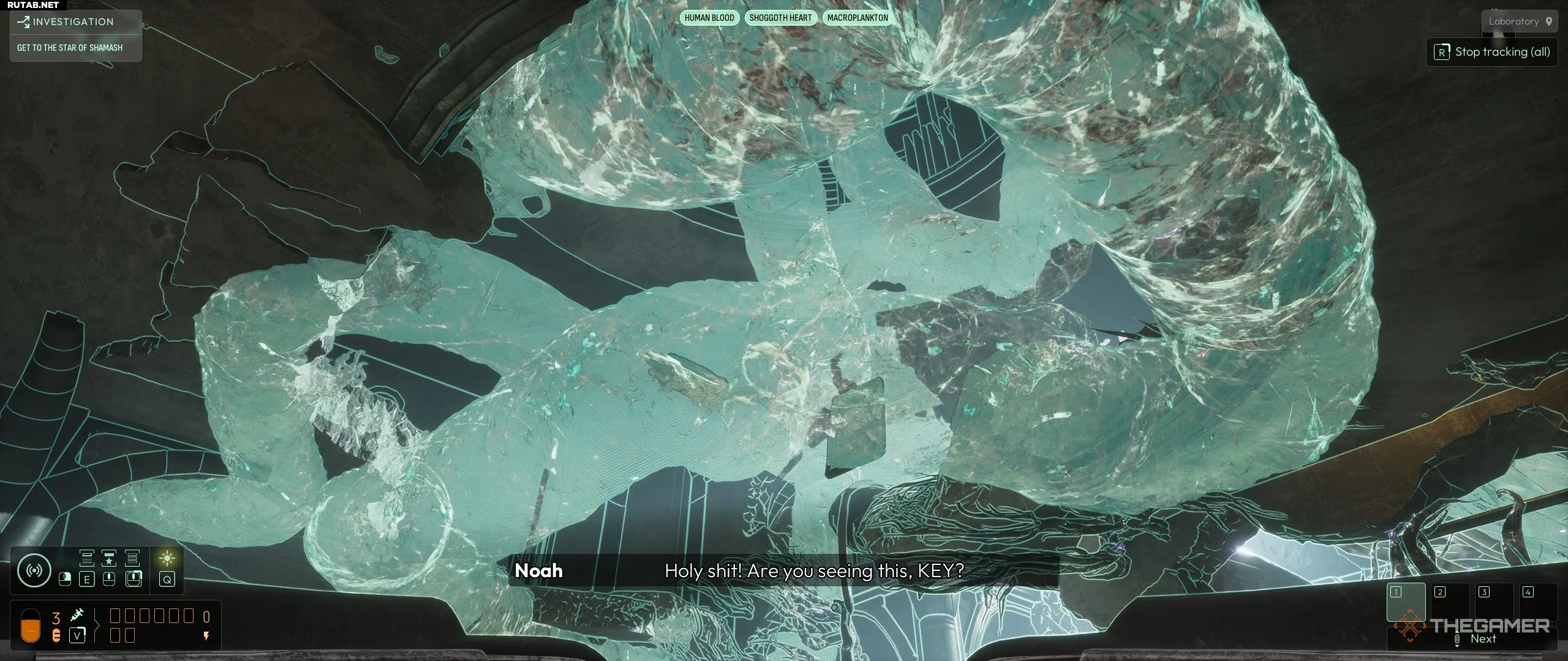 Теперь вы знаете, что три частоты (все их можно найти в Лаборатории), необходимые для обнаружения щупалец, — это Человеческая кровь, Сердце Шоггота и Макропланктон.