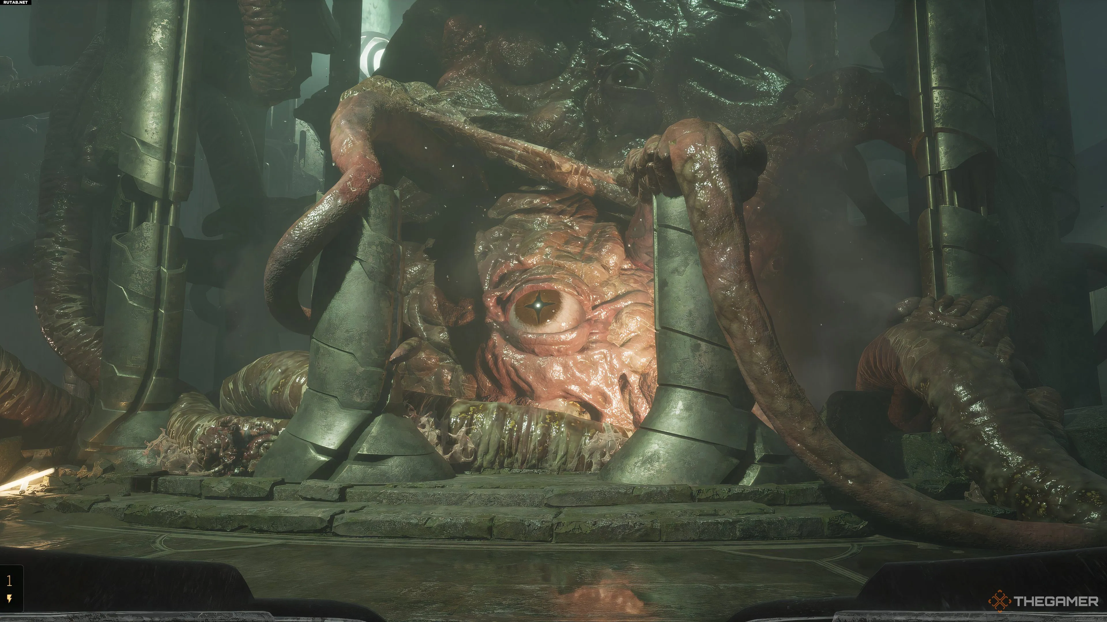 С этим инструментом в арсенале вы теперь можете свободно и легко исследовать уровень (будьте осторожны, стоя на щупальцах, конечно, они наносят урон со временем!) и решить, каким путём вы будете разбираться со Стражем.