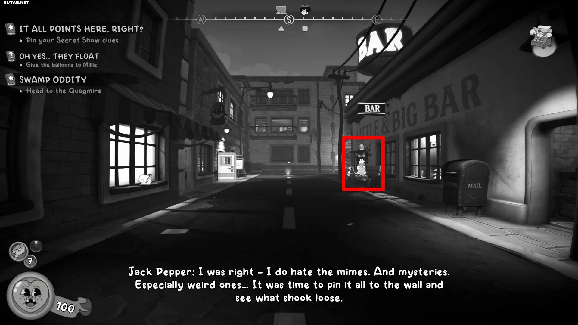 Задание становится доступным после получения основной миссии «It All Points Here, Right?», действие которой происходит на «Секретном шоу». Получив эту цель, отправляйтесь к восточной стороне бара «Little & Big» в районе детективного агентства (напротив магазина «Soup to Nuts») и поговорите с мышкой Милли Кёрд, стоящей на скамейке.