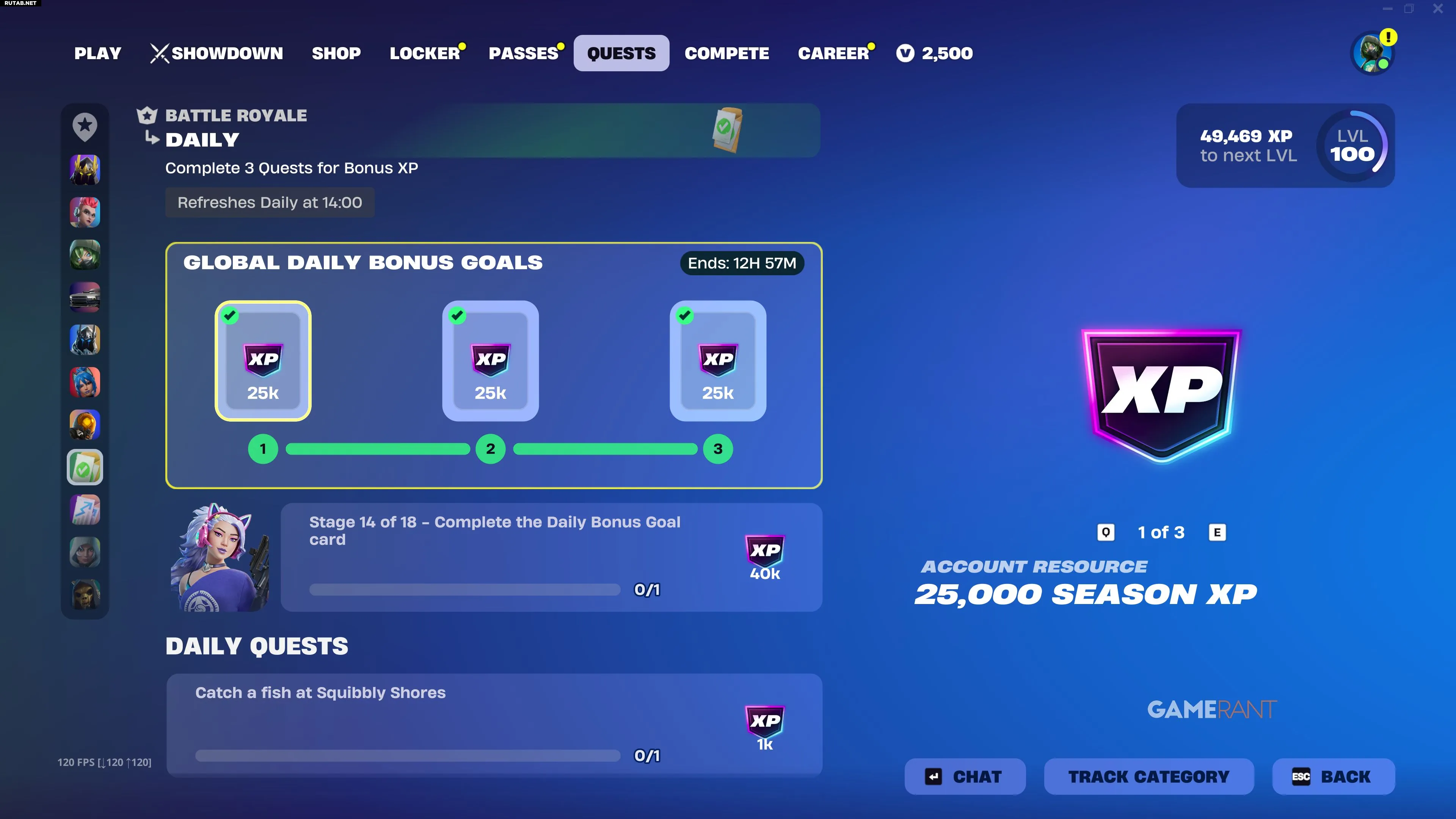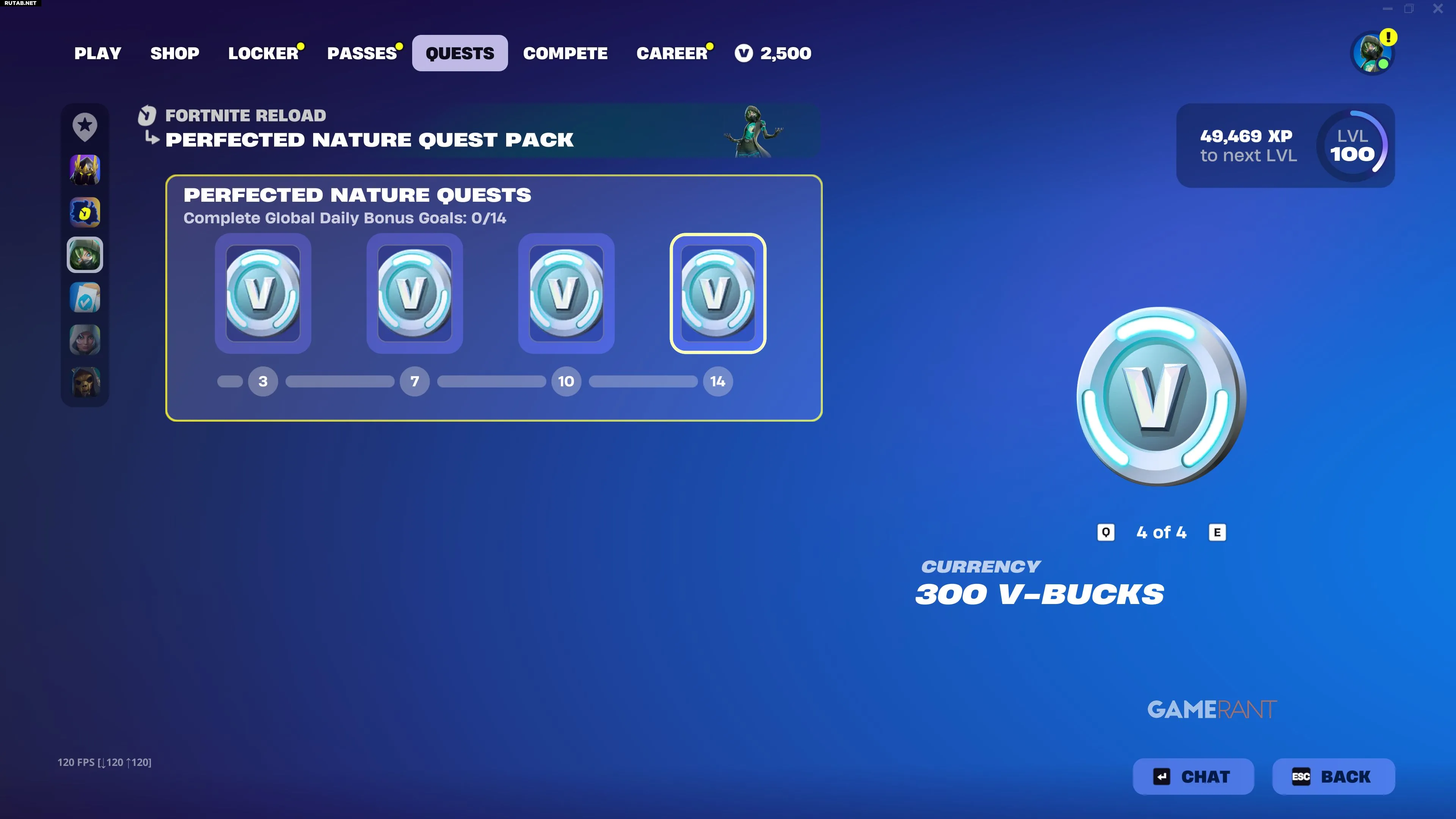В-баксы не выдаются сразу. Чтобы их получить, нужно выполнить цепочку заданий Perfected Nature. Основное условие — завершить 14 глобальных ежедневных бонусных целей.