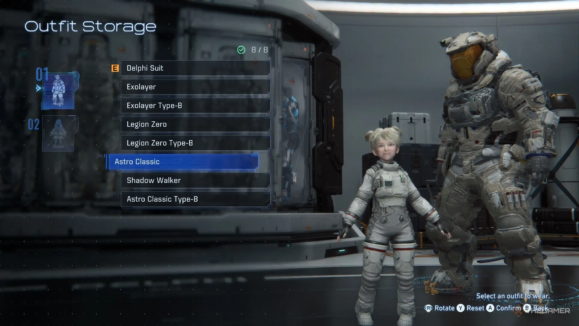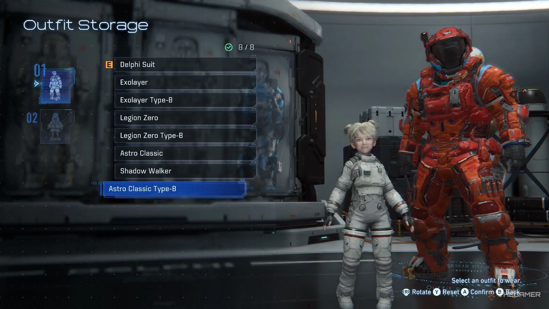 У Хью и Дианы одинаковое количество костюмов — девять, которые можно получить в базовой версии игры, плюс дополнительные из делюкс-издания. Ниже описано, как разблокировать все костюмы из стандартной версии игры.