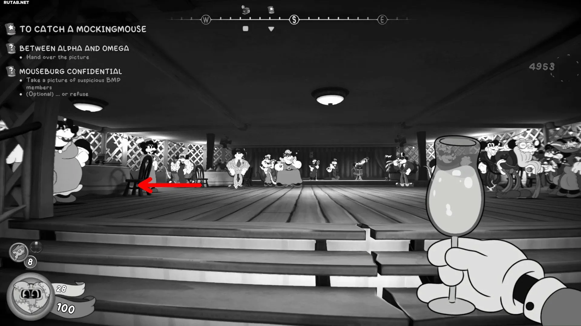 Вернитесь к Подставному агенту на Палубу II и отдайте ему фотографию. Это завершит задание «Mouseburg Confidential», и вы получите награду в размере 2 монет.