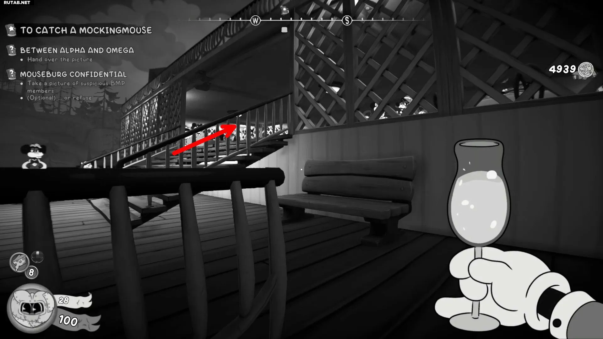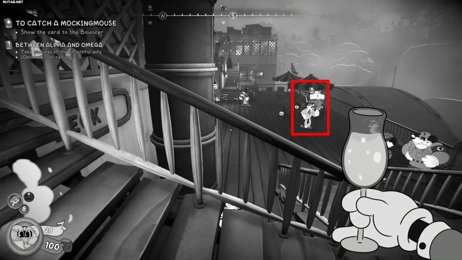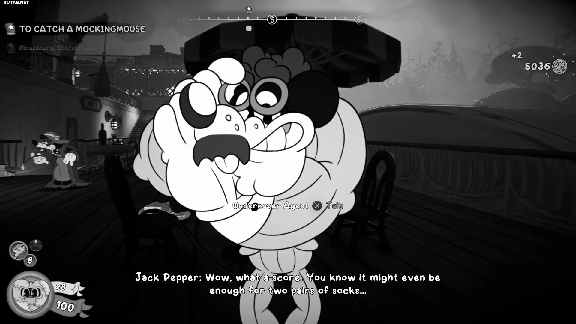 Задание «Mouseburg Confidential» становится доступным во время прохождения основного сюжета «To Catch a Mockingmouse» на корабле. Следуя по маршруту, вы пройдете через «Cigar Room II», а затем спуститесь по лестнице обратно на Палубу II. У подножия лестницы поговорите с Подставным агентом, чтобы получить задание.