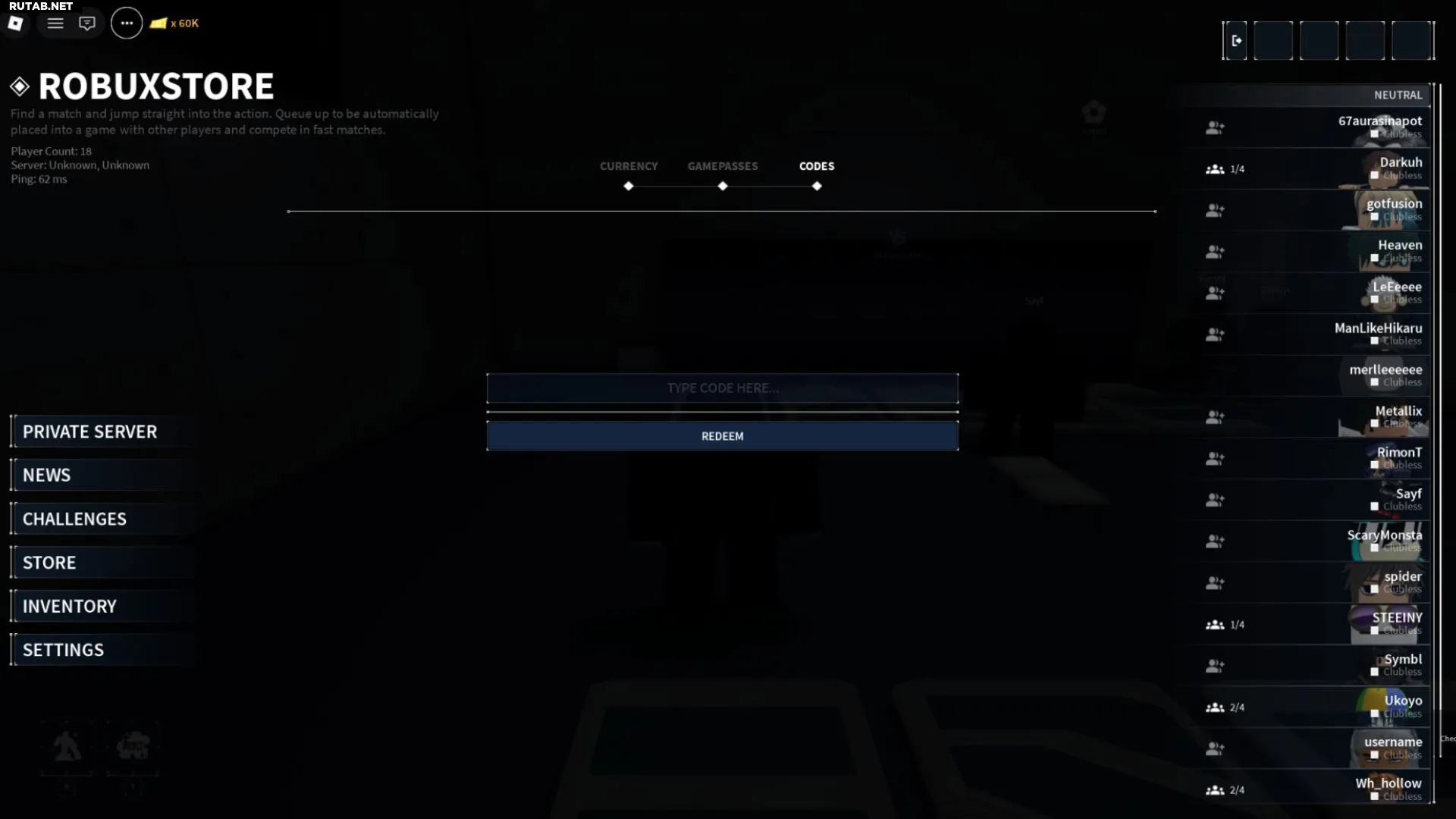 - Найдите раздел «Магазин» (Store) и перейдите во вкладку «Коды» (Codes) внутри него.
