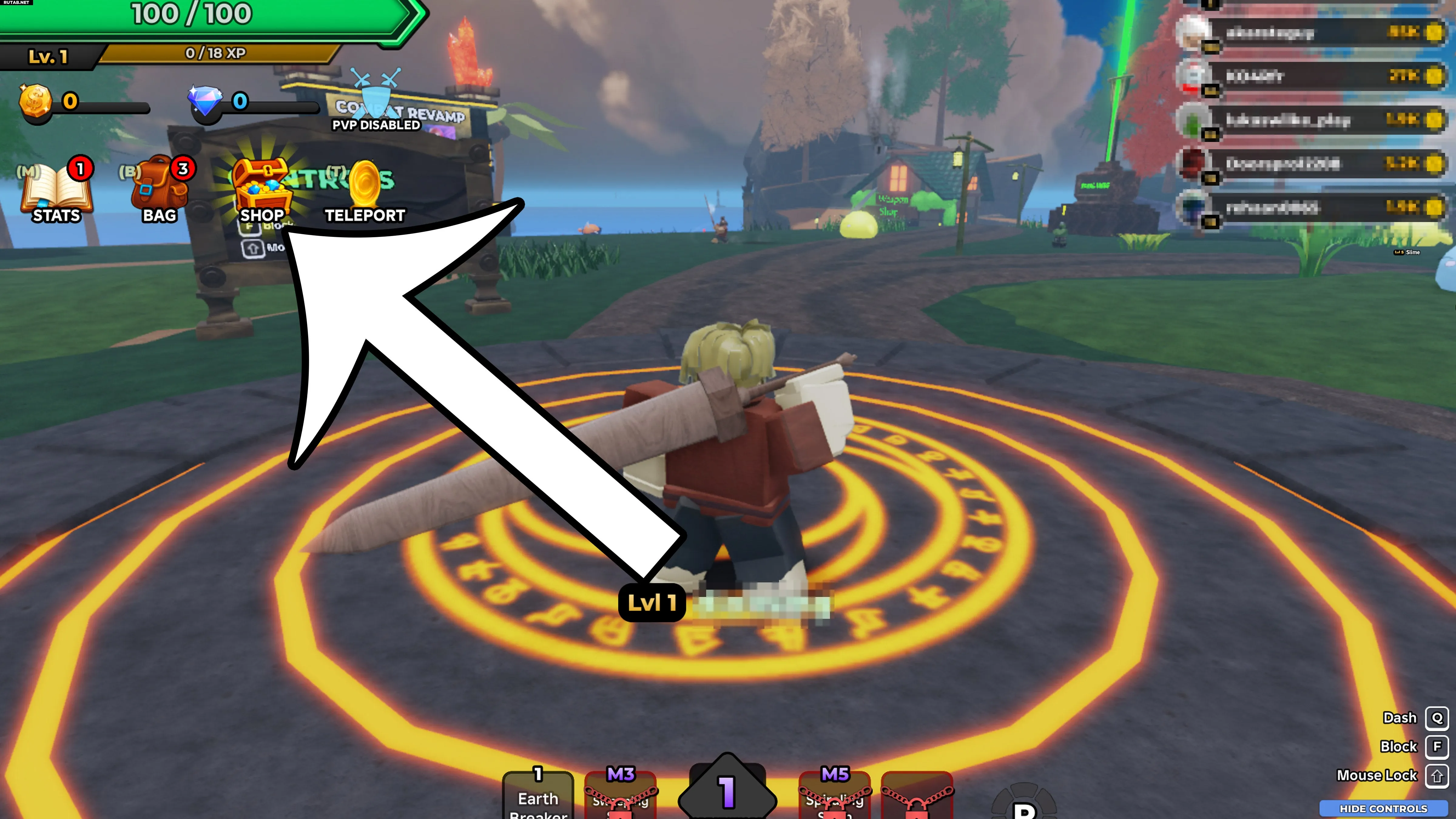 - Запустите Slime Seas в Roblox.