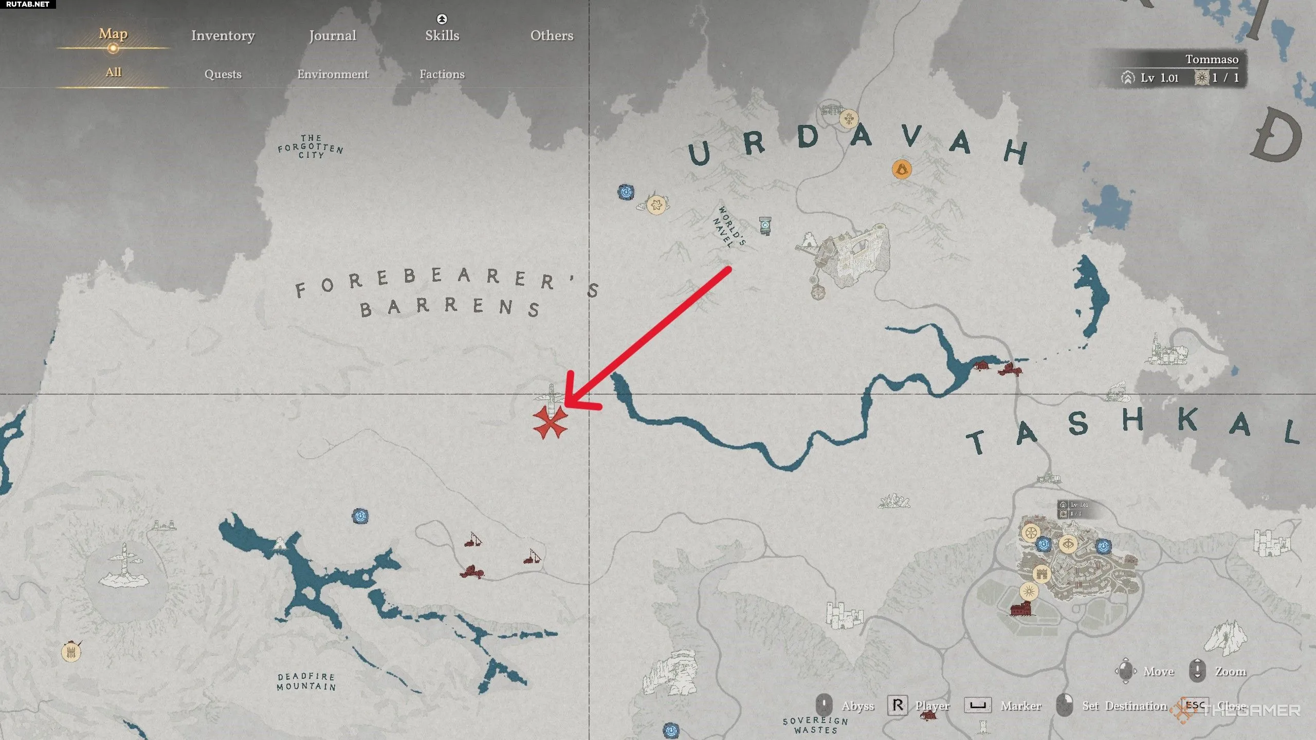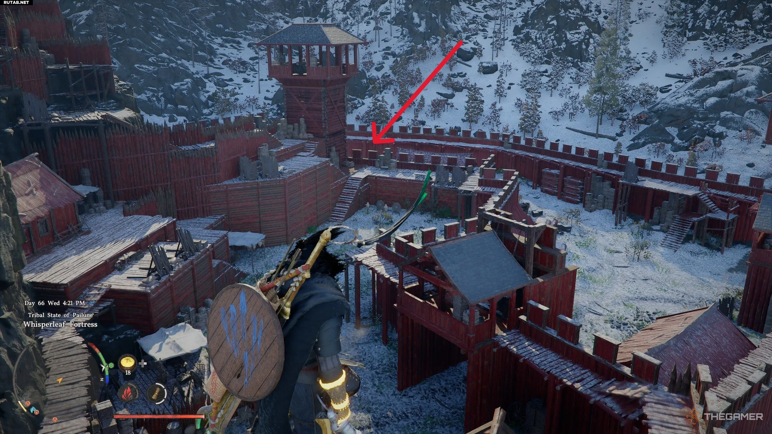 За этим кольцом мы отправимся к северу от Эрнанда, в Пайлун. К западу от Серебряных Волчьих гор вам нужно будет добраться до крепости Шепчущий Лист (показано выше). Когда вы прибудете, используйте Подъём, чтобы поднять массивные ворота и войти внутрь. Затем вам нужно будет направиться в юго-западный угол крепости на уровне земли.