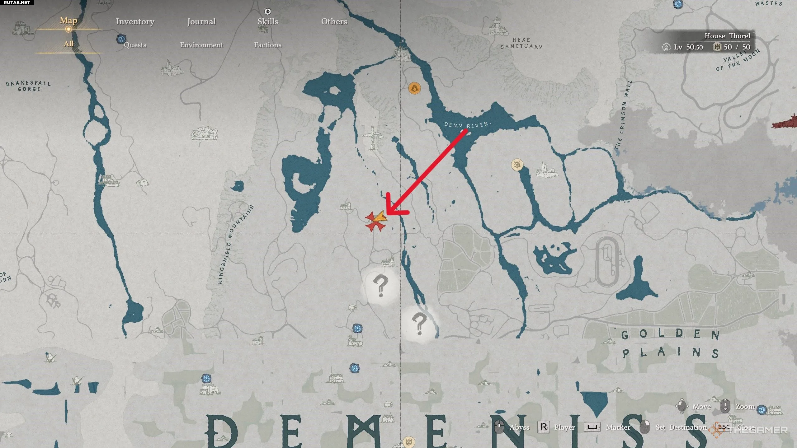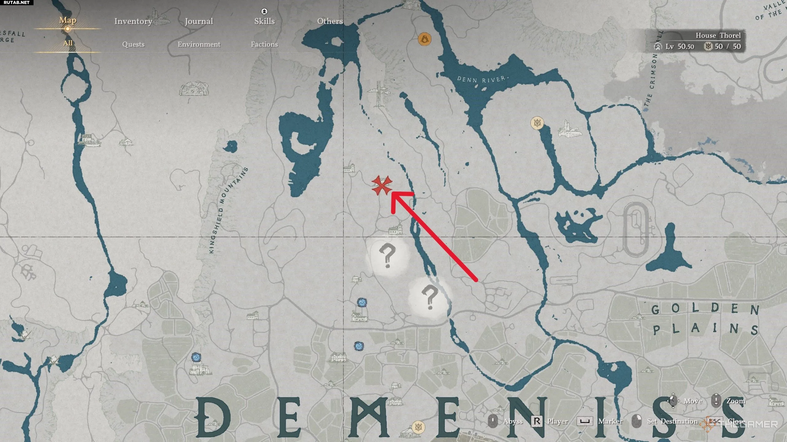 Наше первое кольцо — «Отметка тьмы», которое можно найти на севере Деменисса. Оно находится в поместье Виндмир, к западу от Королевского Щита, среди различных усадеб и ферм. Когда вы доберётесь туда, пройдите через главную дверь и поверните налево. Поднимитесь по Лестнице, затем пройдите через вторую дверь слева.