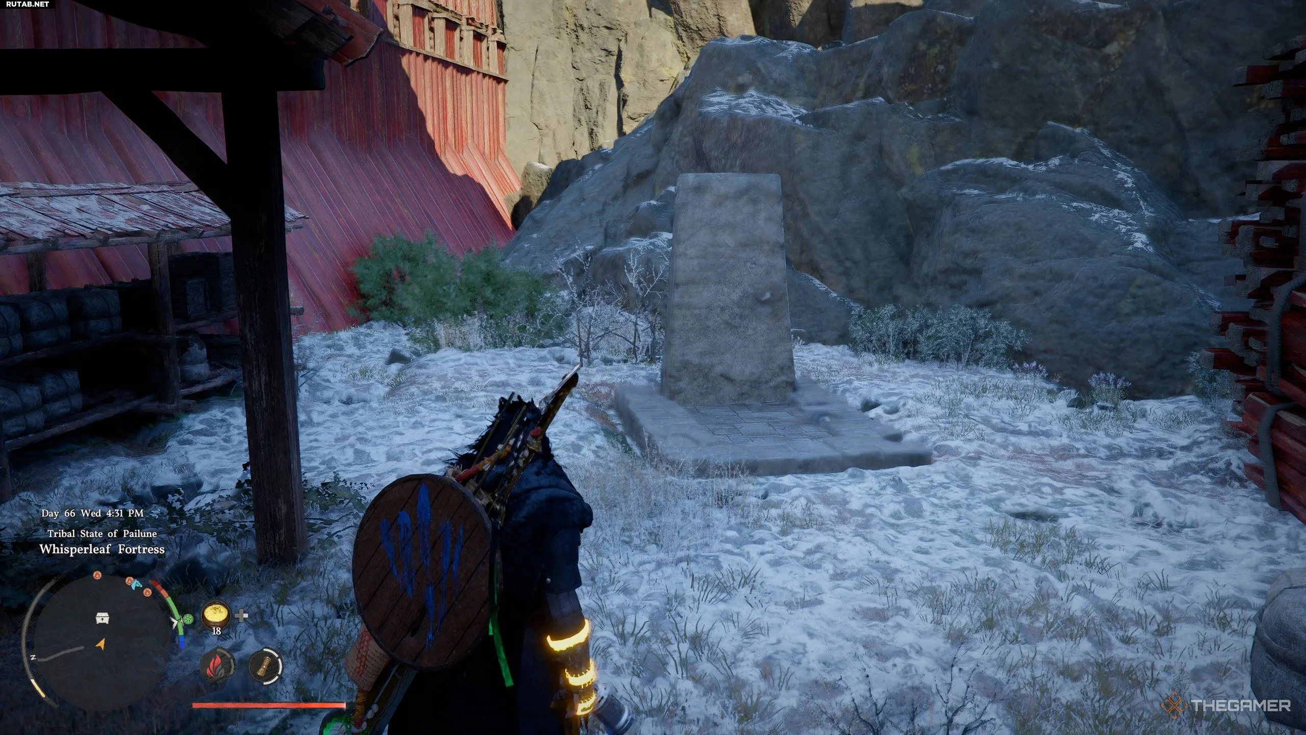 За палаткой вы найдёте большой одинокий каменный надгробный камень. Подойдите к нему и нанесите удар Удар пальмары, чтобы поднять камень и открыть потайной Люк, ведущий в небольшую крипту. Спуститесь по лестнице и взаимодействуйте с Сейфом, когда окажетесь внизу. Для этой головоломки нужно нажать кнопки так, чтобы все руны загорелись.