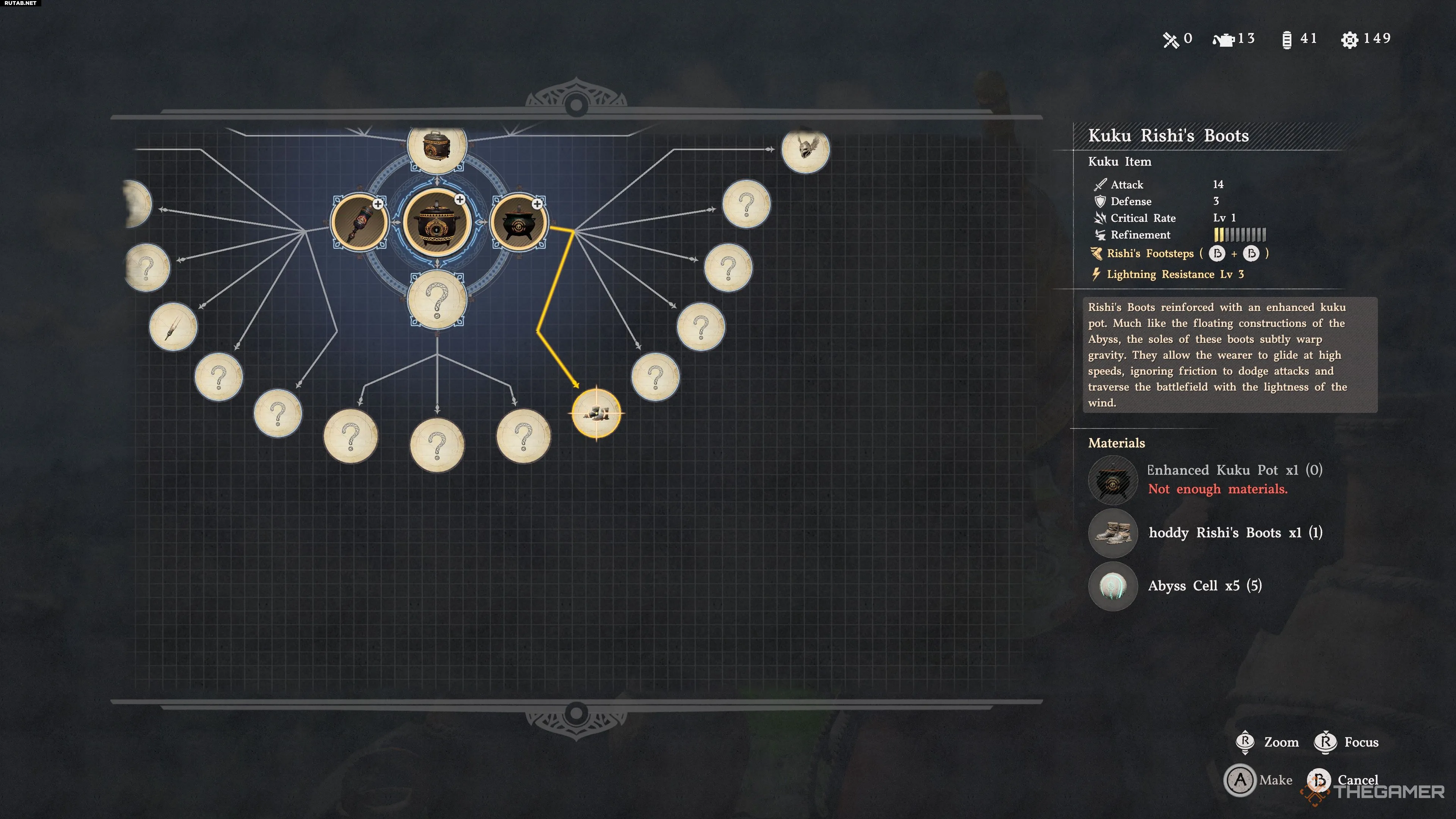После того как вы Одолеете Копьё Антумбры и решите головоломку в святилище, вы разблокируете рецепт создания Сапог Желтоклюва Риши.