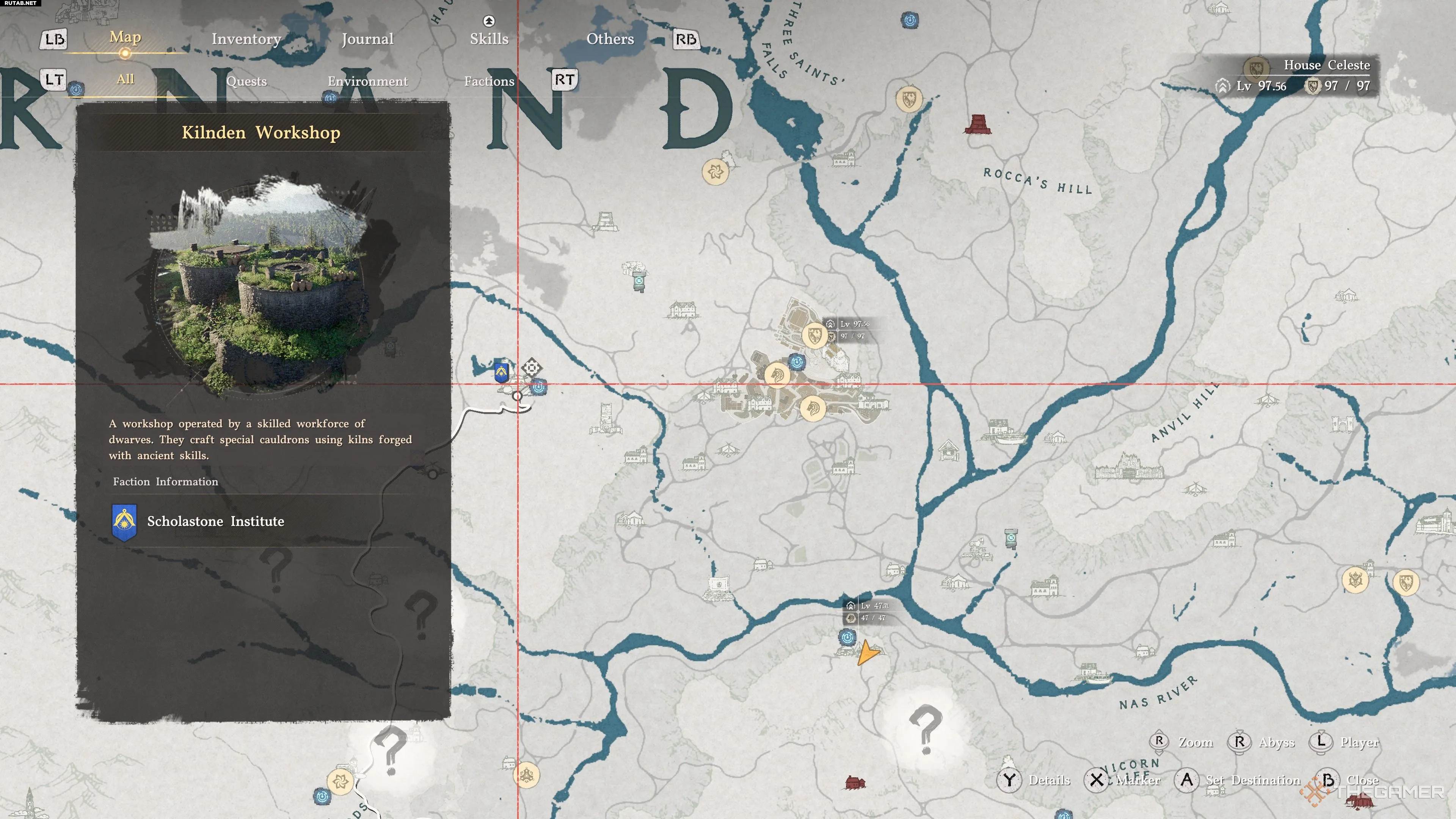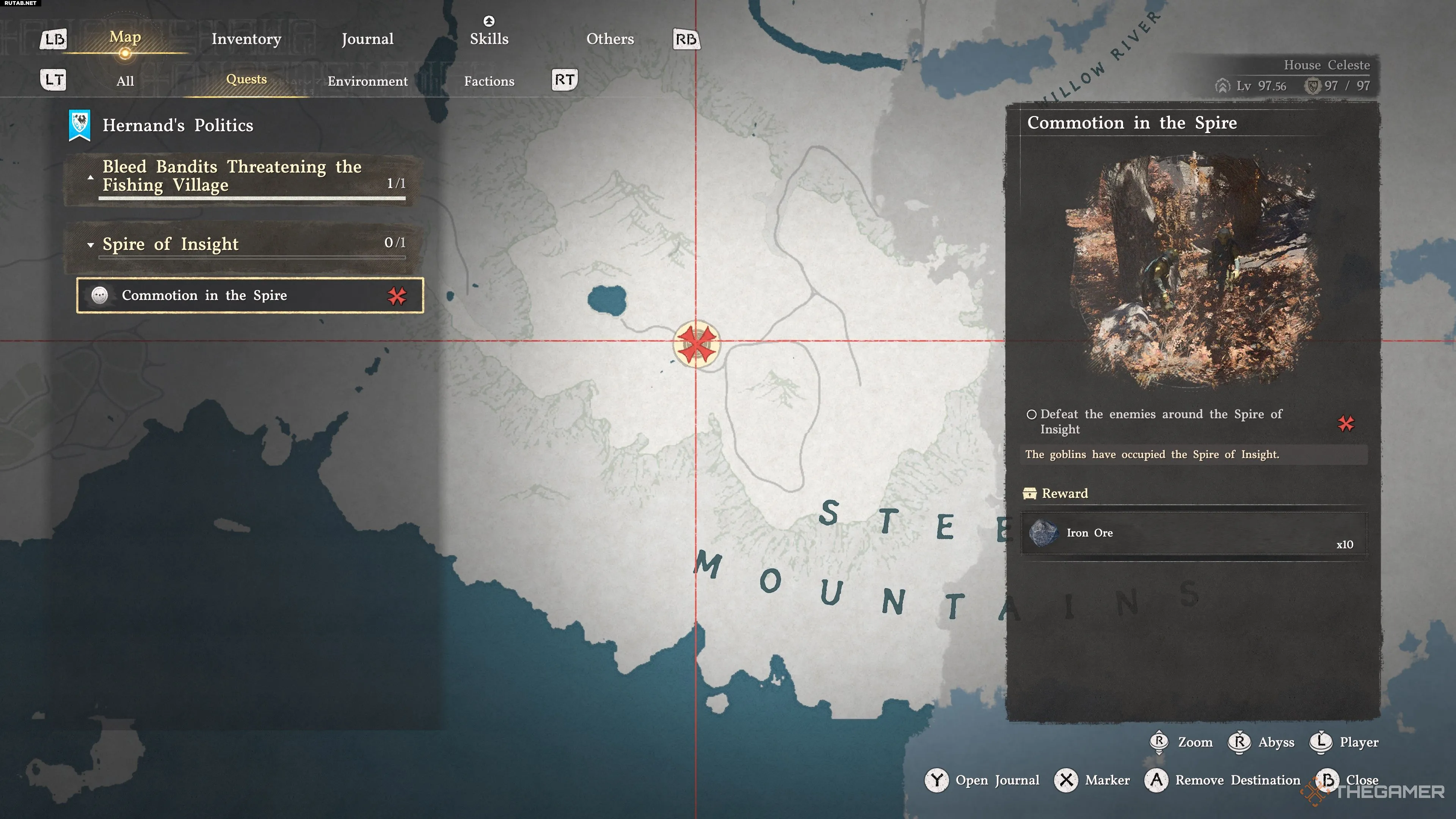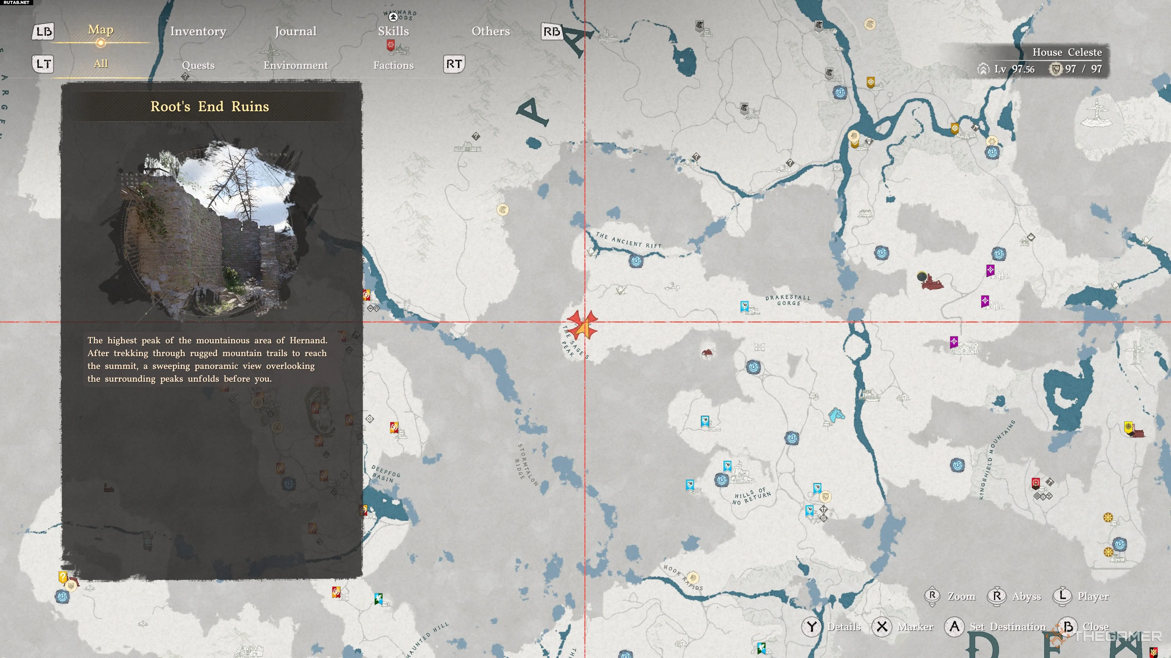 Чтобы начать эту цепочку, отправляйтесь на дальний северо-запад карты, в Бездну, затем идите к югу от буквы «А» в названии «Ташкалп» к переправе.