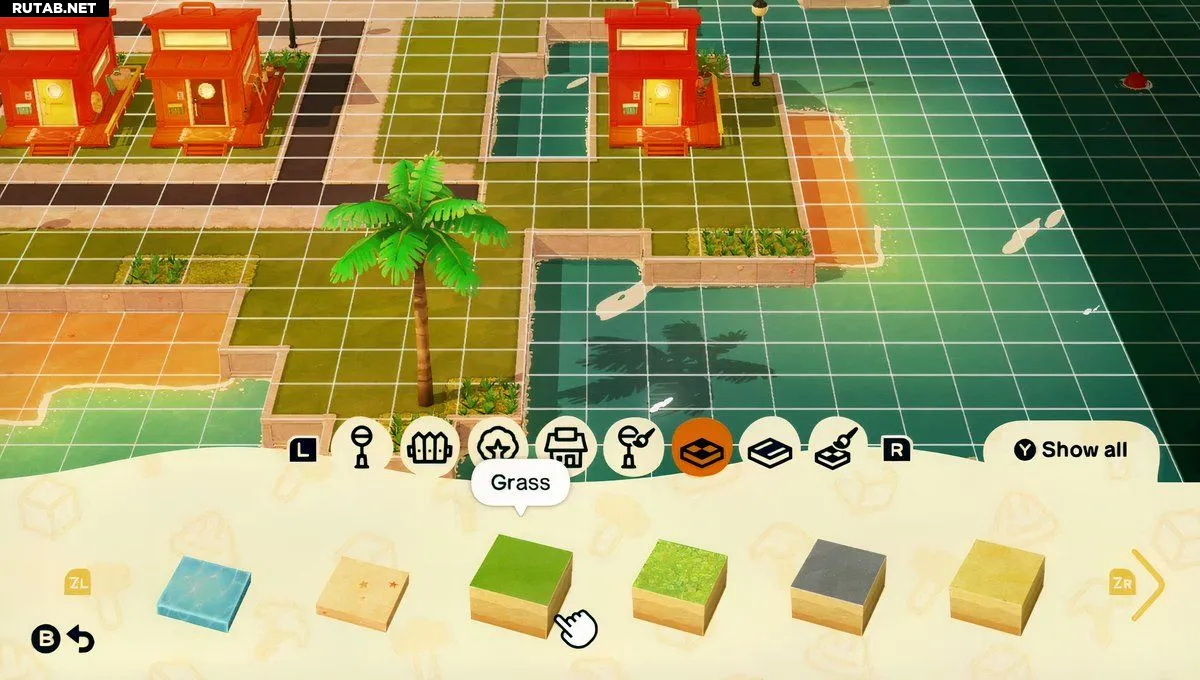 Новые объекты открываются по мере достижения определённых вех, обычно связанных с населением и количеством завершённых взаимодействий. Чем оживлённее остров, тем больше мест становится доступно. Вы также можете добавлять землю в пределах границ, отмеченных красными буями, с помощью инструмента «Строитель острова» в стартовом меню. Там вы можете размещать участки травы, бетона, песка или других типов поверхности.