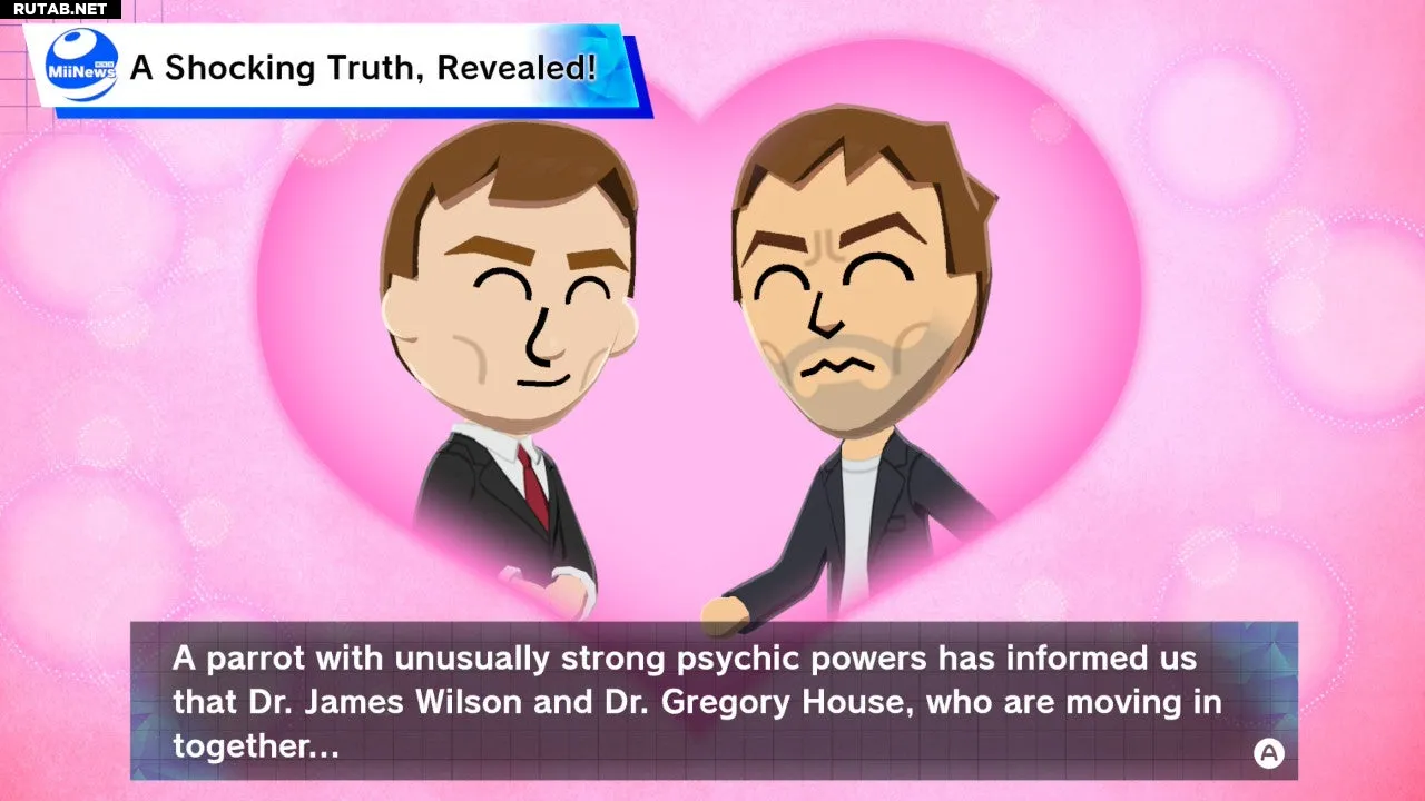 Доктор Грегори Хаус и доктор Джеймс Уилсон из сериала «Доктор Хаус» обладают особенно уникальными экранными отношениями, где в любой момент они могут быть врагами, любовниками, лучшими друзьями или братьями. Это невероятно хорошо ложится на атмосферу Tomodachi Life, особенно если вам удастся убедить эту пару стать лучшими друзьями и поселиться вместе, как это сделал я!