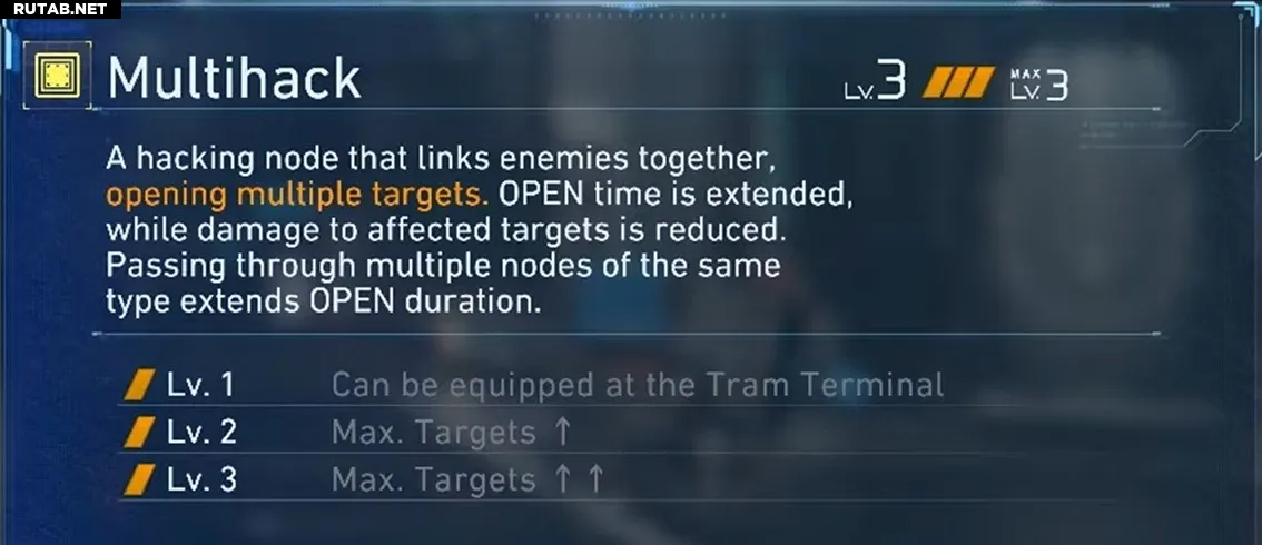 Мультихакна бумаге выглядит как плохая сделка: время «Открытости» увеличивается, а урон снижается. Однако в описании не указано самое главное. Любой другой жёлтый узел, активированный в той же сетке, применяется ко всем врагам, связанным Мультихаком. Комбинируйте его с Конфьюзом — и целая комната врагов начнёт стрелять друг в друга. Это, по сути, основной метод прохождения симуляции «Плохая Кровь».