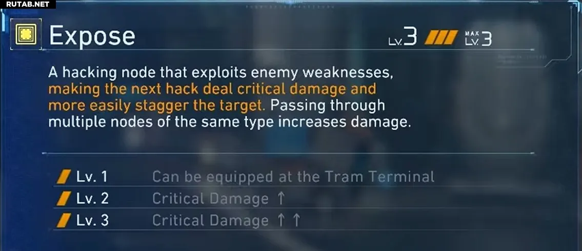 Сетка состоит из узлов разных цветов. Синие узлы Открытия увеличивают урон от взлома и продлевают состояние «Открытости» каждый раз, когда вы через них проходите. Фиолетовые узлы открываются через улучшения в Принтере Модулей за Чистый Лунум в Убежище. Жёлтые узлы — это ваши экипированные узлы взлома, и именно их мы и оцениваем в этом списке.