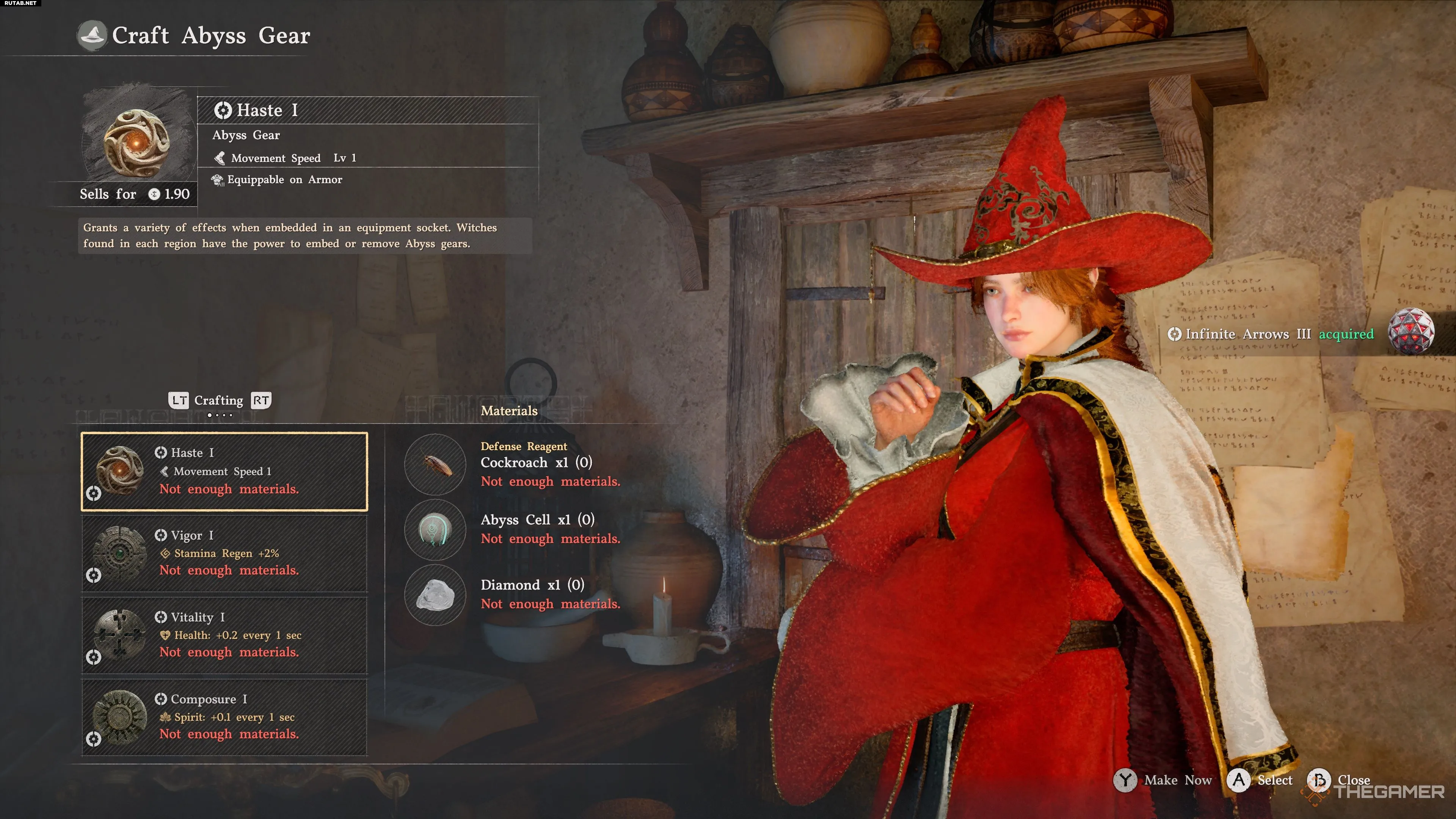После этого перейдите во вкладку «Встроить снаряжение Бездны» в меню ведьмы и выберите каждый экземпляр «Бесконечных стрел», чтобы встроить их в выбранный лук и стрелы.