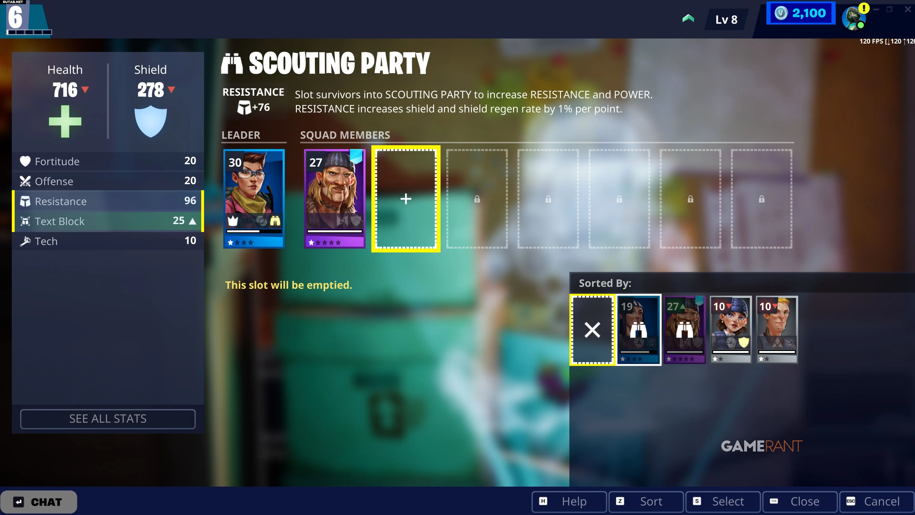 Каждый Отряд Выживших имеет 1 слот для Лидера и 7 дополнительных слотов для обычных Выживших. Изначально вам будет доступен только один тип отряда и ограниченное количество слотов, но со временем вы откроете больше.