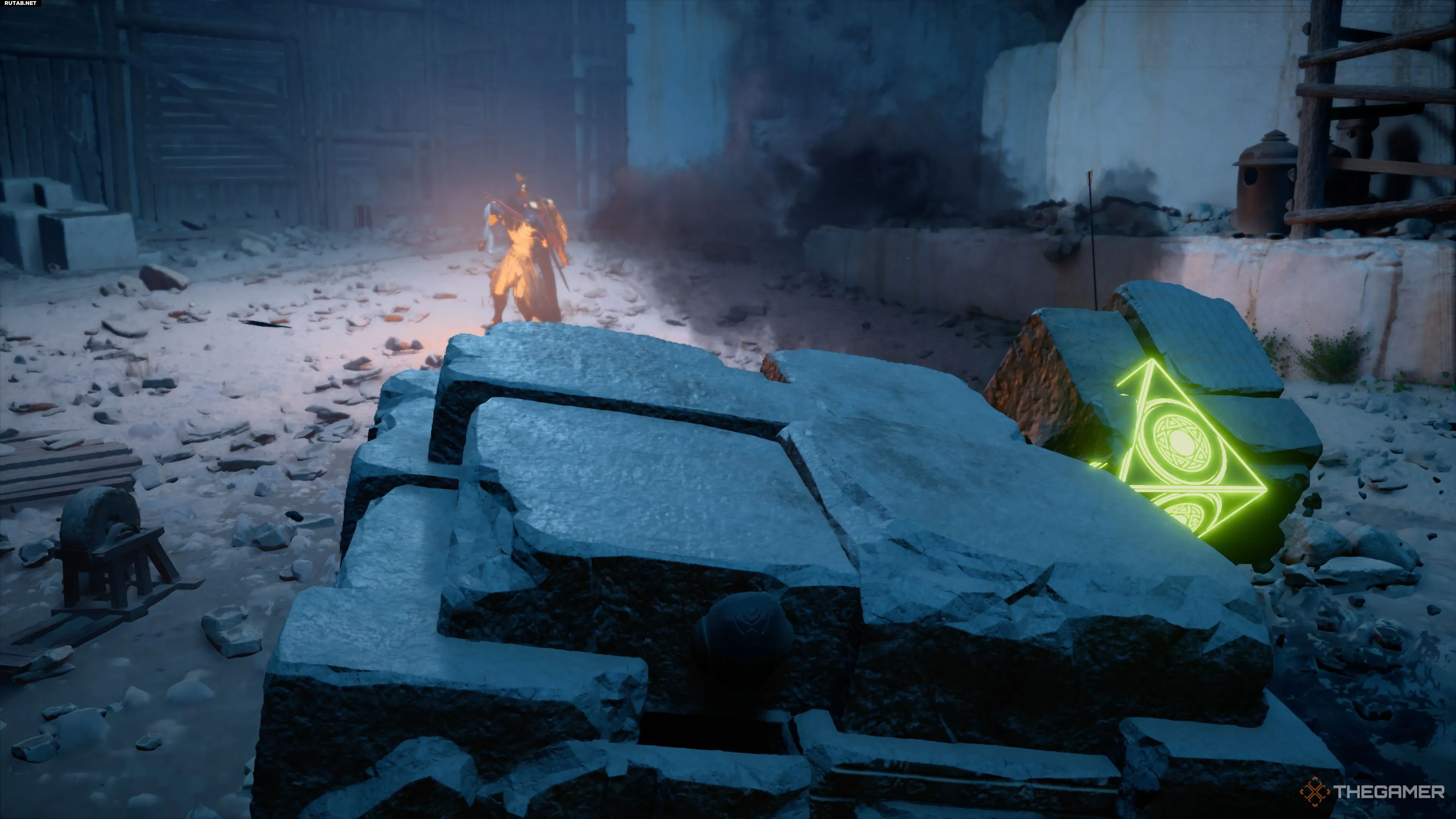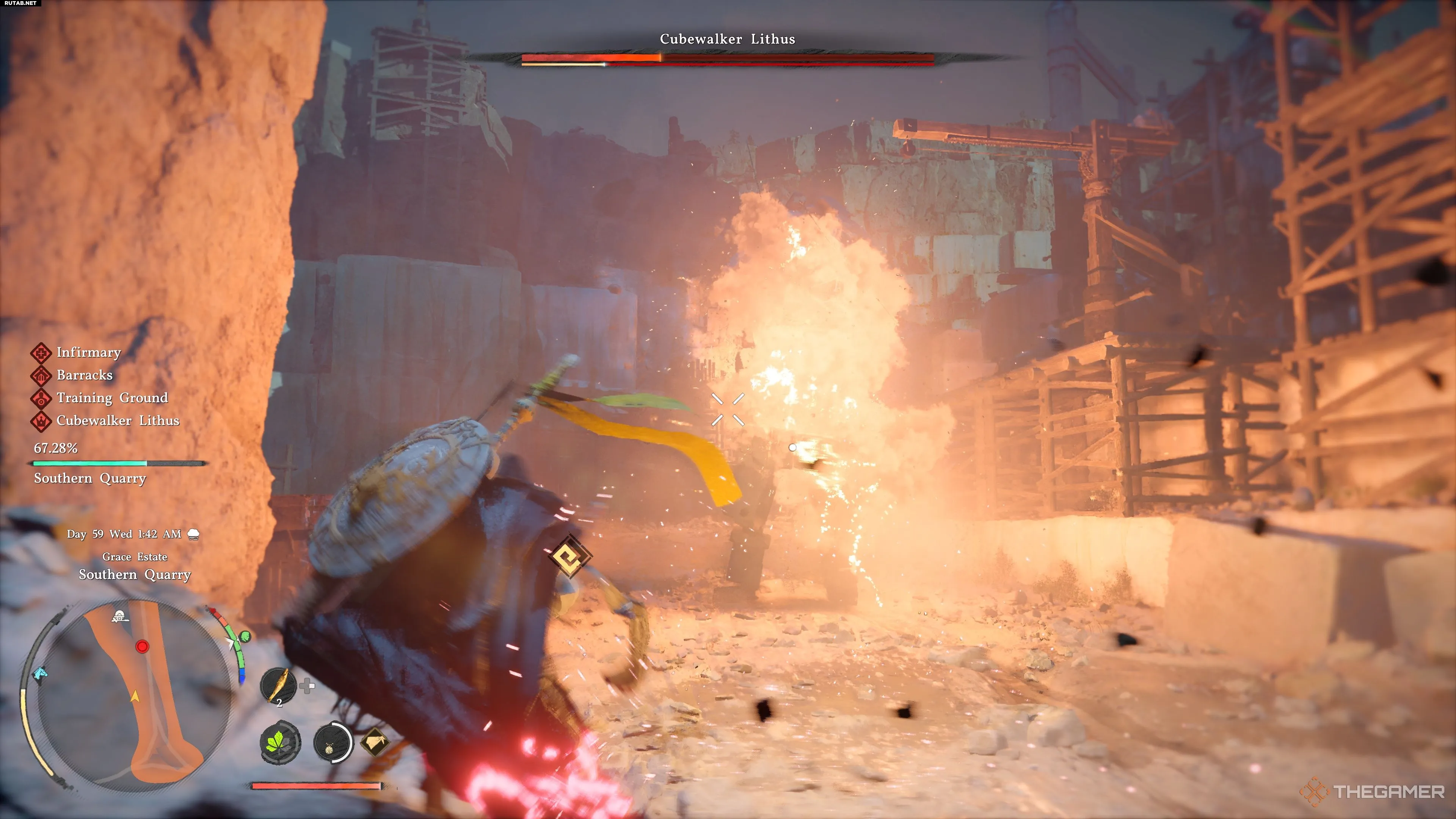Литус Кубоходец ждет вас в центре каменоломни. Как только вы войдете в область, отмеченную оранжевым облаком на вашей мини-карте, это вызовет появление гиганта.