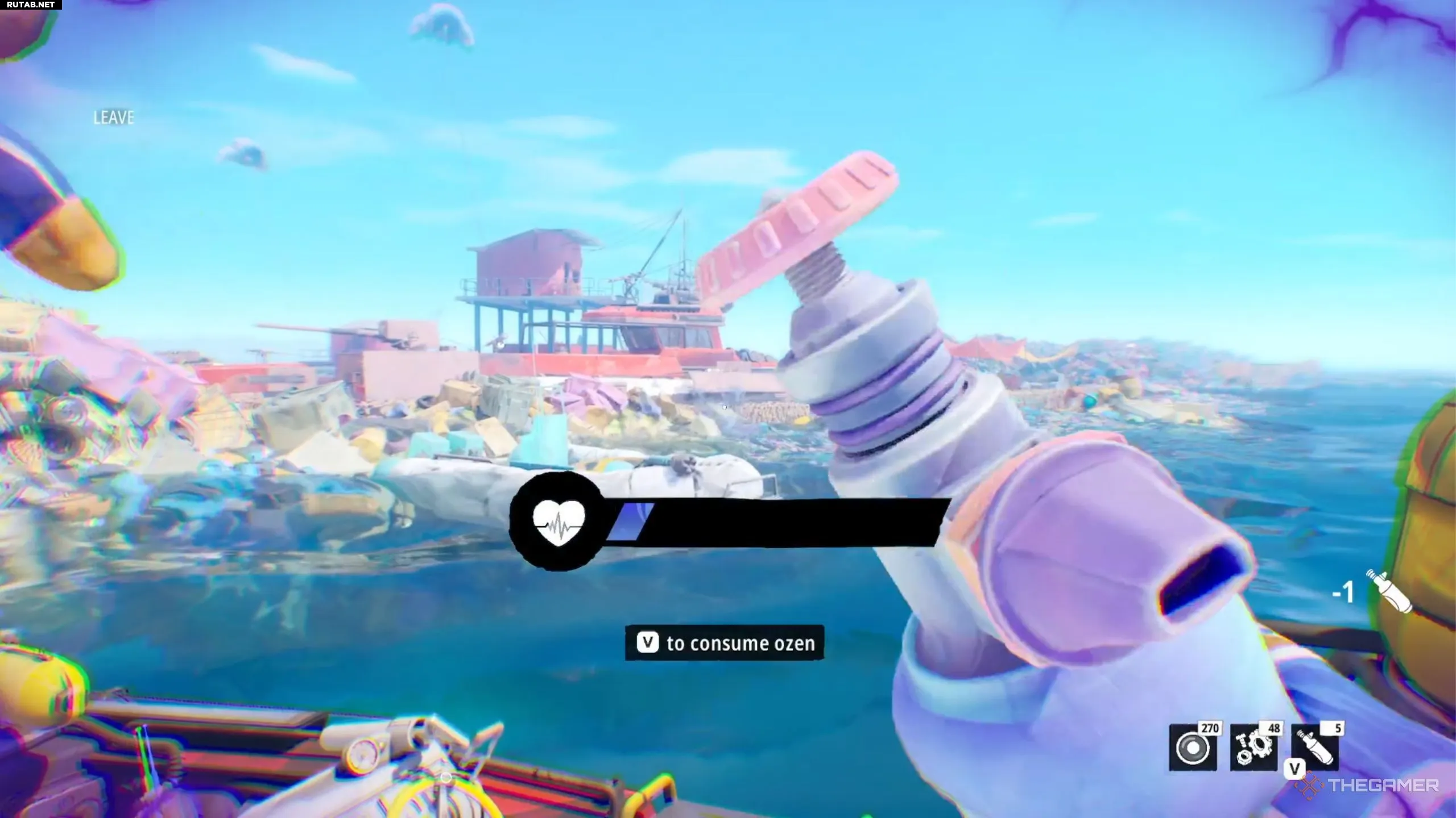 Количество озена отображается в правом нижнем углу экрана, а здоровье — в левом. После завершения определенных этапов основной сюжетной линии две полоски вашего здоровья блокируются, а одна бутылка озена восстанавливает лишь одну из них. Поэтому добыча озена должна быть вашим главным приоритетом.