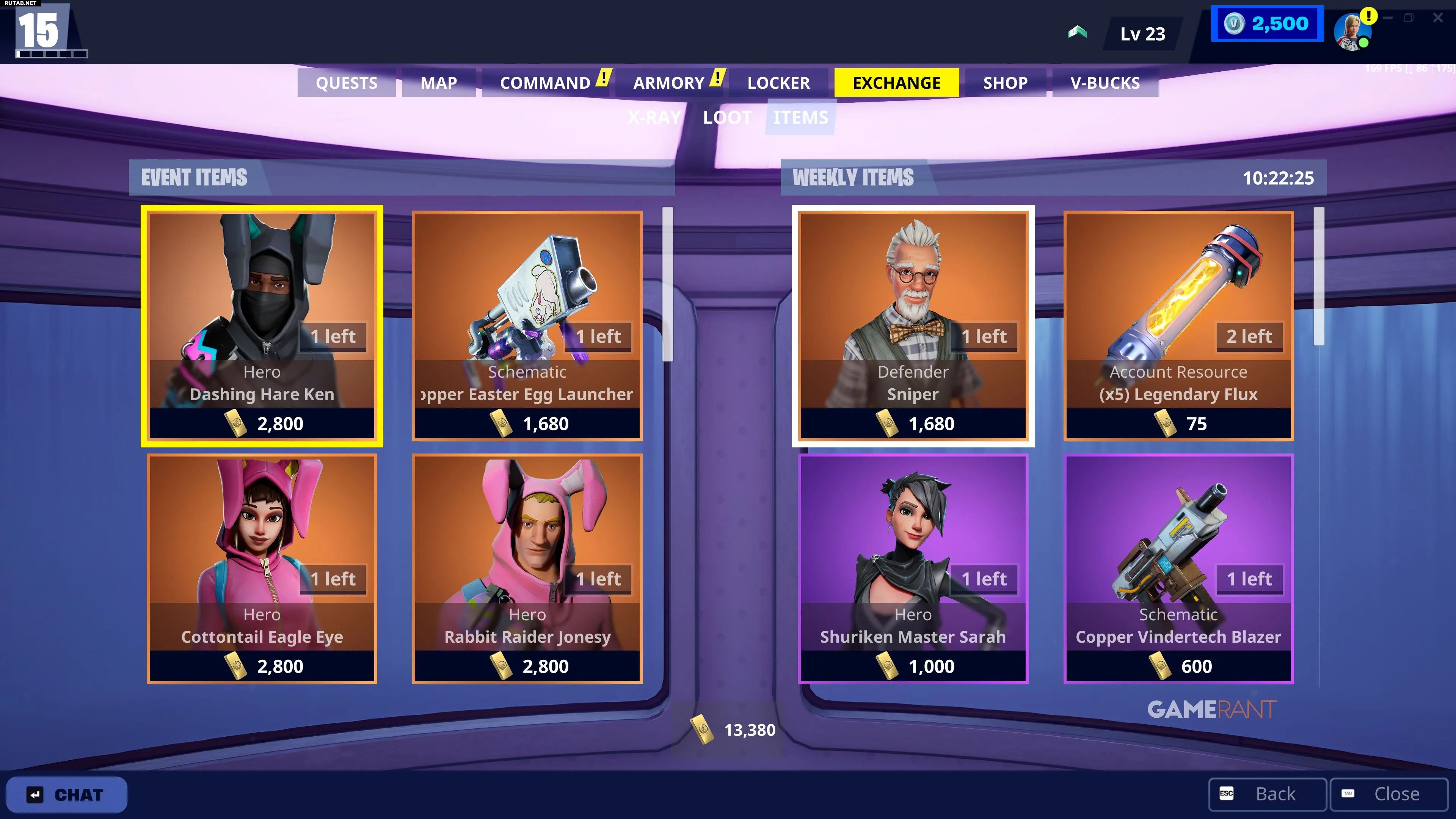В Магазине обмена игроки могут покупать эпических и легендарных Героев. Что касается Ллам, то для получения Героев высокой редкости стоит открывать определённые типы, такие как Супергеройские Лламы, Суперлюдские Лламы и Легендарные Тролльи Лламы. Лламы часто появляются в ротации в разделе «Рентген» Магазина обмена, но также могут быть получены как награды за миссии.