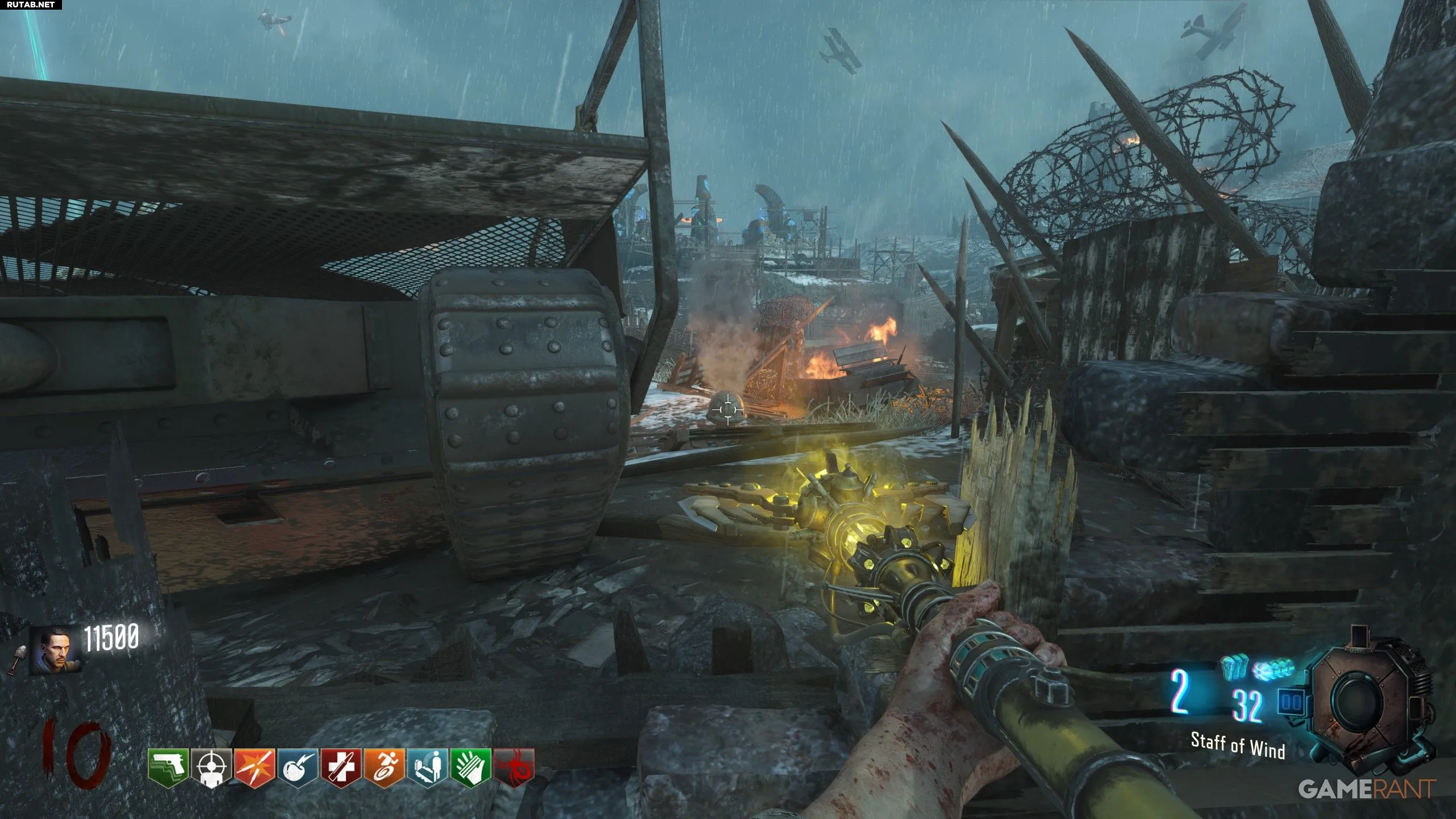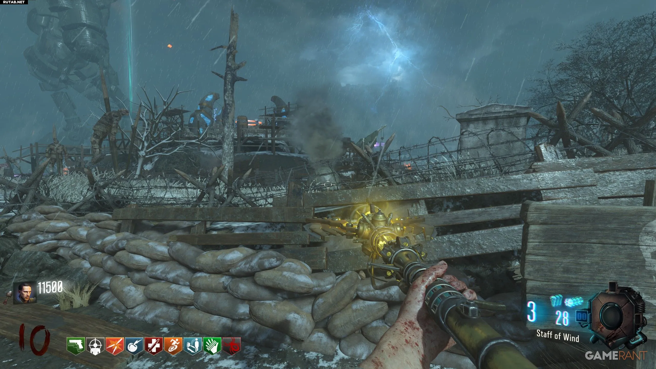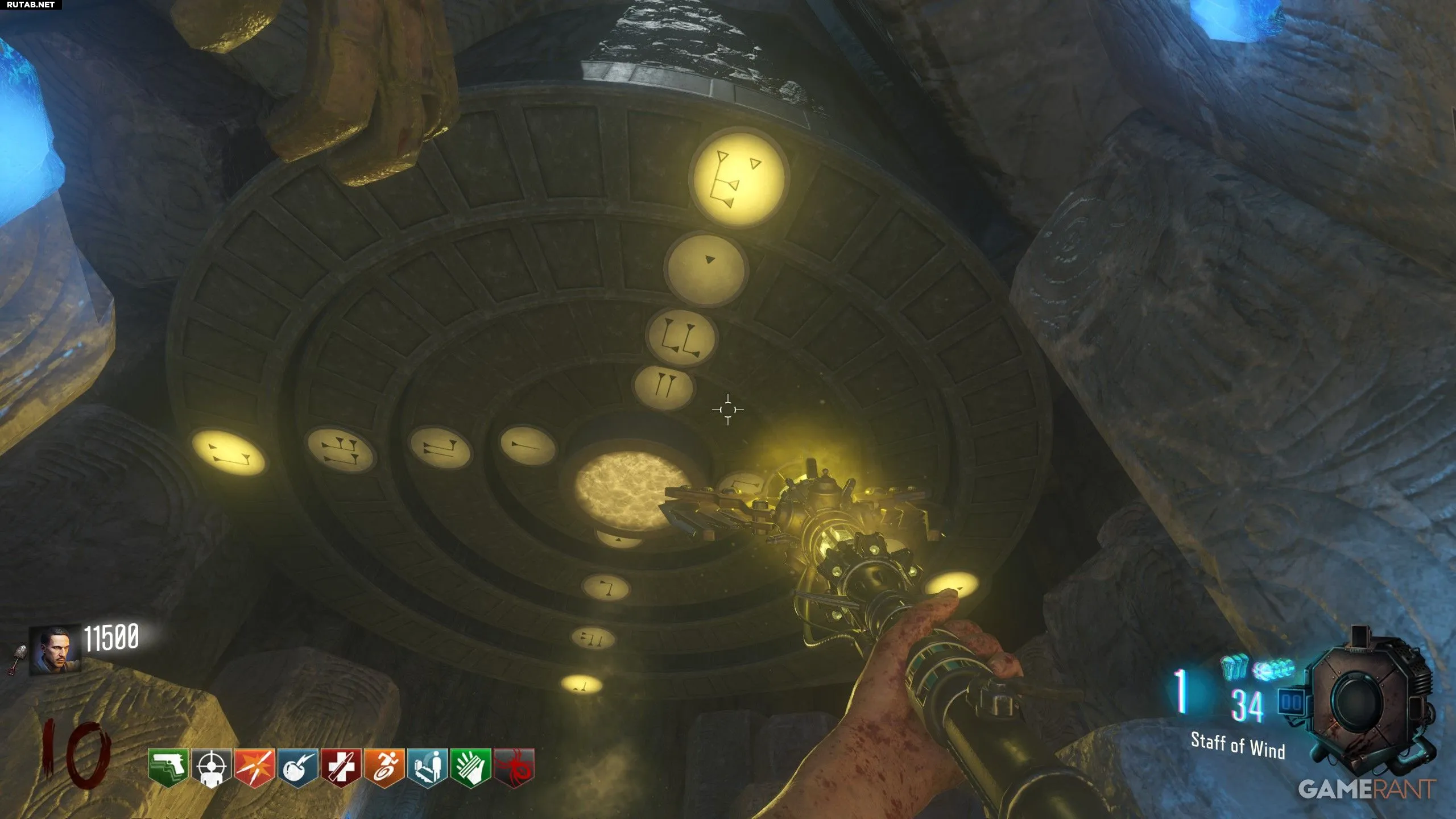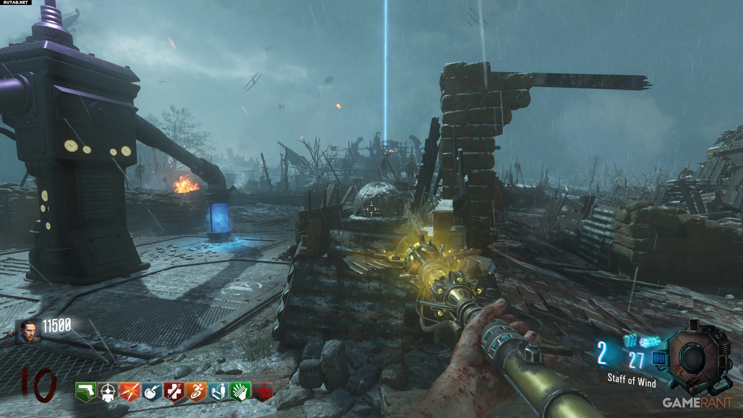 Большая часть пасхального яйца «Ориджинс» связана со сборкой и улучшением четырёх элементальных посохов. Поэтому эти шаги можно выполнять в любом порядке. Мы начали с Посоха Ветра, так как вам понадобится посох до появления Панцерзольдата на 8-м раунде.