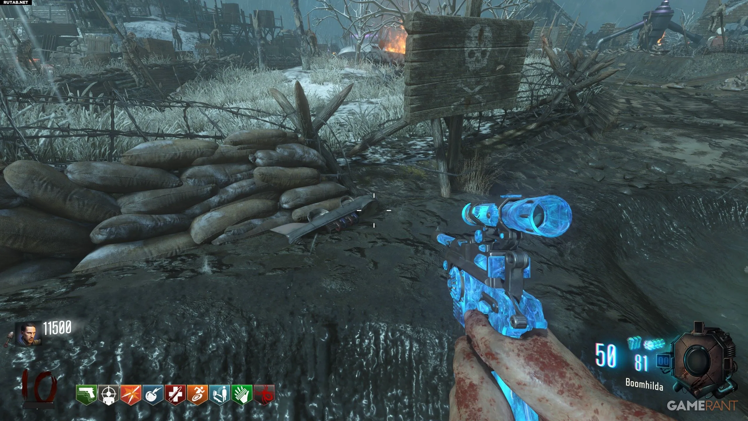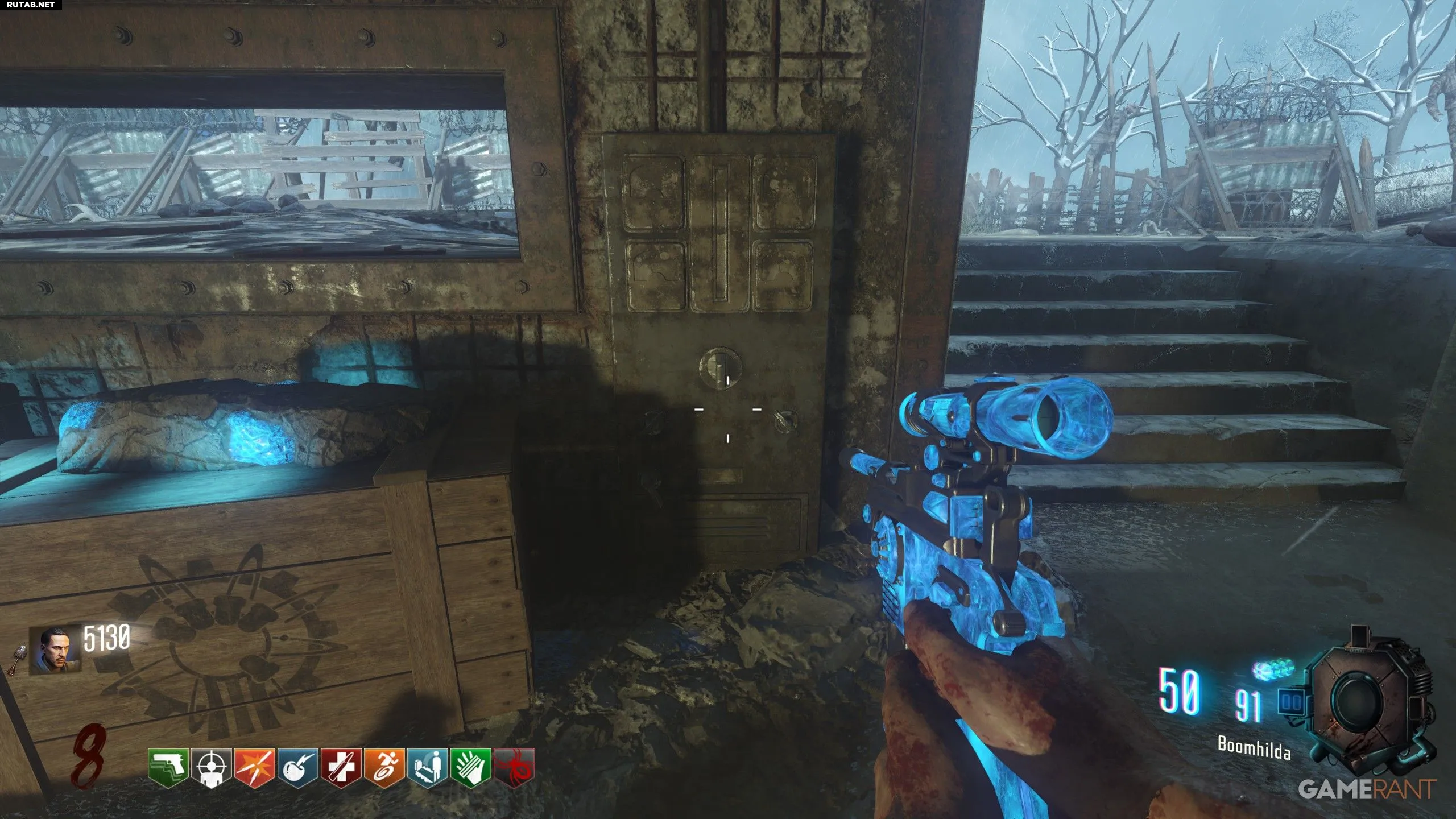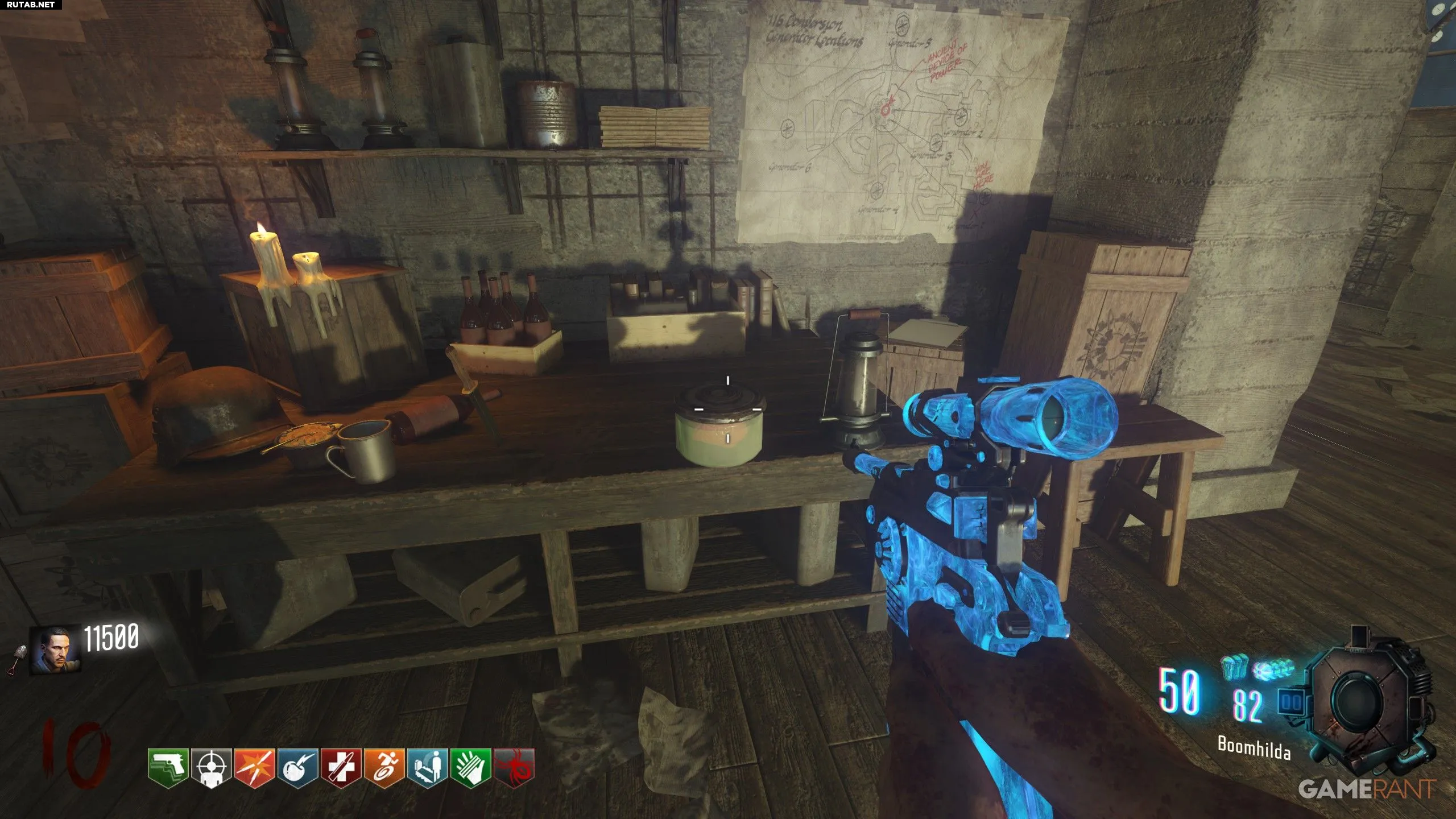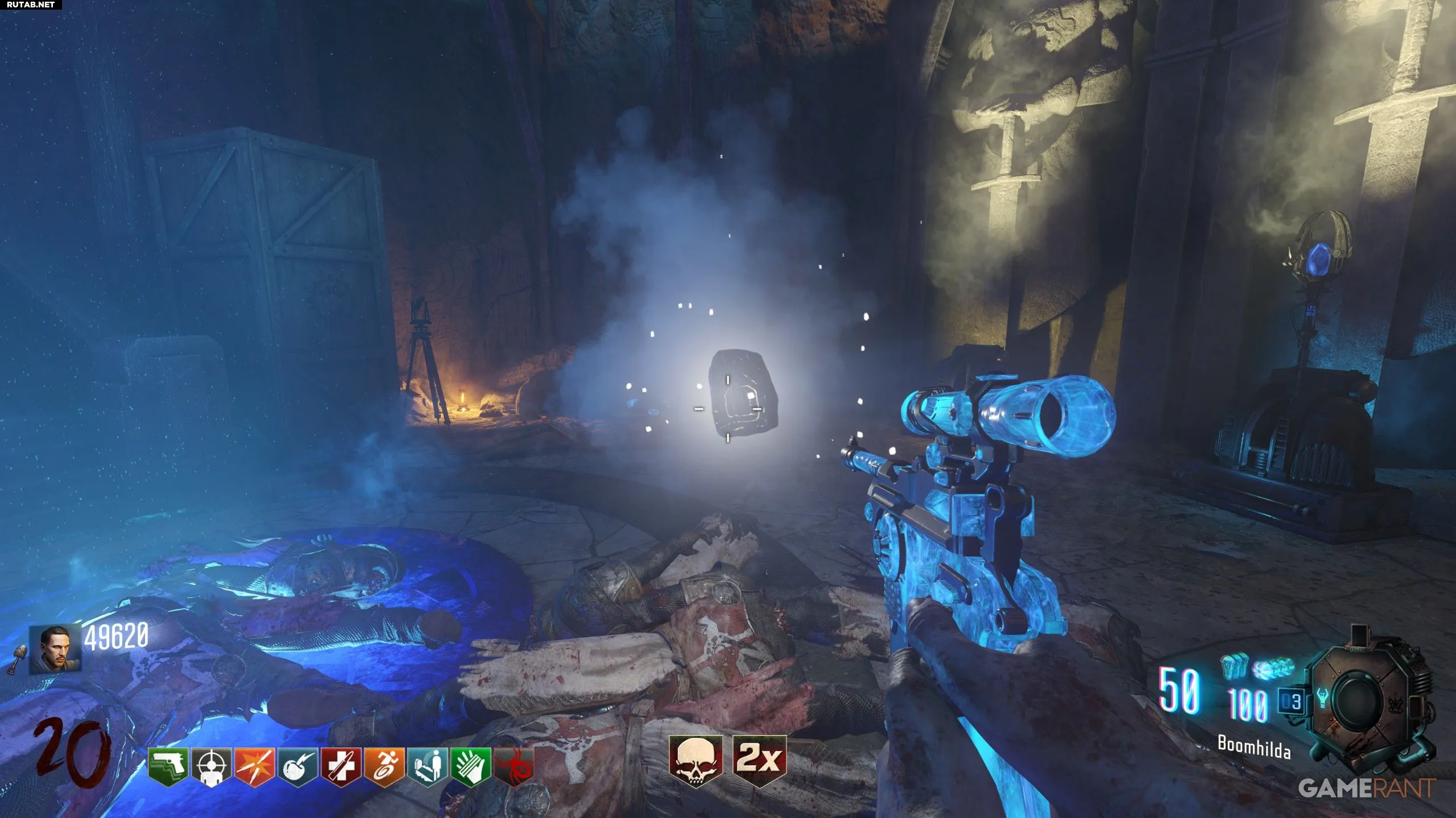 Вернувшись в бункер, взаимодействуйте со столом, чтобы положить каменную табличку. Затем вам нужно будет совершить 20 или более убийств в ближнем бою. После этого появятся гранаты G-Strike, которые понадобятся вам на более позднем этапе пасхального яйца, но лучше сделать это заранее.