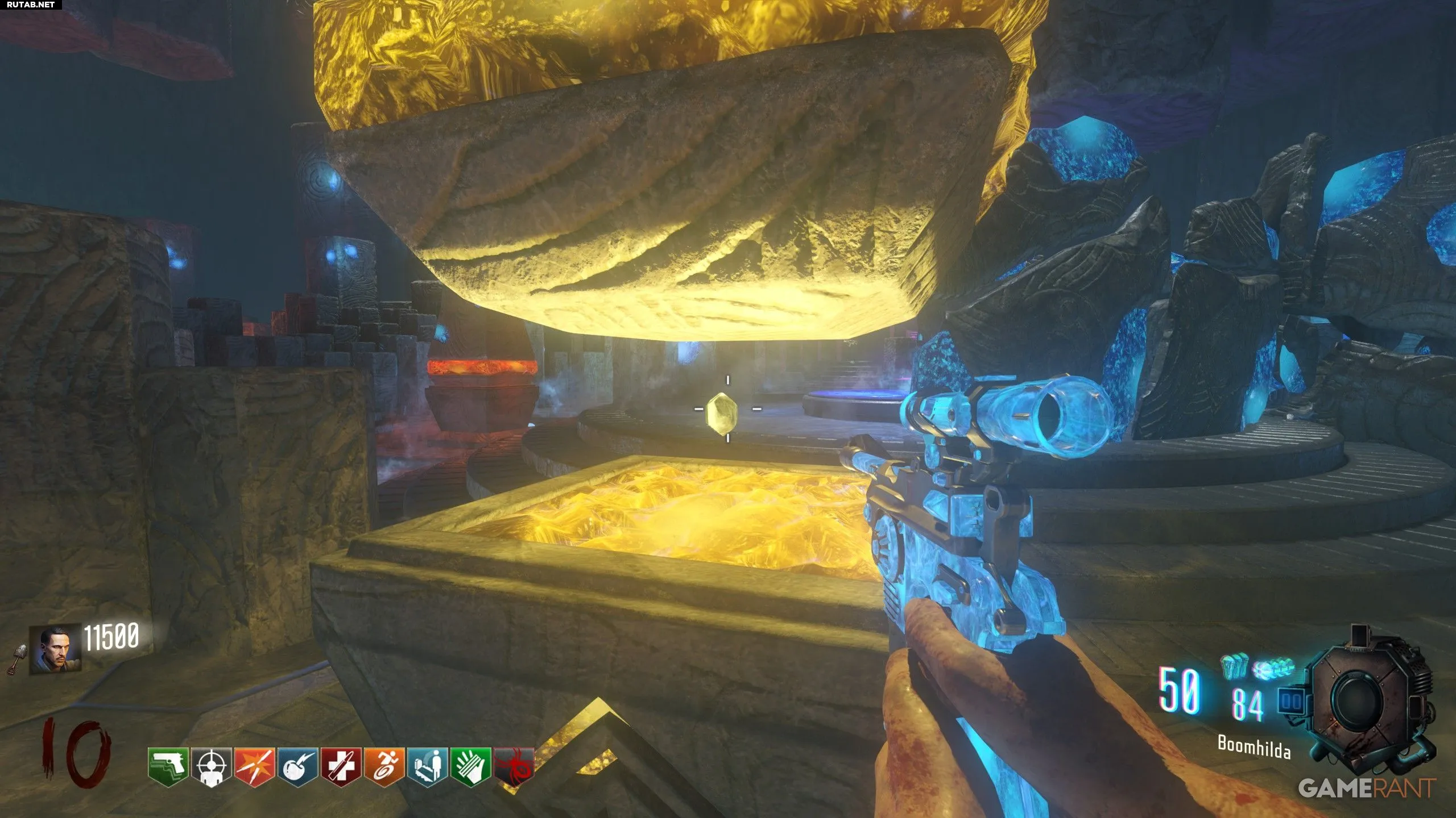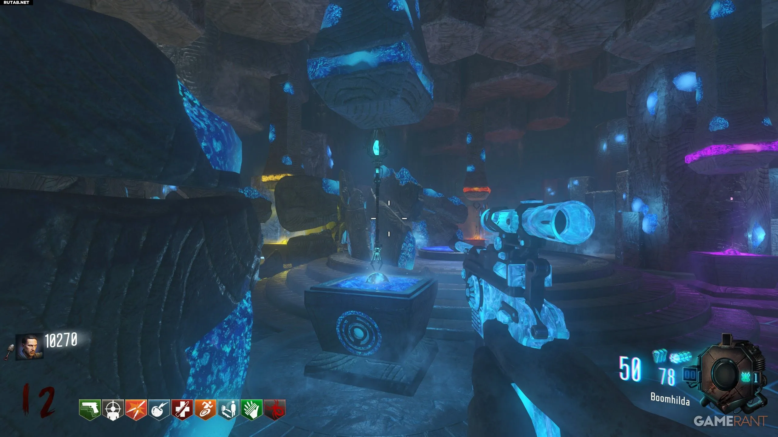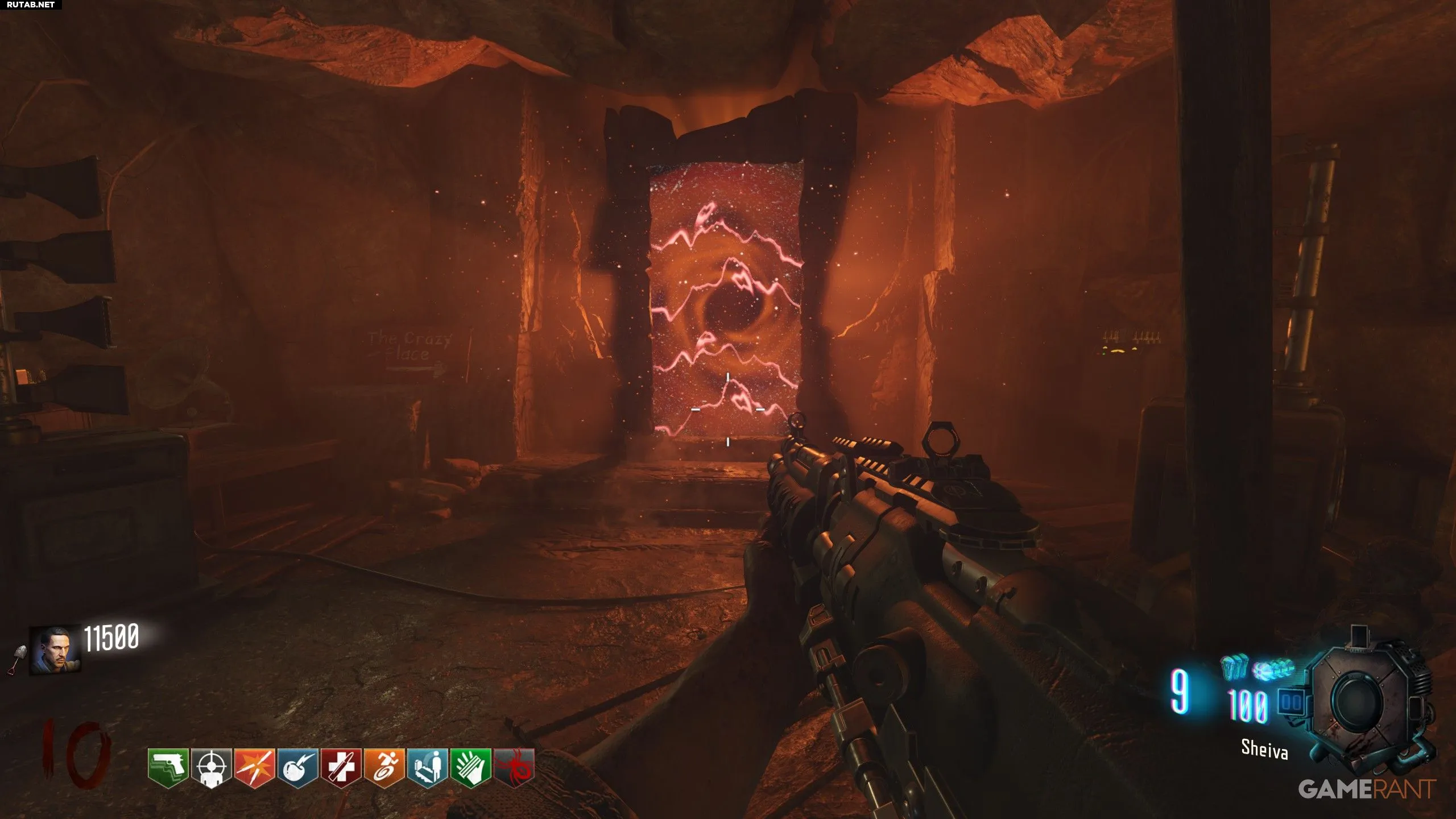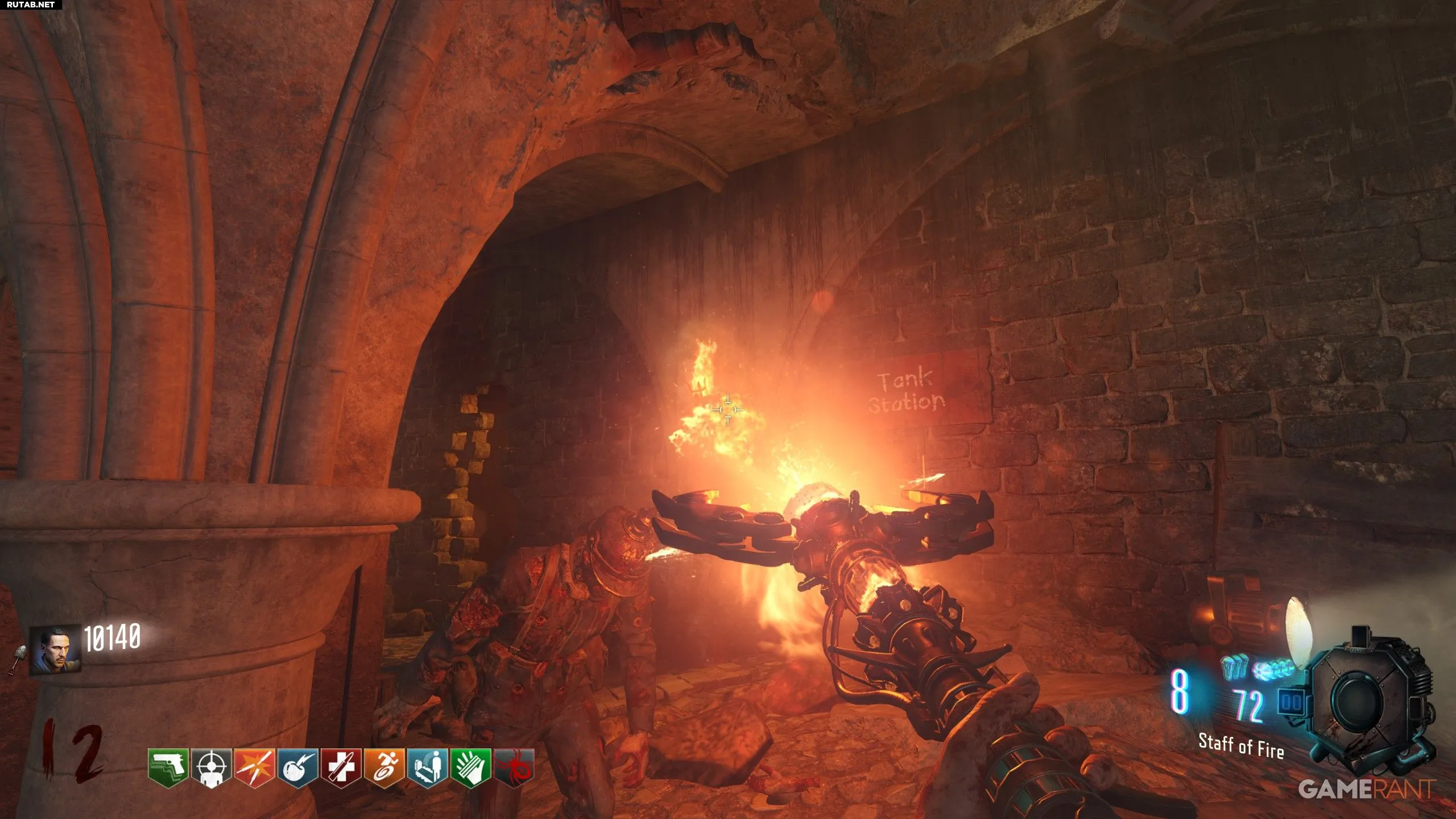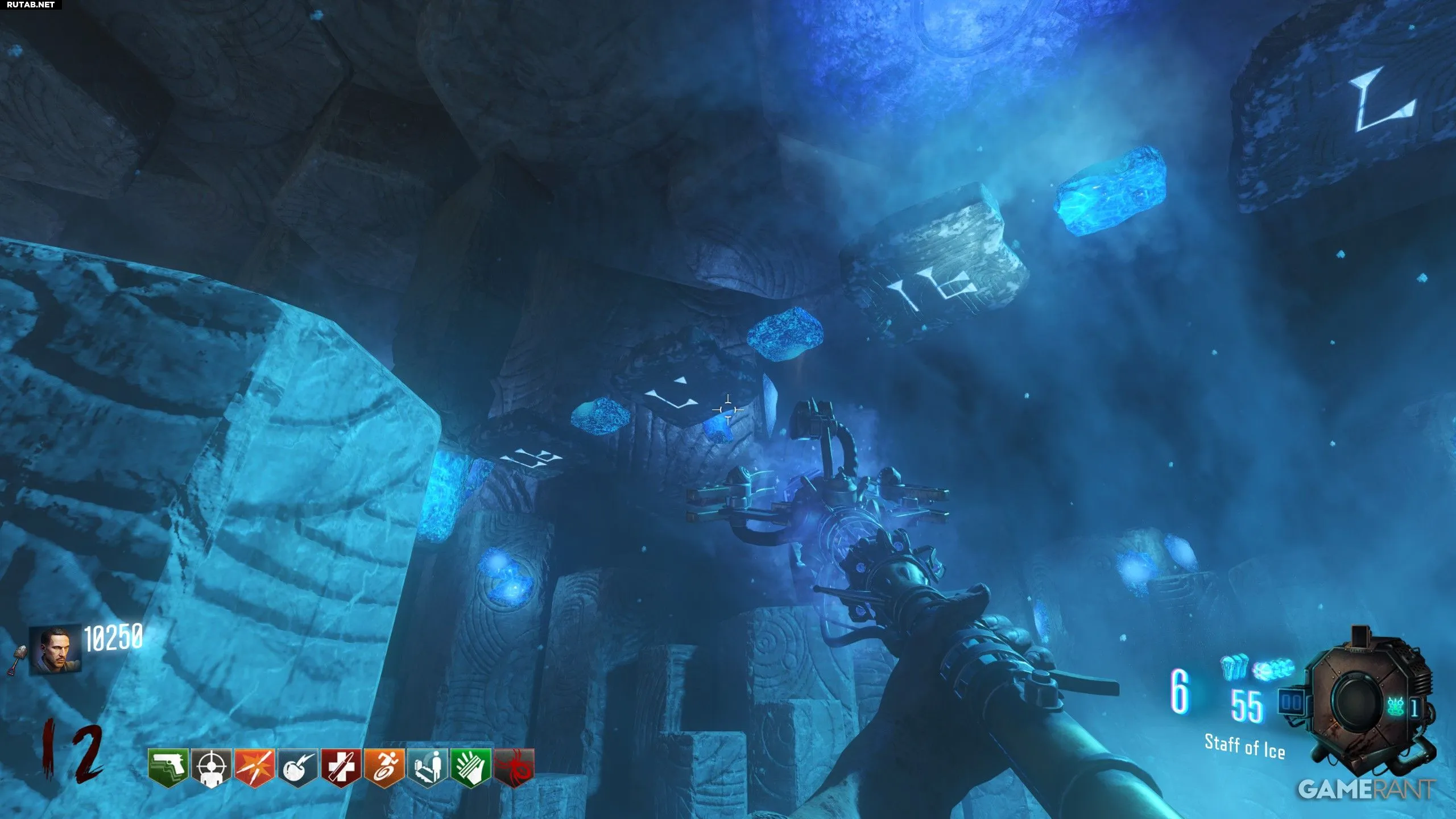 После этого вернитесь к кургану под Pack-a-Punch и потяните четыре рычага до тех пор, пока на каждом вращающемся циферблате не появится красный символ. Наконец, выстрелите в Красную Сферу из Посоха Огня и вернитесь в «Безумное место», чтобы поместить Посох Огня на красный алтарь и совершить более 20 убийств для его улучшения.