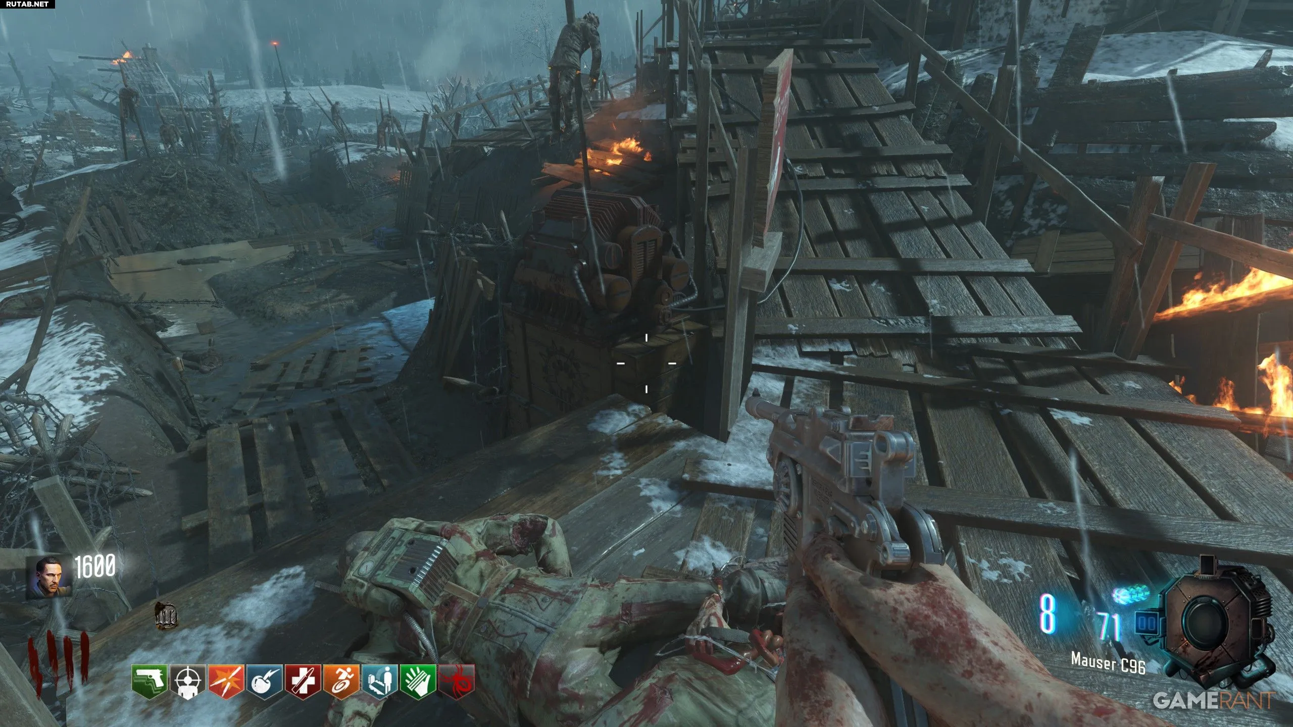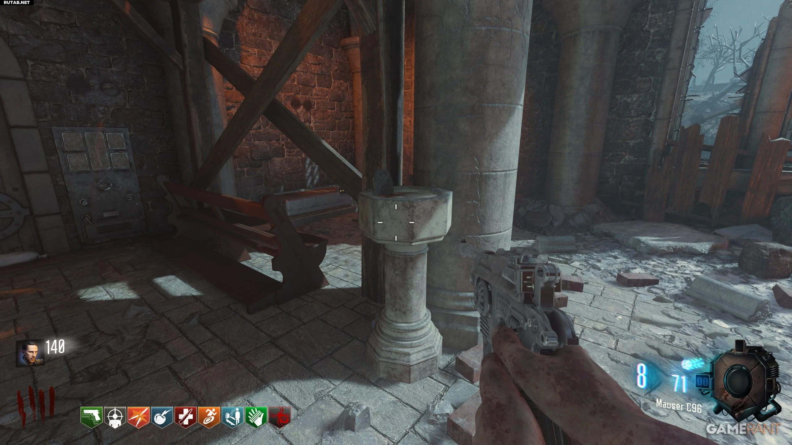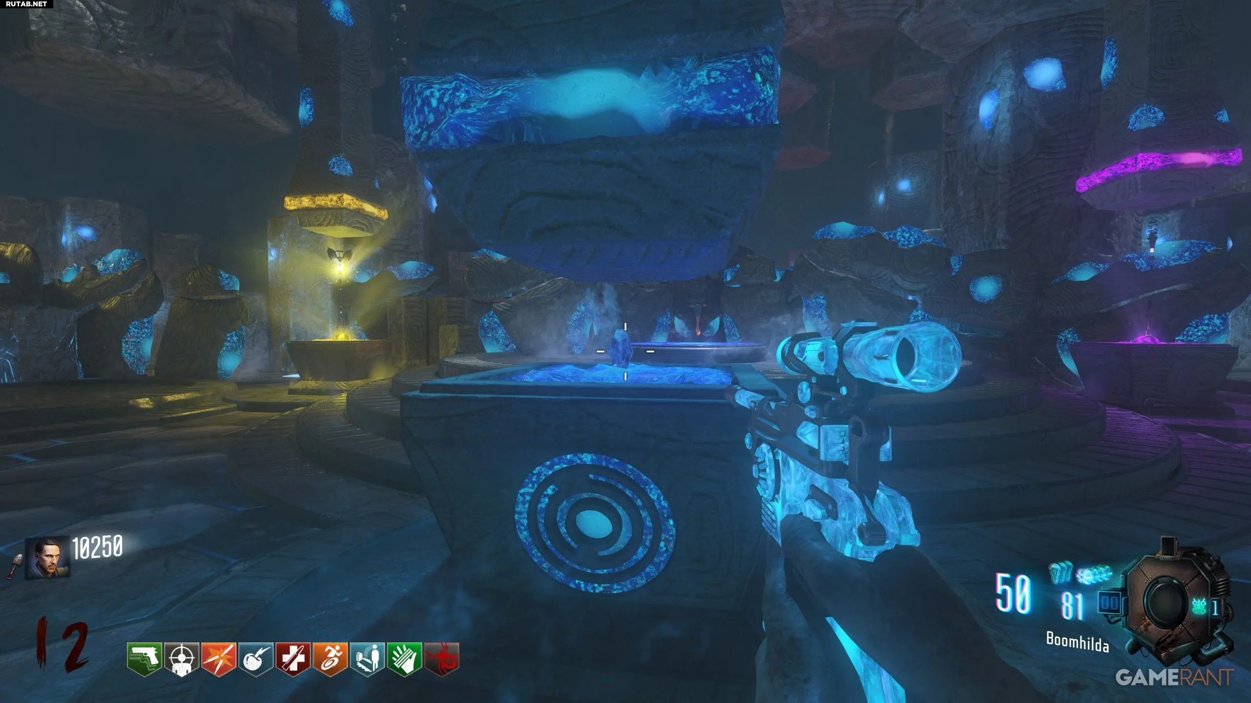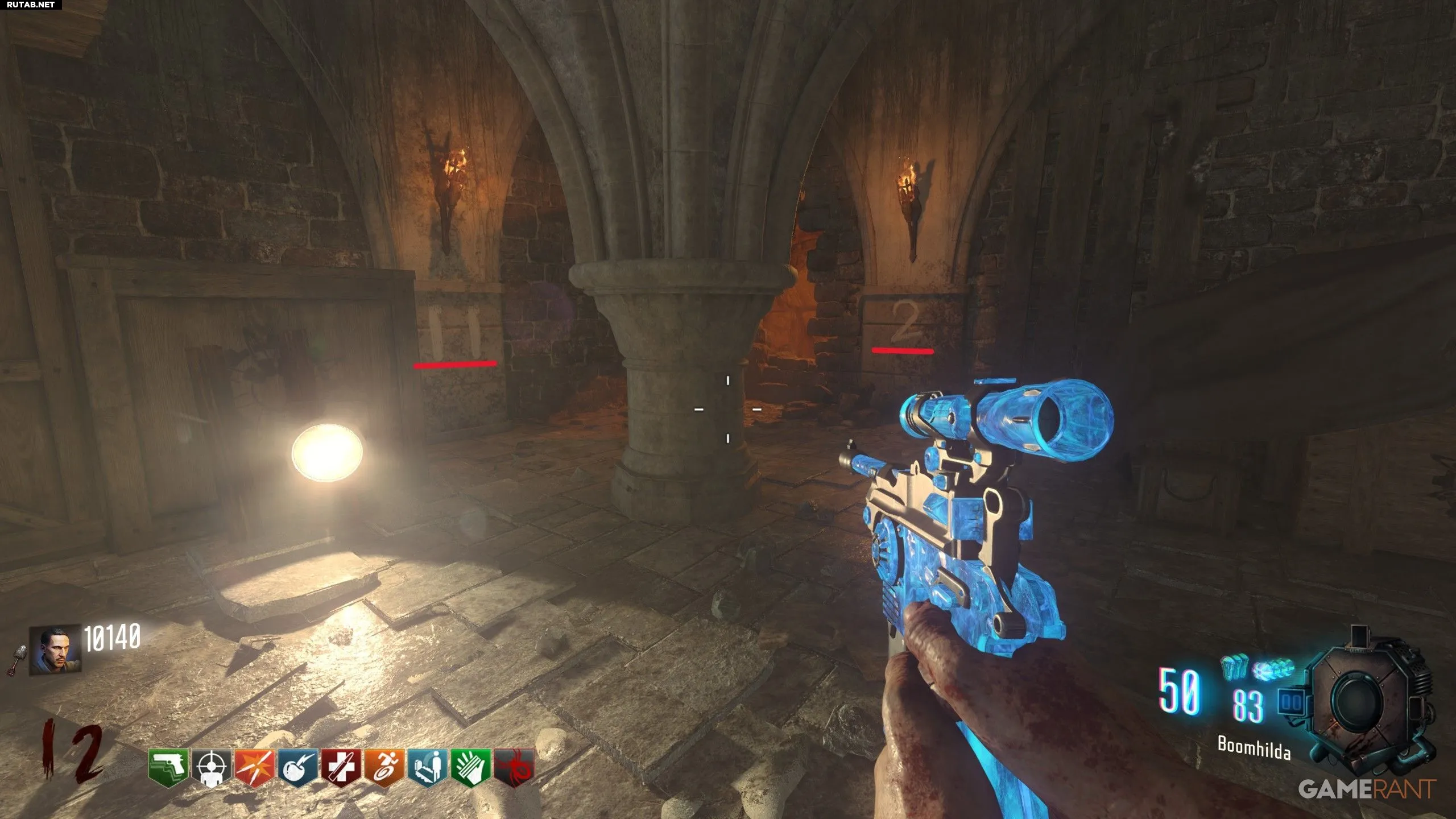 После этого вернитесь к кургану под Pack-a-Punch и потяните четыре рычага до тех пор, пока на каждом вращающемся циферблате не появится красный символ. Наконец, выстрелите в Красную Сферу из Посоха Огня и вернитесь в «Безумное место», чтобы поместить Посох Огня на красный алтарь и совершить более 20 убийств для его улучшения.