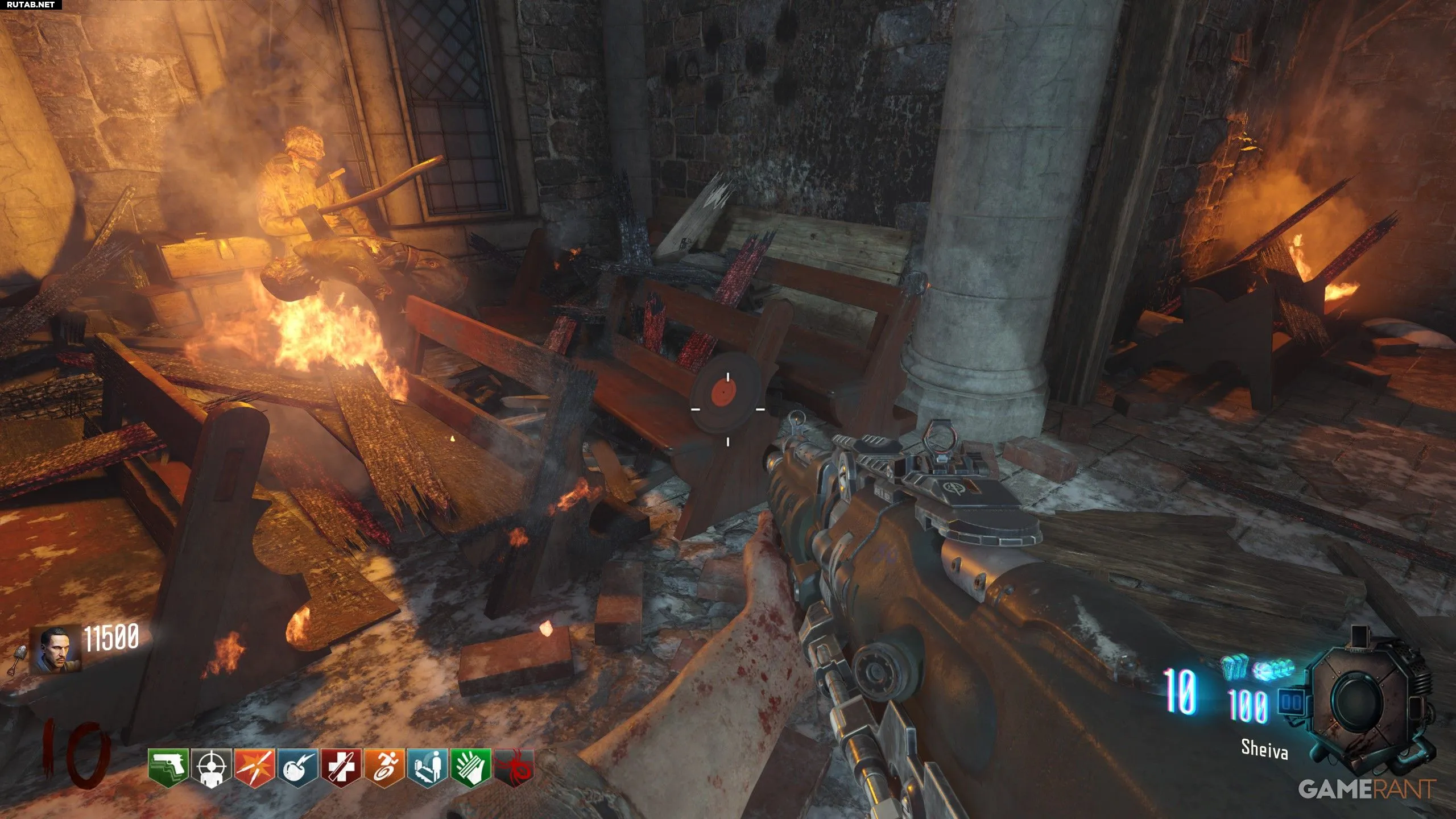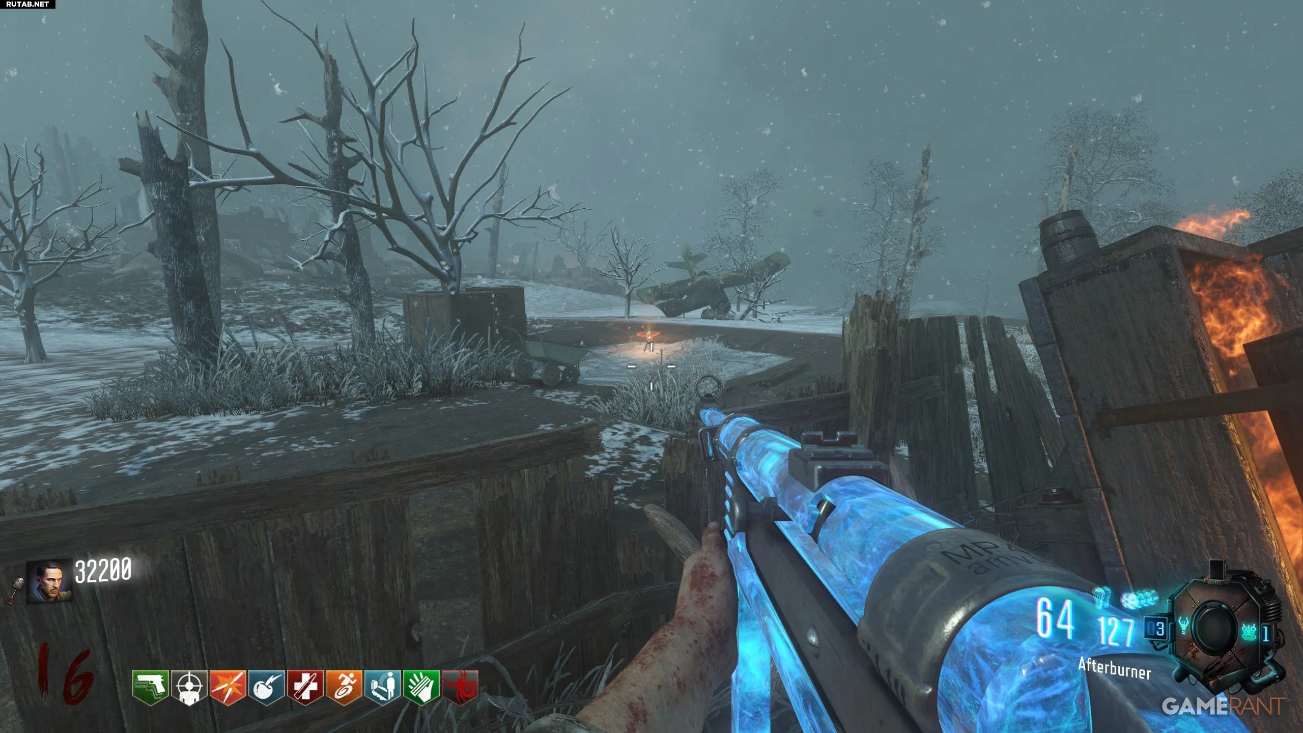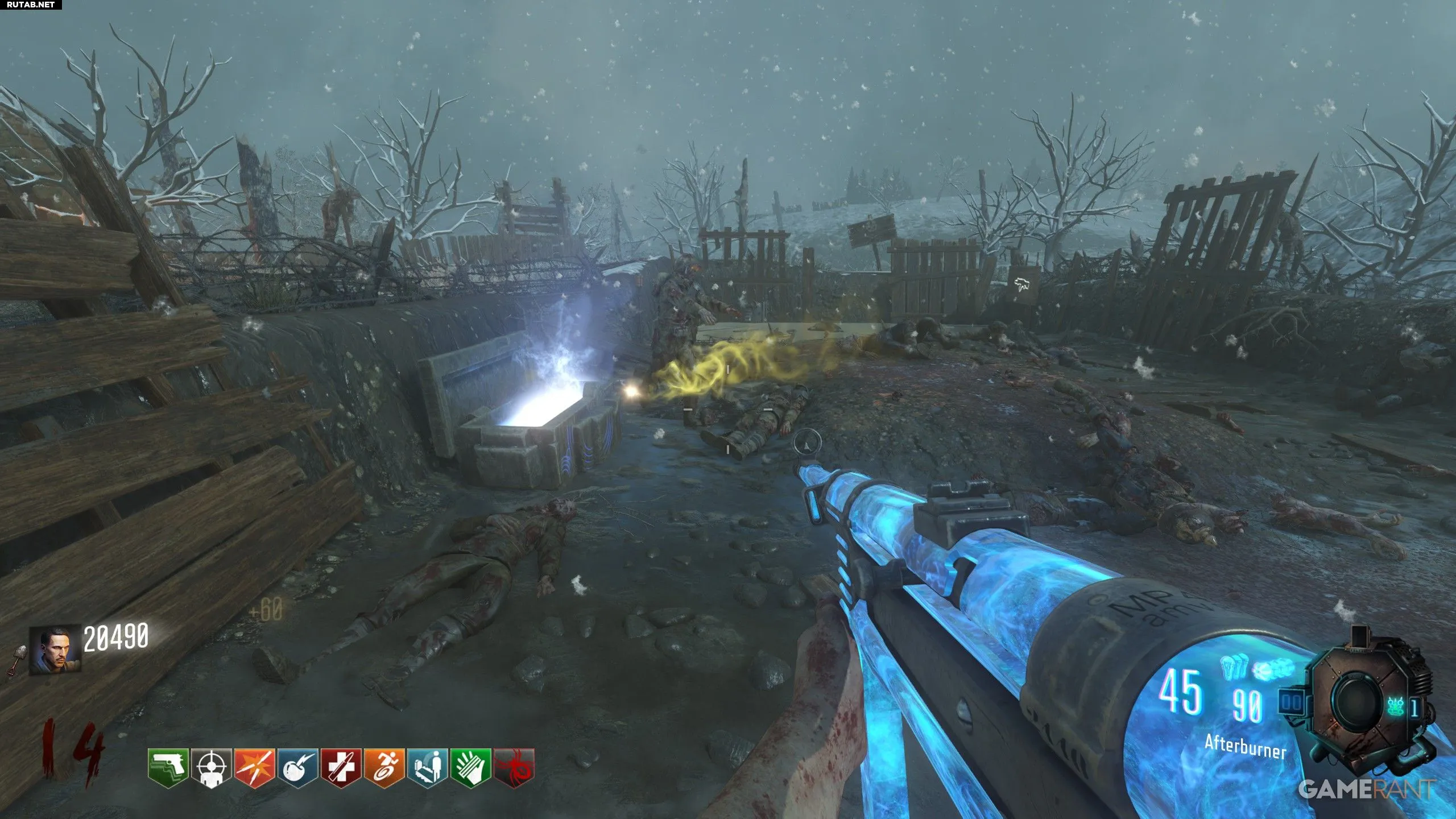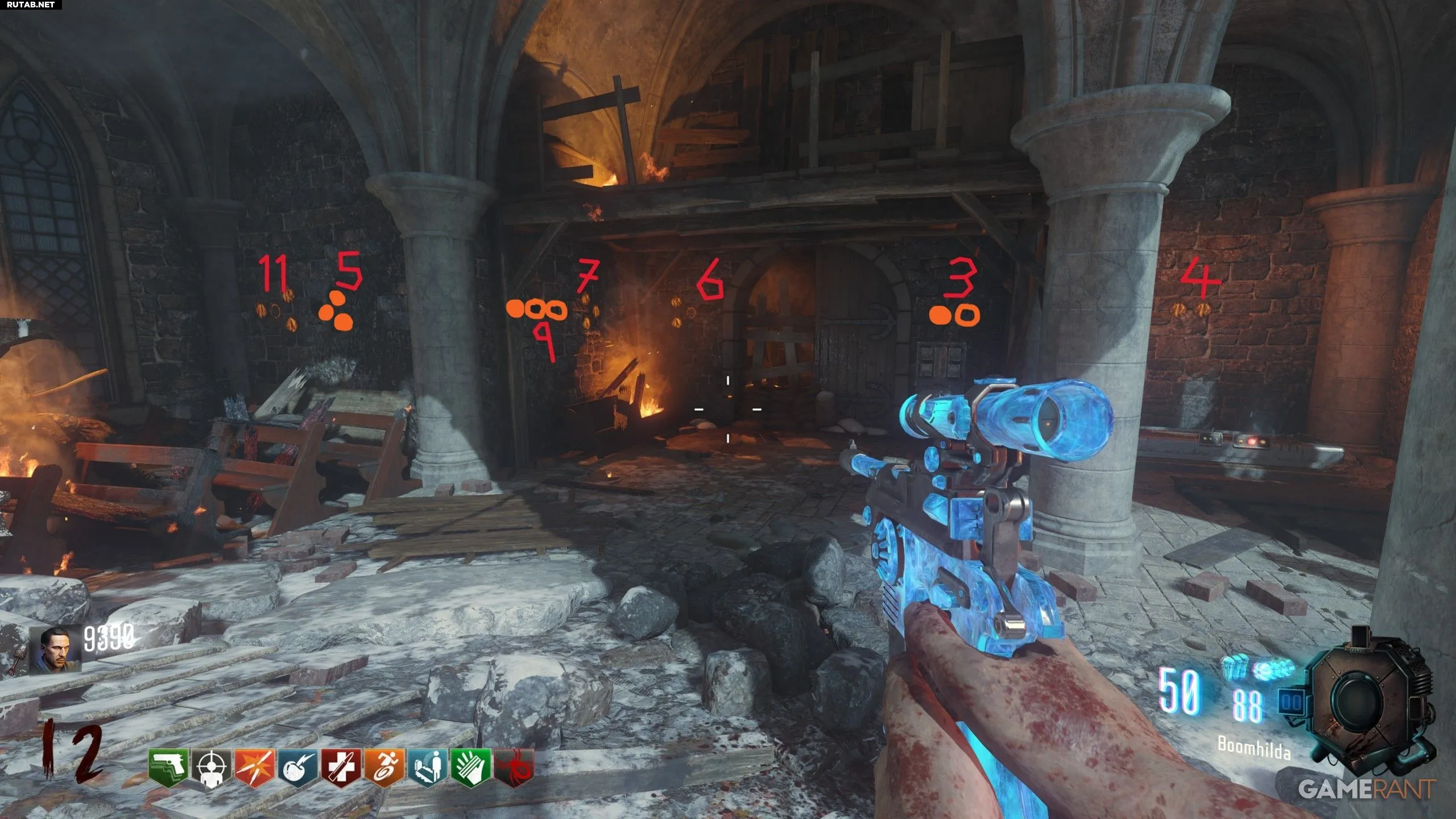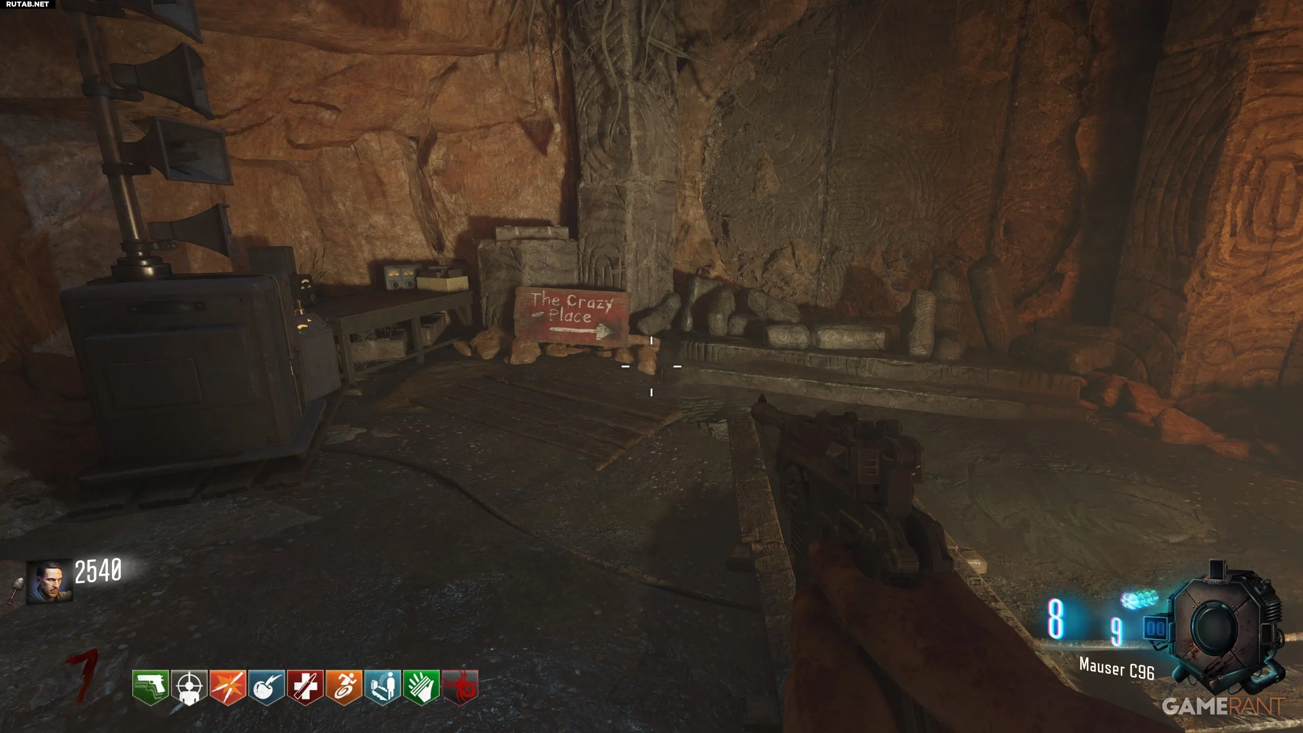 После этого вернитесь к кургану под Pack-a-Punch и потяните четыре рычага до тех пор, пока на каждом вращающемся циферблате не появится красный символ. Наконец, выстрелите в Красную Сферу из Посоха Огня и вернитесь в «Безумное место», чтобы поместить Посох Огня на красный алтарь и совершить более 20 убийств для его улучшения.
