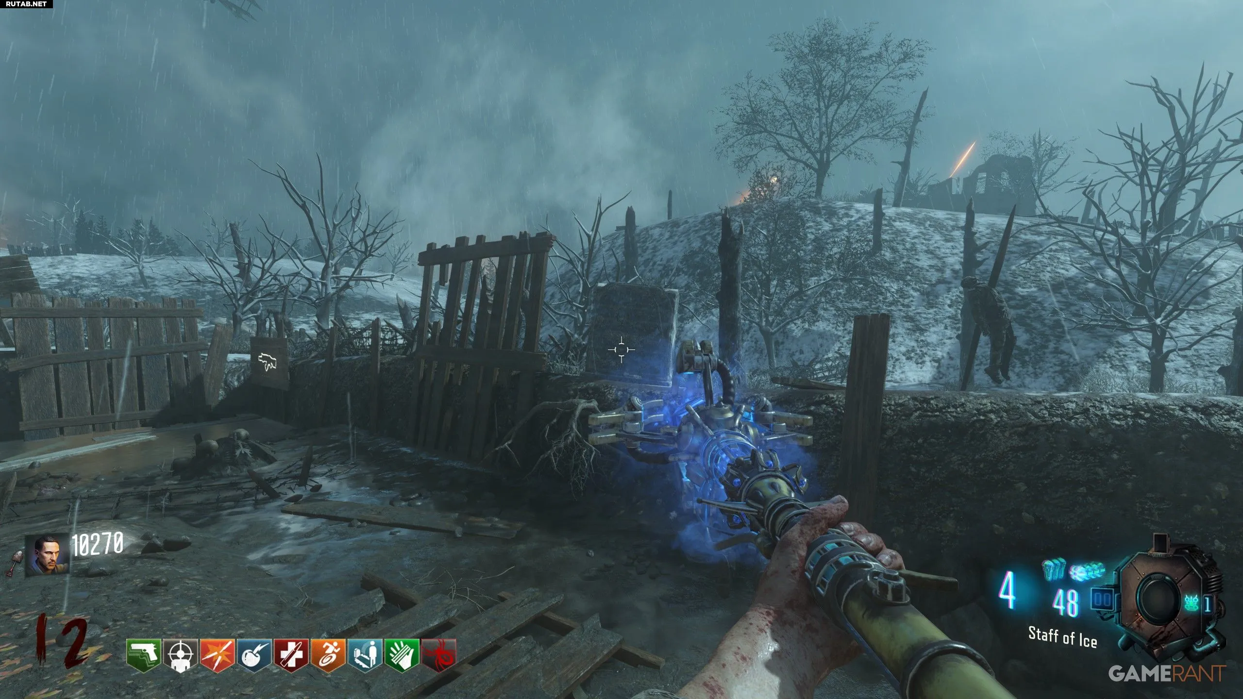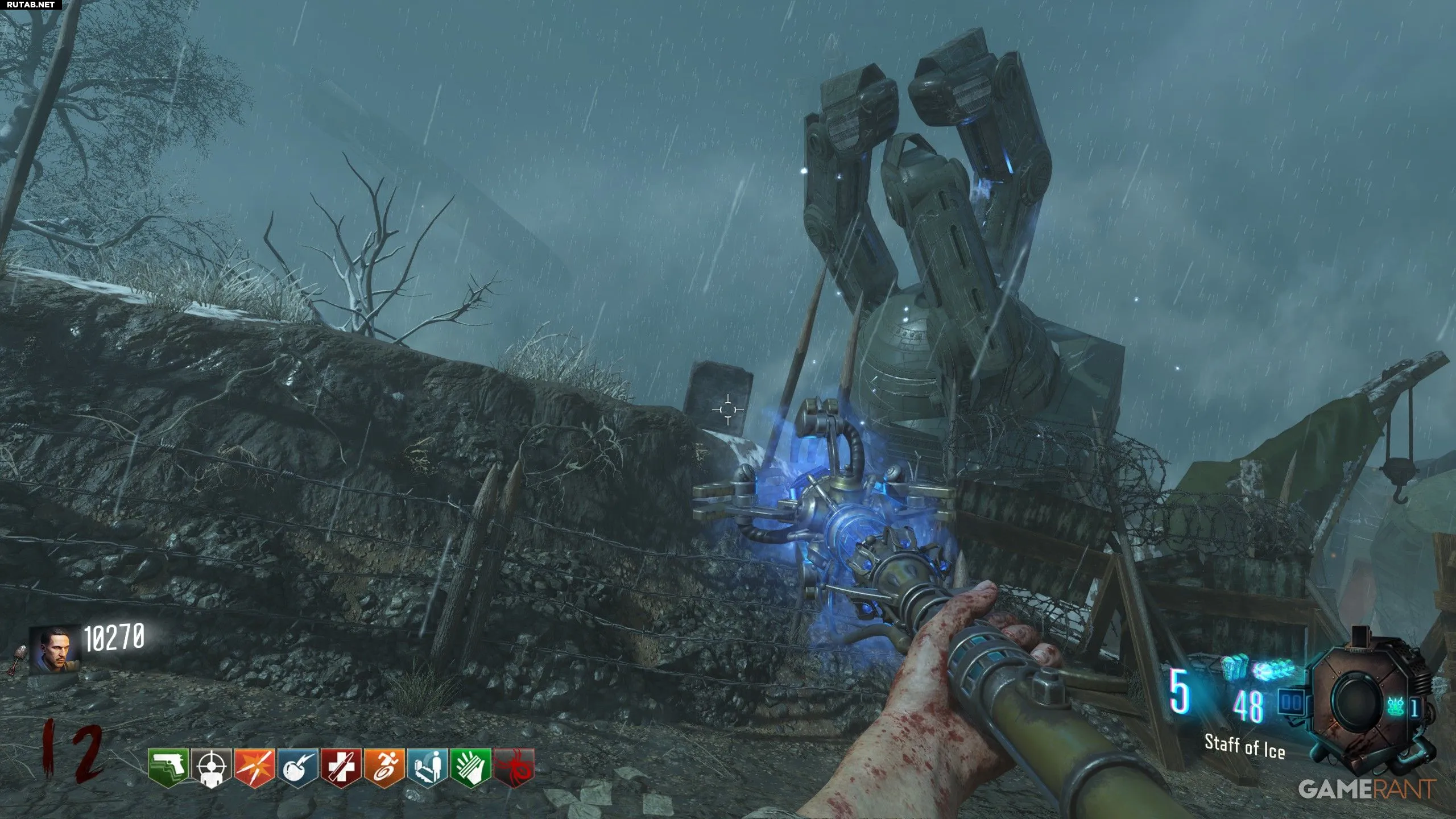 Когда пойдёт снег, просто используйте лопату на кучах земли, чтобы выкопать детали Посоха Льда. Они расположены вокруг Генератора 6, Церкви, Генератора 5, Генератора 4, «Ничьей земли», Генератора 2 и Генератора 3. Помните — только во время снегопада!