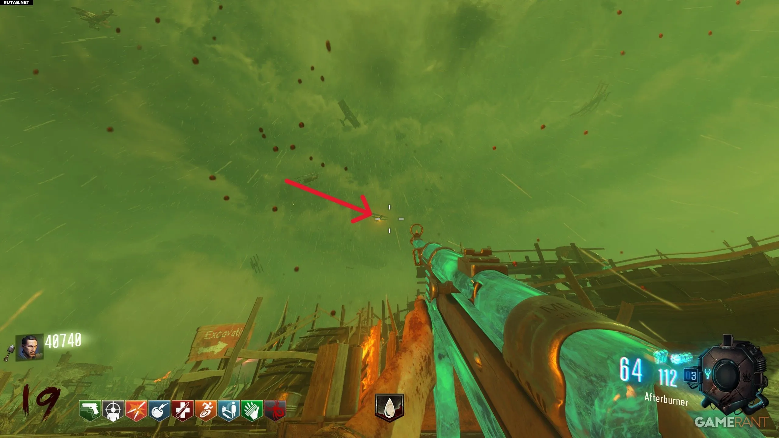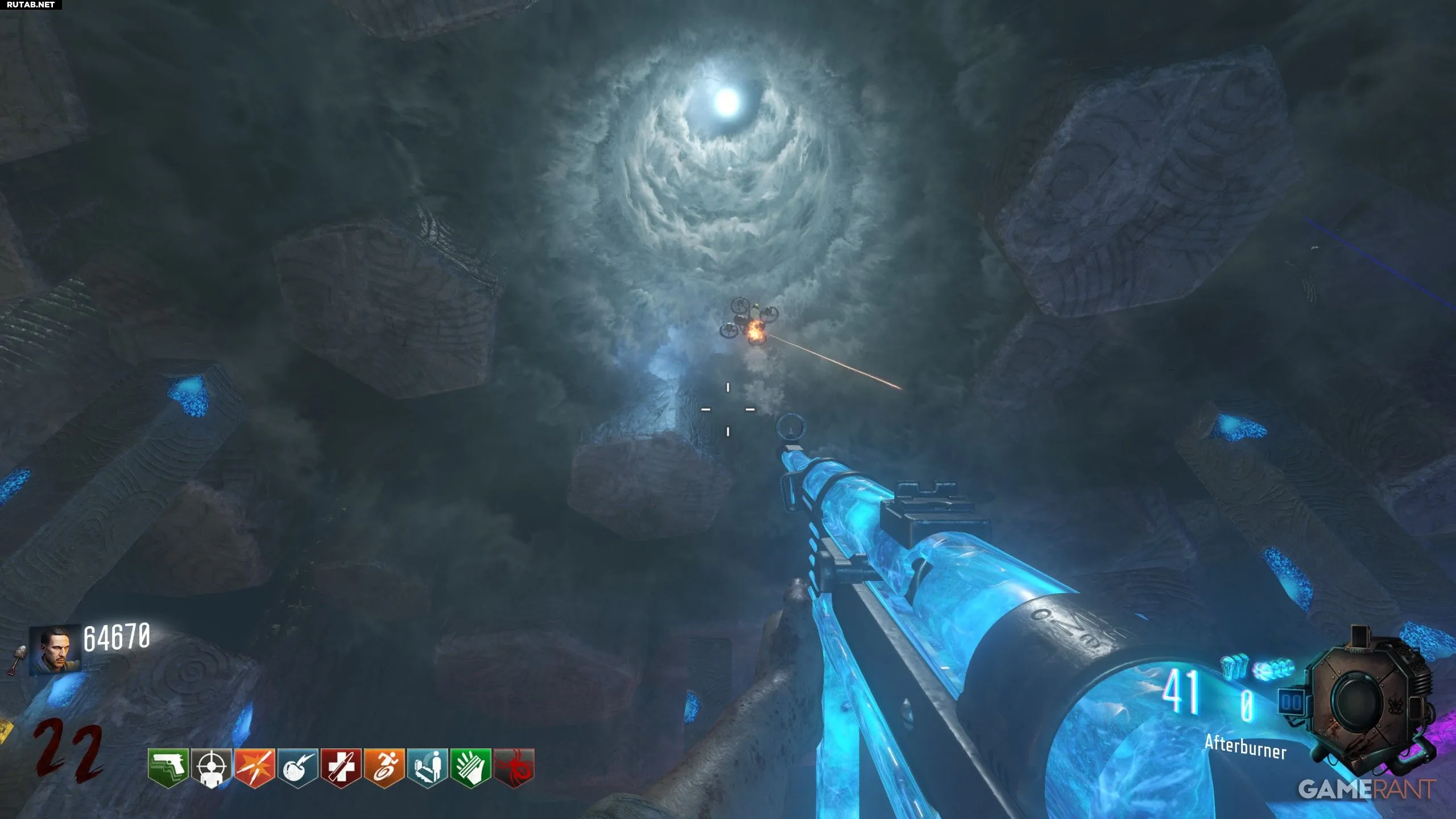 После того как будет убито более 100 зомби, ваш экран мигнёт белым. Теперь вы можете посмотреть вверх и увидеть портал в небе. Вам нужно запустить дрон Максис так, чтобы он вошёл в этот портал. Это вызовет синий лазерный луч, в который можно войти, чтобы завершить игру и увидеть кат-сцену.